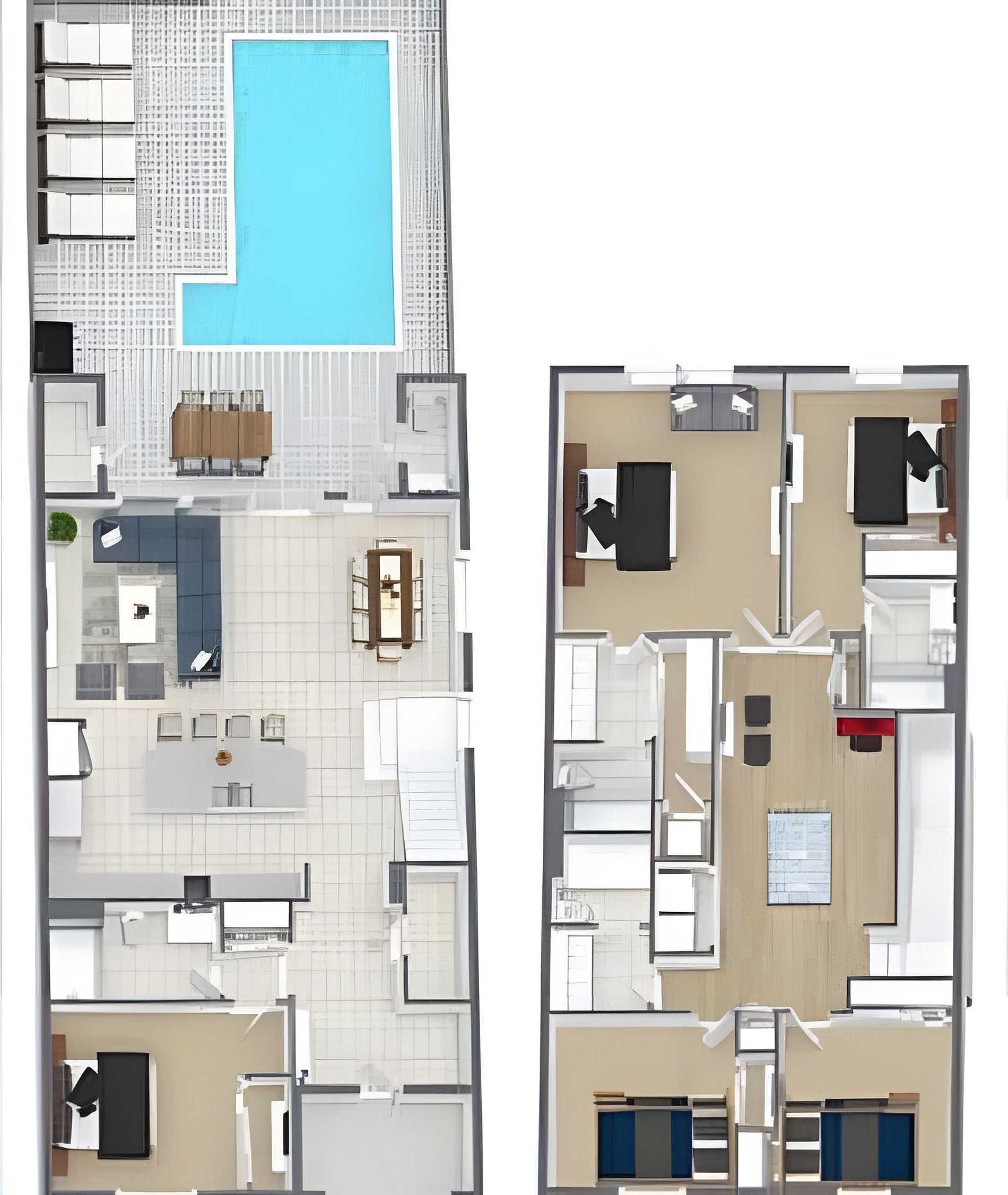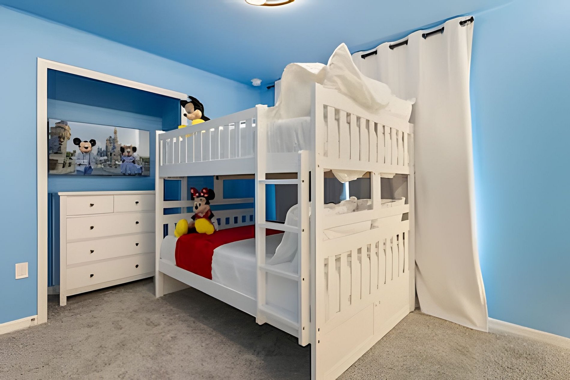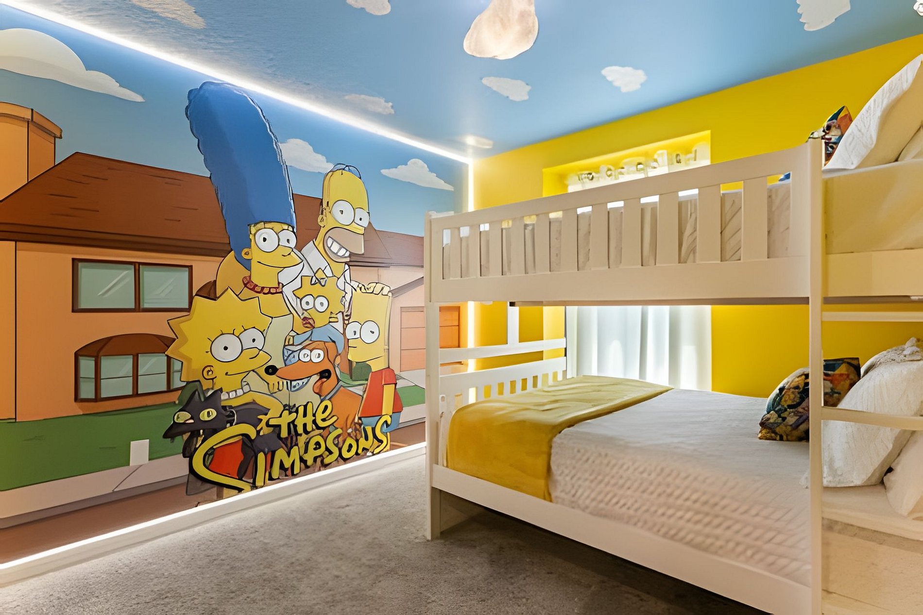 CONFIGURAÇÃO DE CAMAS: 1º andar Quarto 1: 1 cama king size 1 banheiro compartilhado 1 lavabo na área externa 2º andar Quarto 2: 1 cama king size, suíte Quarto 3: 1 cama king size, suíte Quarto 4: 1 beliche com 2 camas de casal (tema dos Simpsons) Quarto 5: 1 beliche com 2 camas de casal (tema do Mickey e seus amigos) 1 banheiro compartilhado.