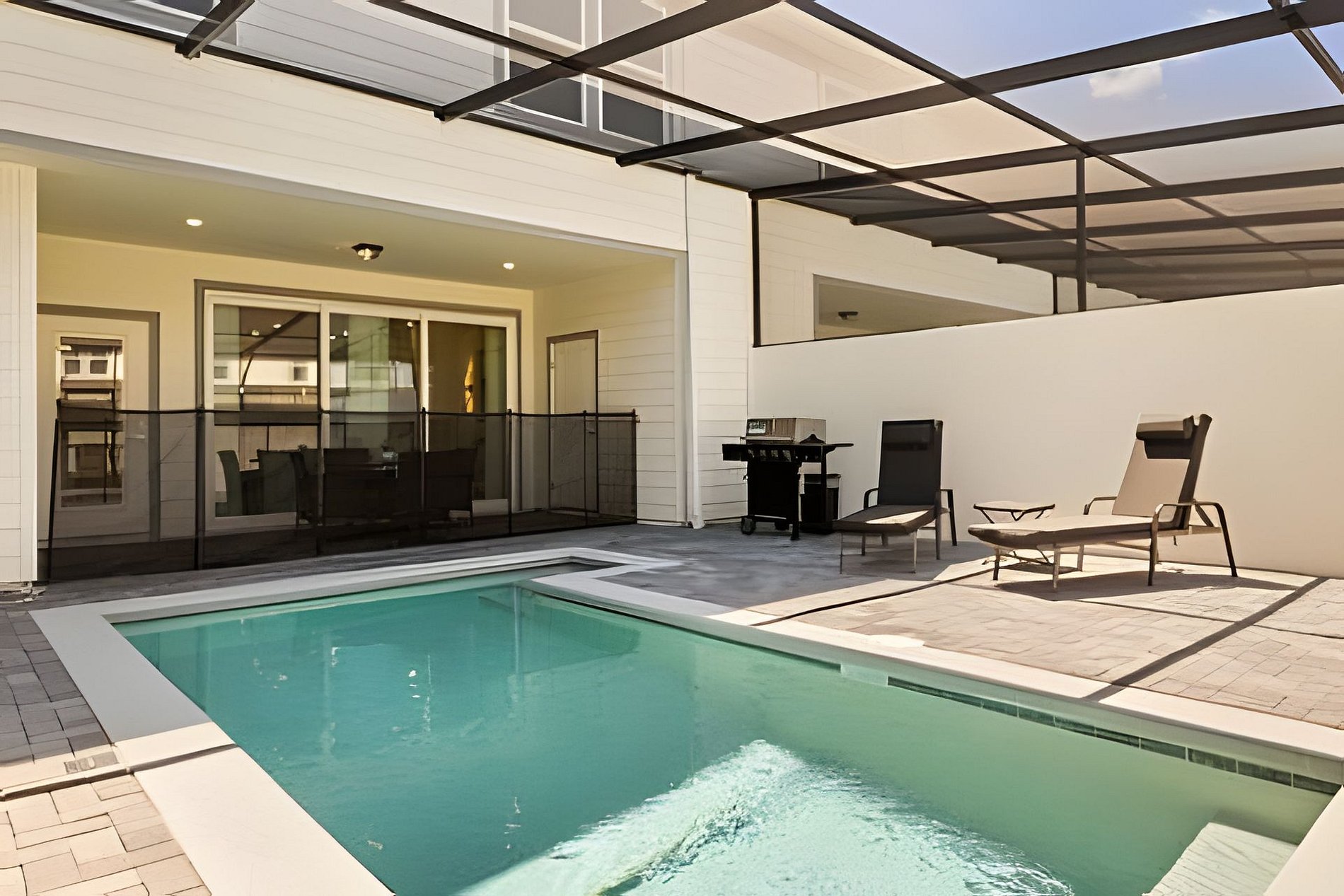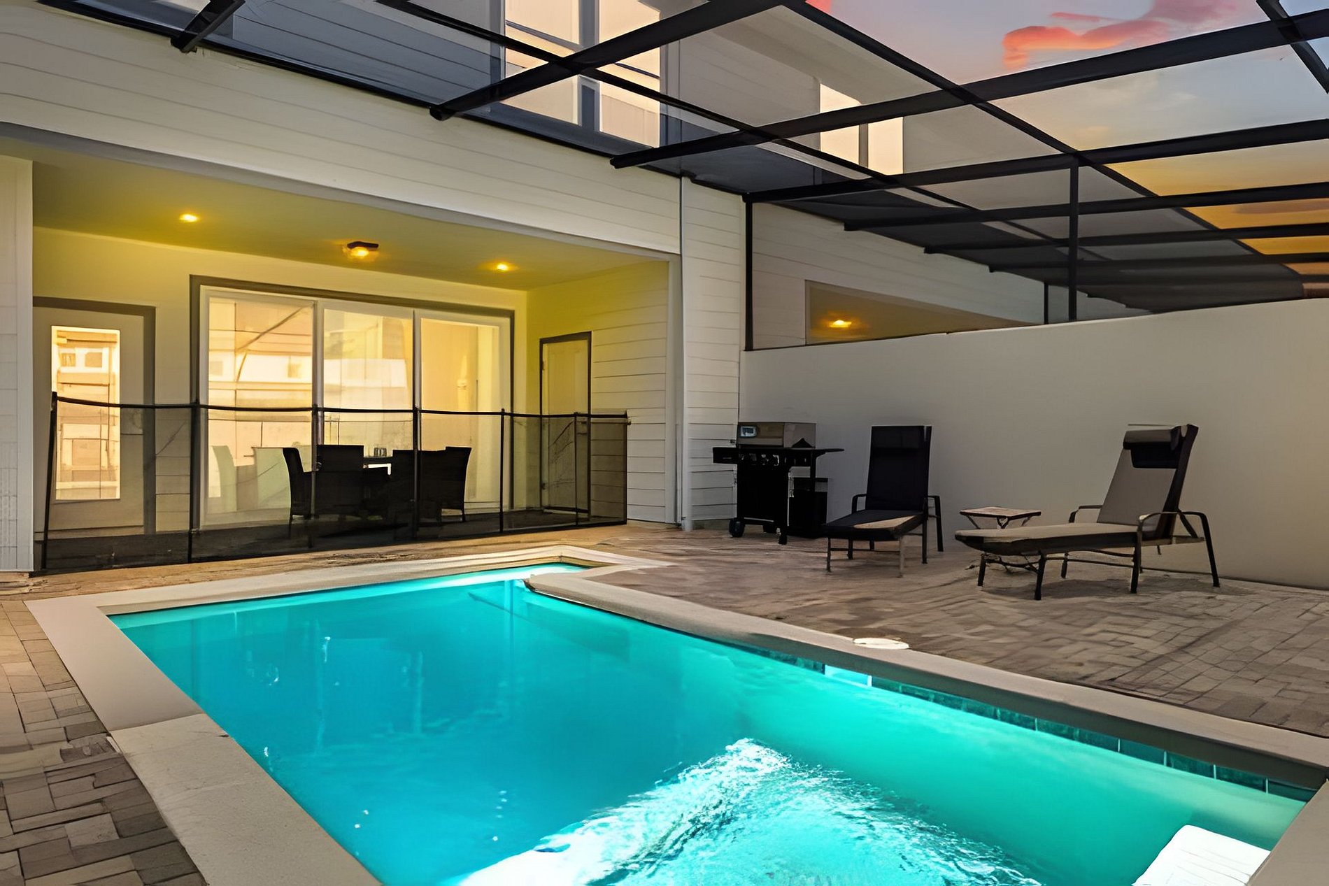 * Ar condicionado central * Código de porta privativo para cada hóspede * Cozinha totalmente equipada * Máquina de lavar e secar * Toalhas e lençóis fornecidos * Toalhas de rosto não são fornecidas * Secadores de cabelo, ferro e tábua de passar * TV em todos os quartos * Sala de estar com TV de tela plana * TV a cabo e Wi-Fi gratuitos * Piscina privativa com tela + cerca de segurança para piscina infantil * Móveis de pátio externo com espreguiçadeiras Pack 'n Play / cadeira alta (grátis mediante solicitação)