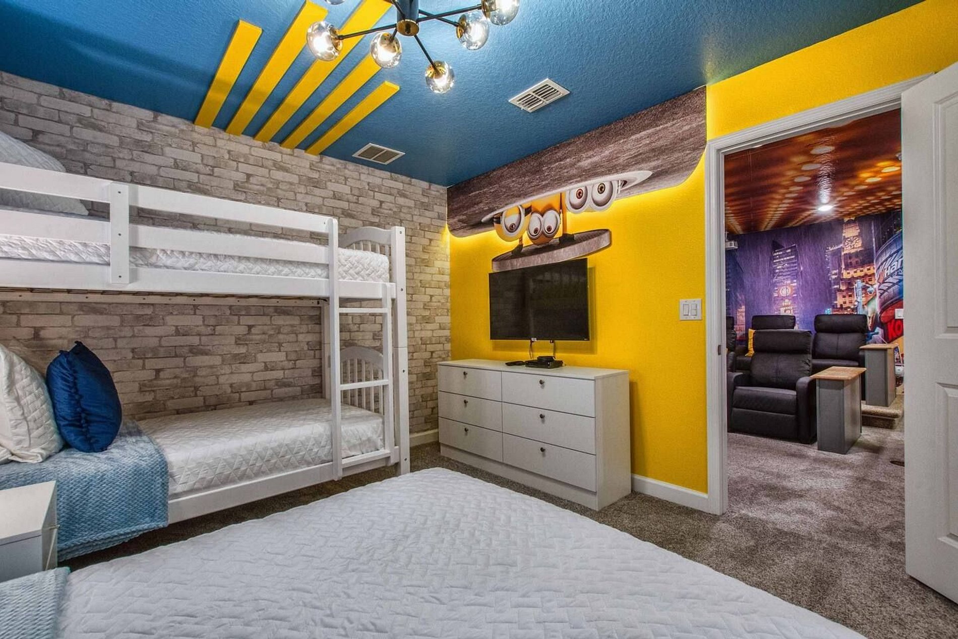 Incredible house, with modern and luxurious decor, has 9 bedrooms accommodates 28 people, a loft equipped with a home theater, a real cinema, a stunning NBA-themed games room, with the most diverse entertainment (basketball, foosball, air hockey, x-box with 2 gaming controllers and chairs, 4 Pandora gaming areas), sophisticated rooms with luxury furniture, Harry Potter themed rooms, Minions, Star Wars, Disney characters, indoor pool and spa for your family vacation. A dream vacation home!