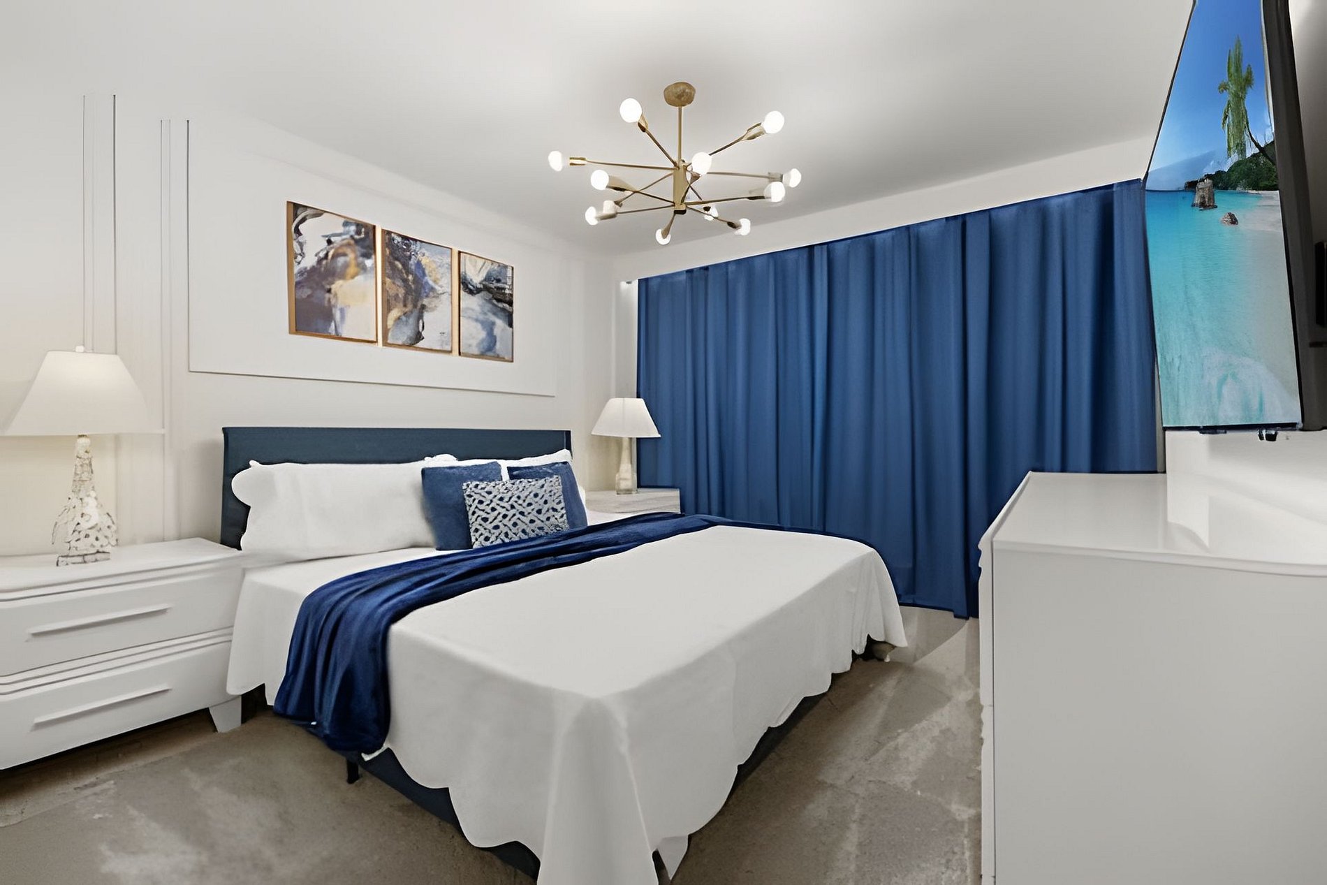 CONFIGURAÇÃO DE CAMAS: 1º andar Quarto 1: 1 cama king size Quarto 2: 2 camas queen size, banheiro privativo 1 sala de jogos 1 banheiro compartilhado 1 lavabo na área externa 2º andar Quarto 3: 1 cama king size, banheiro privativo Quarto 4: 1 cama king size, banheiro privativo Quarto 5: 1 beliche com 2 camas de casal, tema Como Treinar Seu Dragão Quarto 6: 1 beliche com 2 camas de casal, tema A Bela e a Fera, banheiro compartilhado Quarto 7: 1 cama king size, banheiro compartilhado 1 sala de cinema 2 banheiros compartilhados. Esta casa possui 3 suítes completas. * Ar condicionado central * Código de porta privativo para cada hóspede * Cozinha totalmente equipada * Máquina de lavar e secar * Toalhas e lençóis fornecidos * Toalhas de rosto não são fornecidas * Secadores de cabelo, ferro e tábua de passar * TV em todos os quartos * Sala de estar com TV de tela plana * TV a cabo e Wi-Fi gratuitos * Piscina privativa com tela + cerca de segurança para crianças * Móveis para pátio externo com espreguiçadeiras, berço portátil / cadeira alta (grátis mediante solicitação)