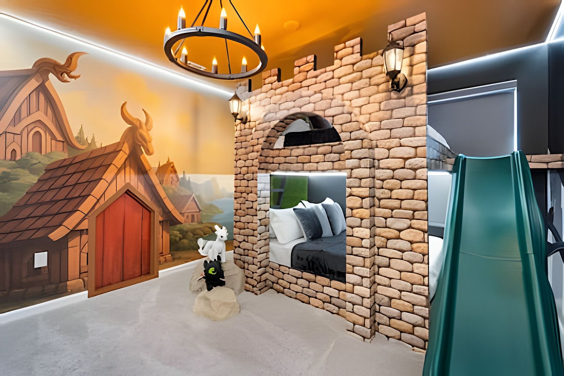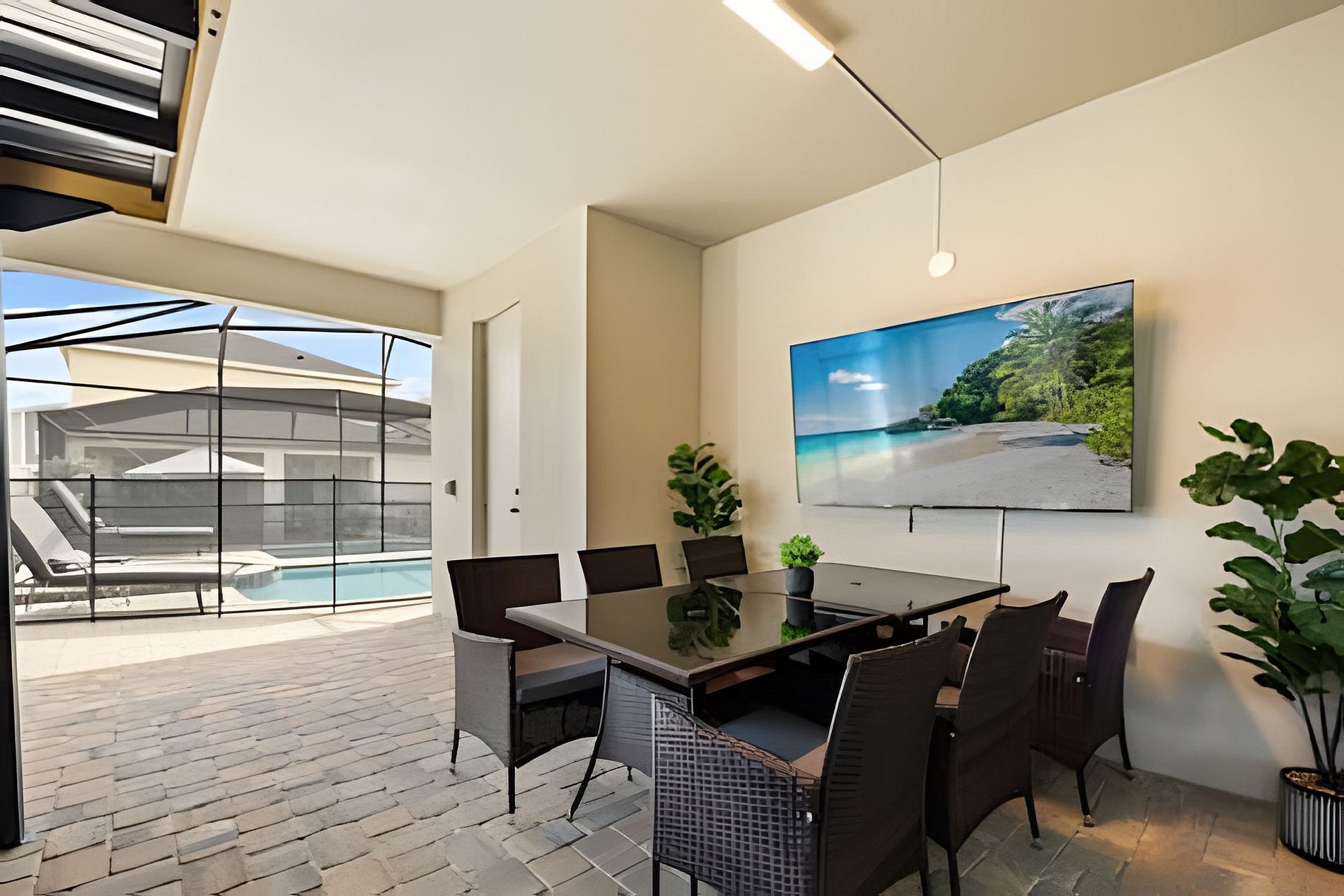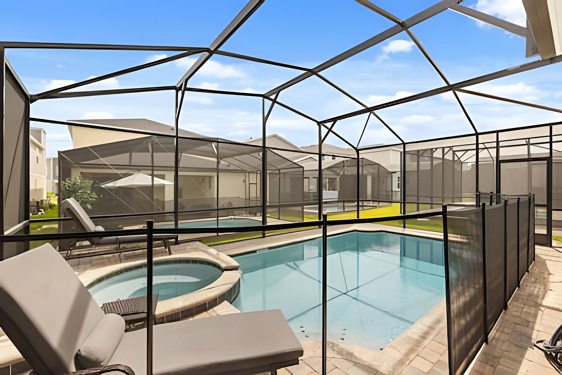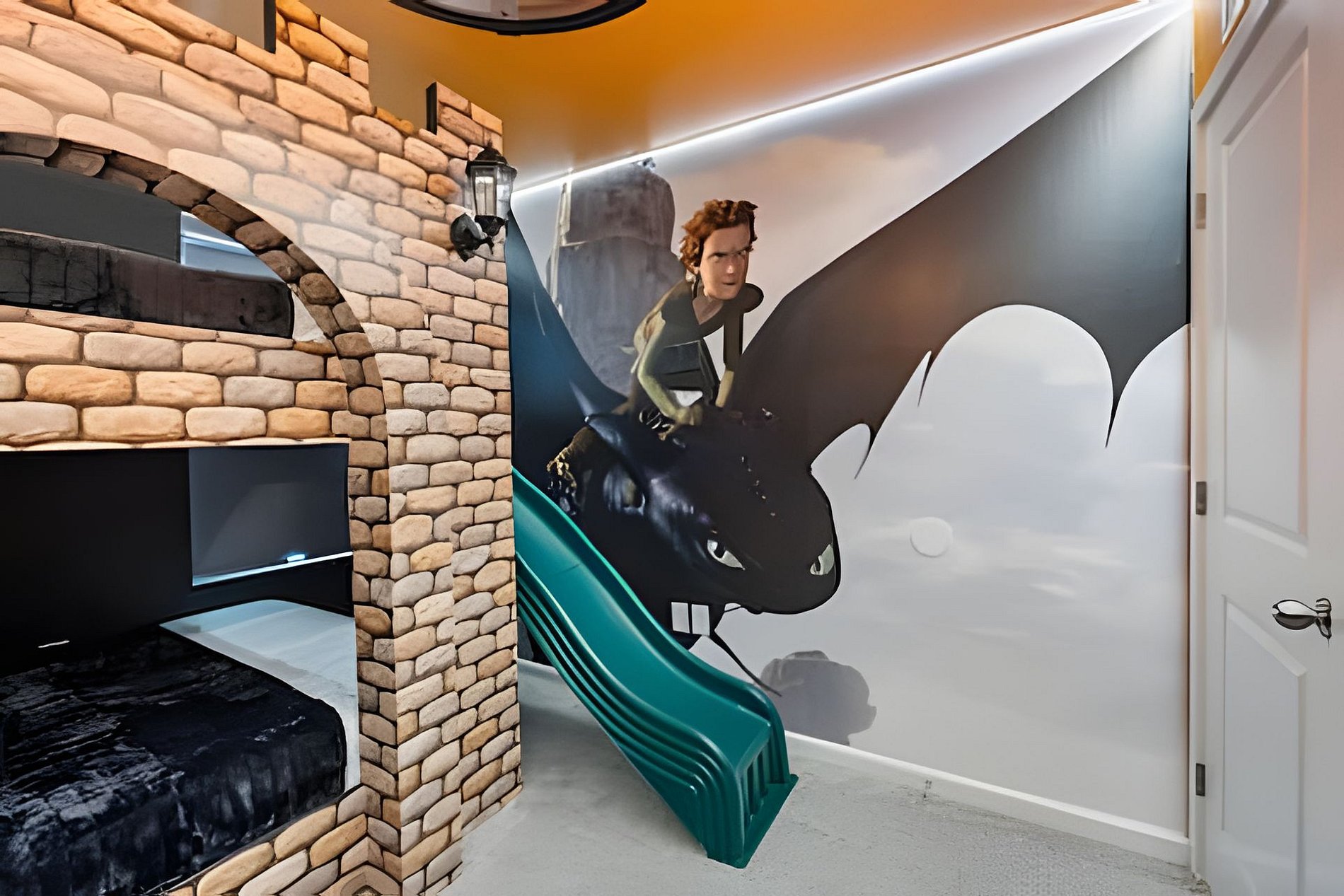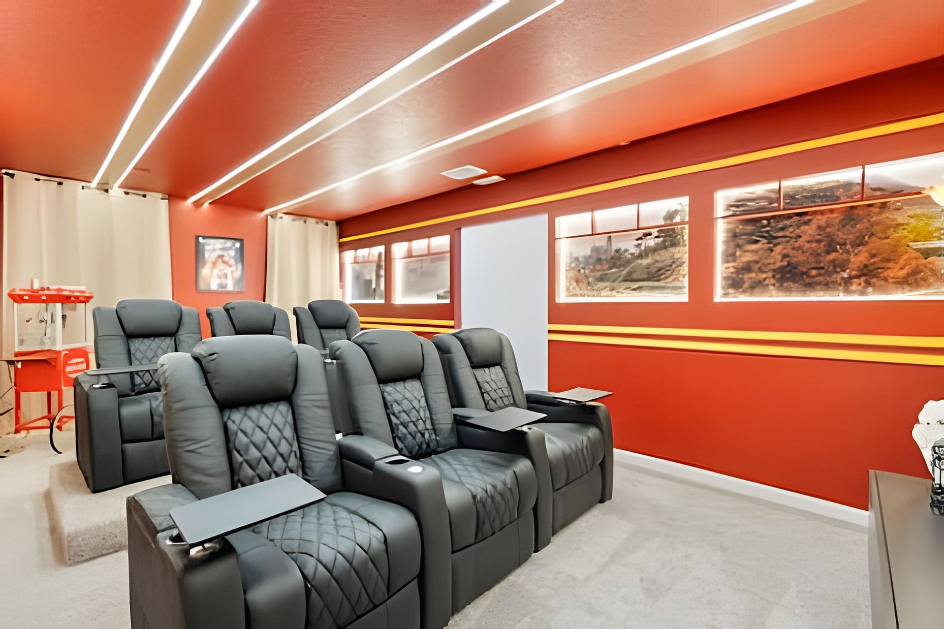 CONFIGURAÇÃO DE CAMAS: 1º andar Quarto 1: 1 cama king size Quarto 2: 2 camas queen size, banheiro privativo 1 sala de jogos 1 banheiro compartilhado 1 lavabo na área externa 2º andar Quarto 3: 1 cama king size, banheiro privativo Quarto 4: 1 cama king size, banheiro privativo Quarto 5: 1 beliche com 2 camas de casal, tema Como Treinar Seu Dragão Quarto 6: 1 beliche com 2 camas de casal, tema A Bela e a Fera, banheiro compartilhado Quarto 7: 1 cama king size, banheiro compartilhado 1 sala de cinema 2 banheiros compartilhados. Esta casa possui 3 suítes completas. * Ar condicionado central * Código de porta privativo para cada hóspede * Cozinha totalmente equipada * Máquina de lavar e secar * Toalhas e lençóis fornecidos * Toalhas de rosto não são fornecidas * Secadores de cabelo, ferro e tábua de passar * TV em todos os quartos * Sala de estar com TV de tela plana * TV a cabo e Wi-Fi gratuitos * Piscina privativa com tela + cerca de segurança para crianças * Móveis para pátio externo com espreguiçadeiras, berço portátil / cadeira alta (grátis mediante solicitação)