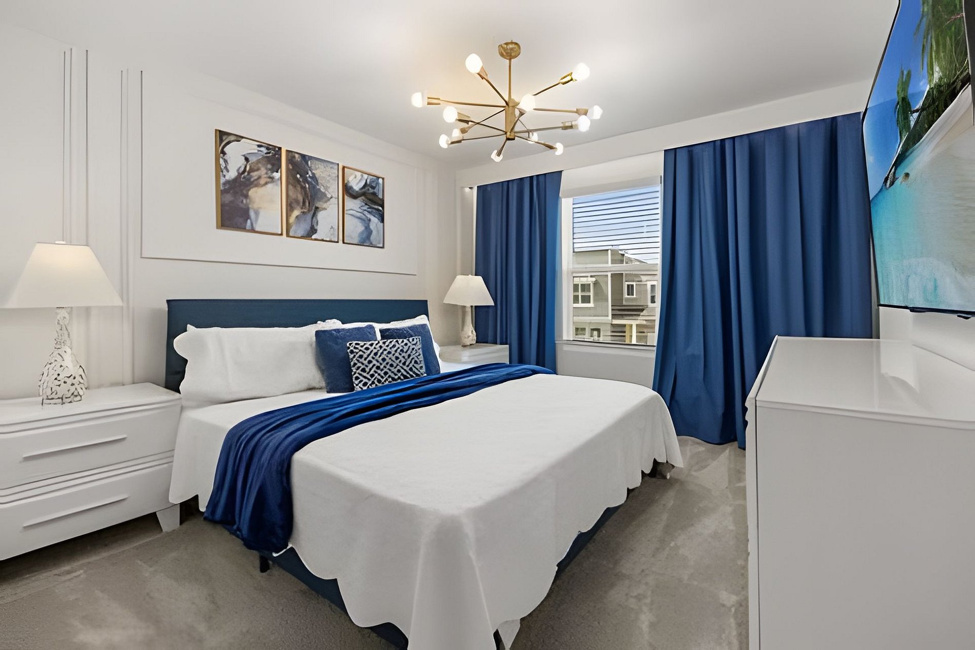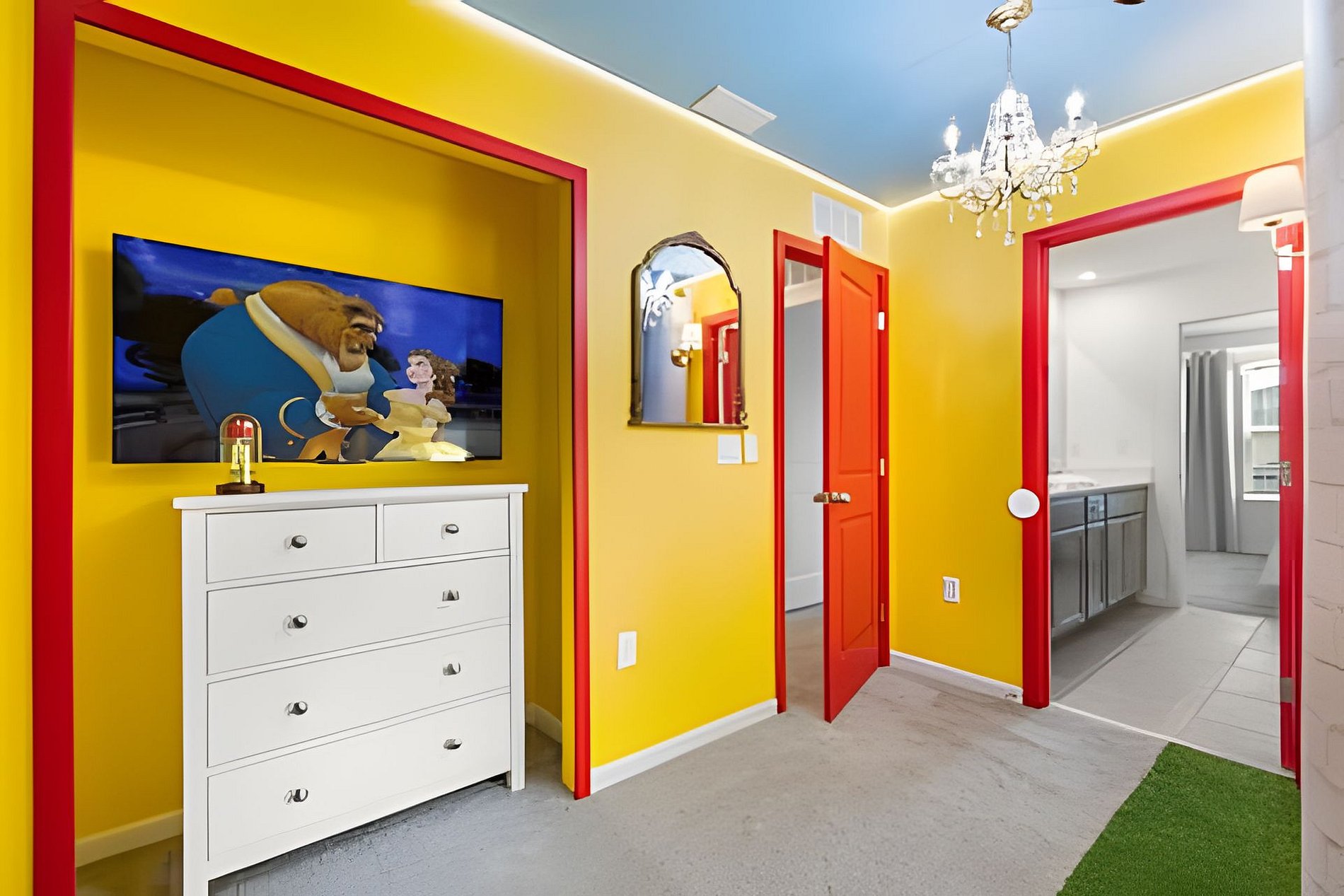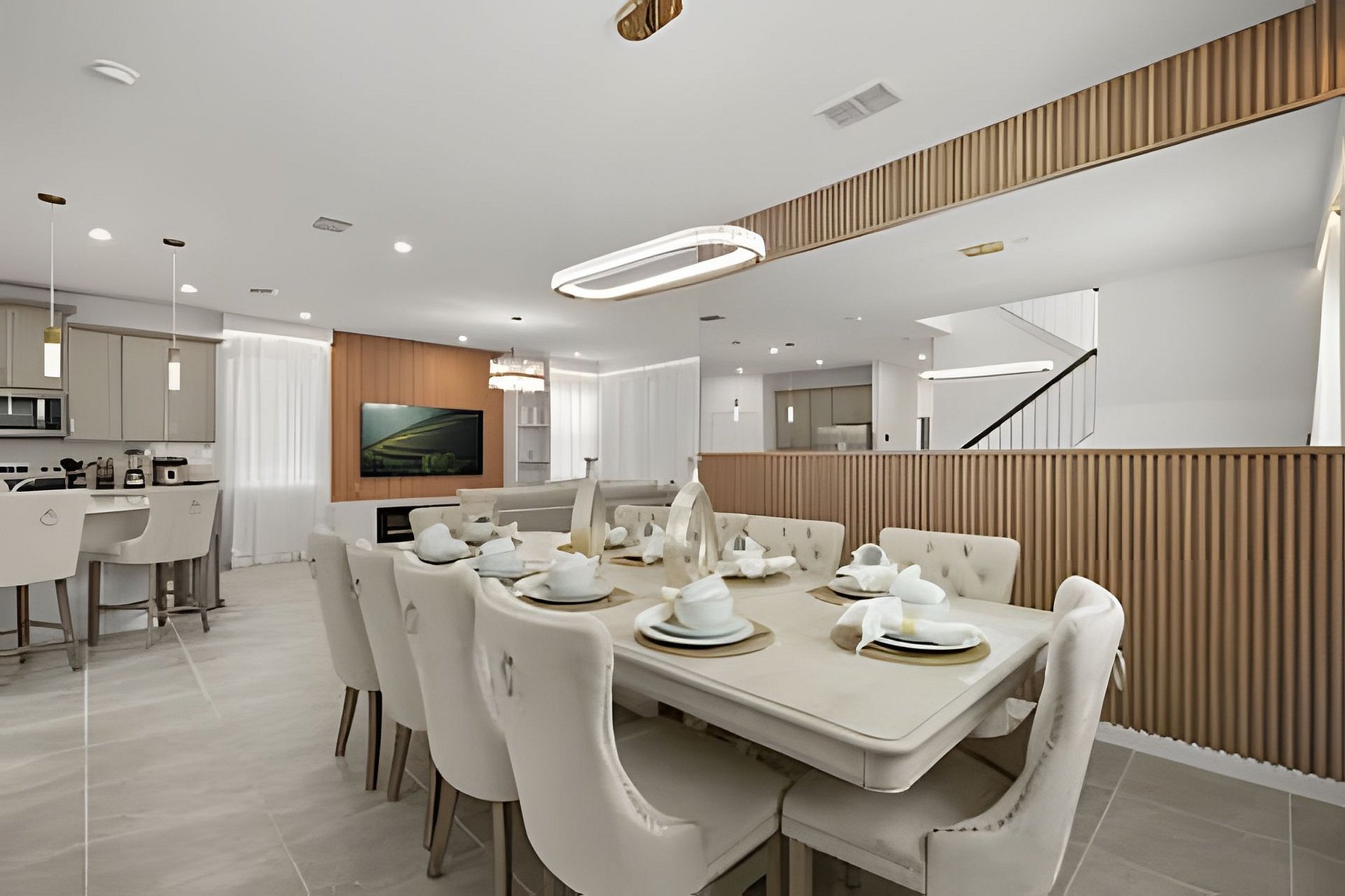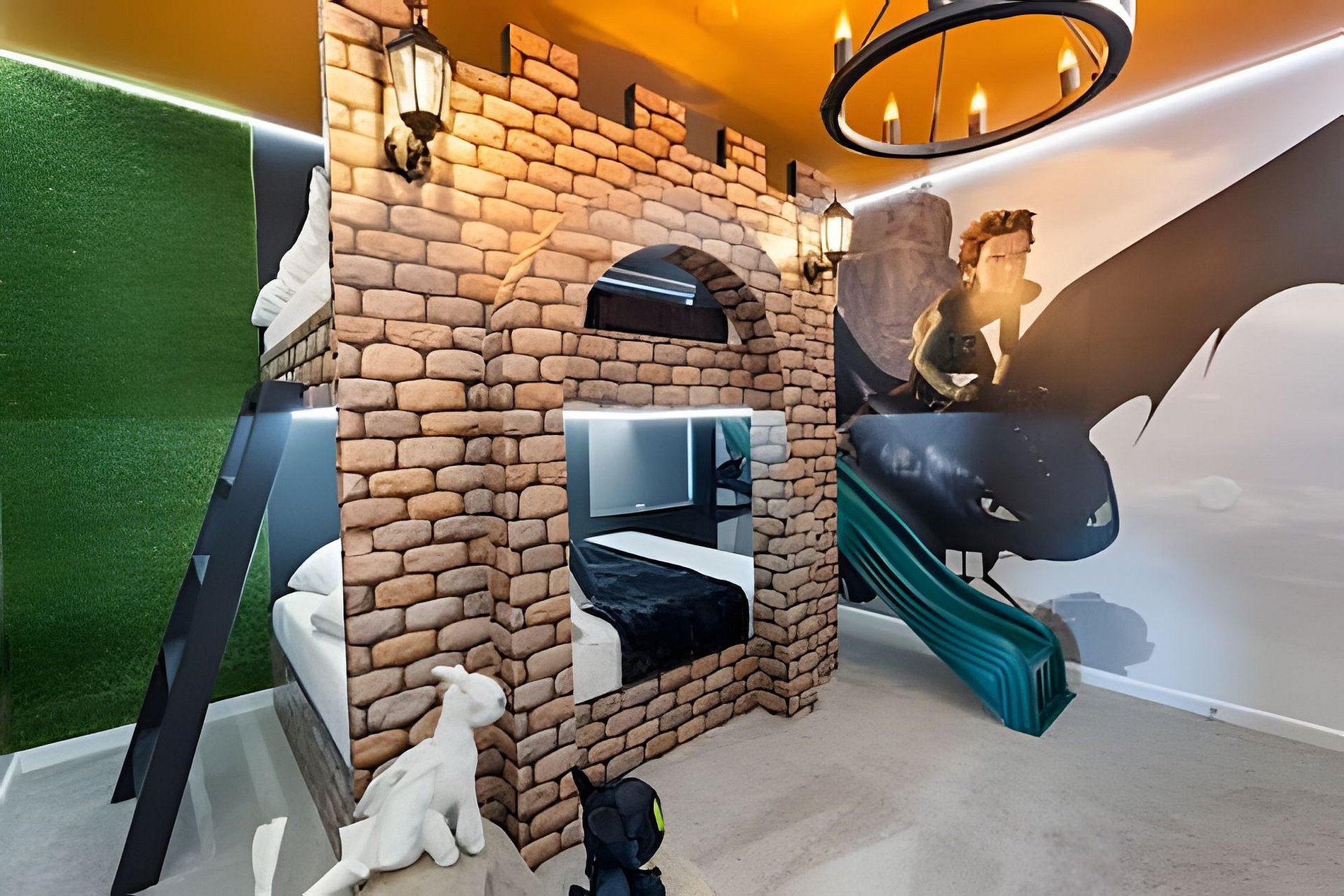 CONFIGURAÇÃO DE CAMAS: 1º andar Quarto 1: 1 cama king size Quarto 2: 2 camas queen size, banheiro privativo 1 sala de jogos 1 banheiro compartilhado 1 lavabo na área externa 2º andar Quarto 3: 1 cama king size, banheiro privativo Quarto 4: 1 cama king size, banheiro privativo Quarto 5: 1 beliche com 2 camas de casal, tema Como Treinar Seu Dragão Quarto 6: 1 beliche com 2 camas de casal, tema A Bela e a Fera, banheiro compartilhado Quarto 7: 1 cama king size, banheiro compartilhado 1 sala de cinema 2 banheiros compartilhados. Esta casa possui 3 suítes completas. * Ar condicionado central * Código de porta privativo para cada hóspede * Cozinha totalmente equipada * Máquina de lavar e secar * Toalhas e lençóis fornecidos * Toalhas de rosto não são fornecidas * Secadores de cabelo, ferro e tábua de passar * TV em todos os quartos * Sala de estar com TV de tela plana * TV a cabo e Wi-Fi gratuitos * Piscina privativa com tela + cerca de segurança para crianças * Móveis para pátio externo com espreguiçadeiras, berço portátil / cadeira alta (grátis mediante solicitação)