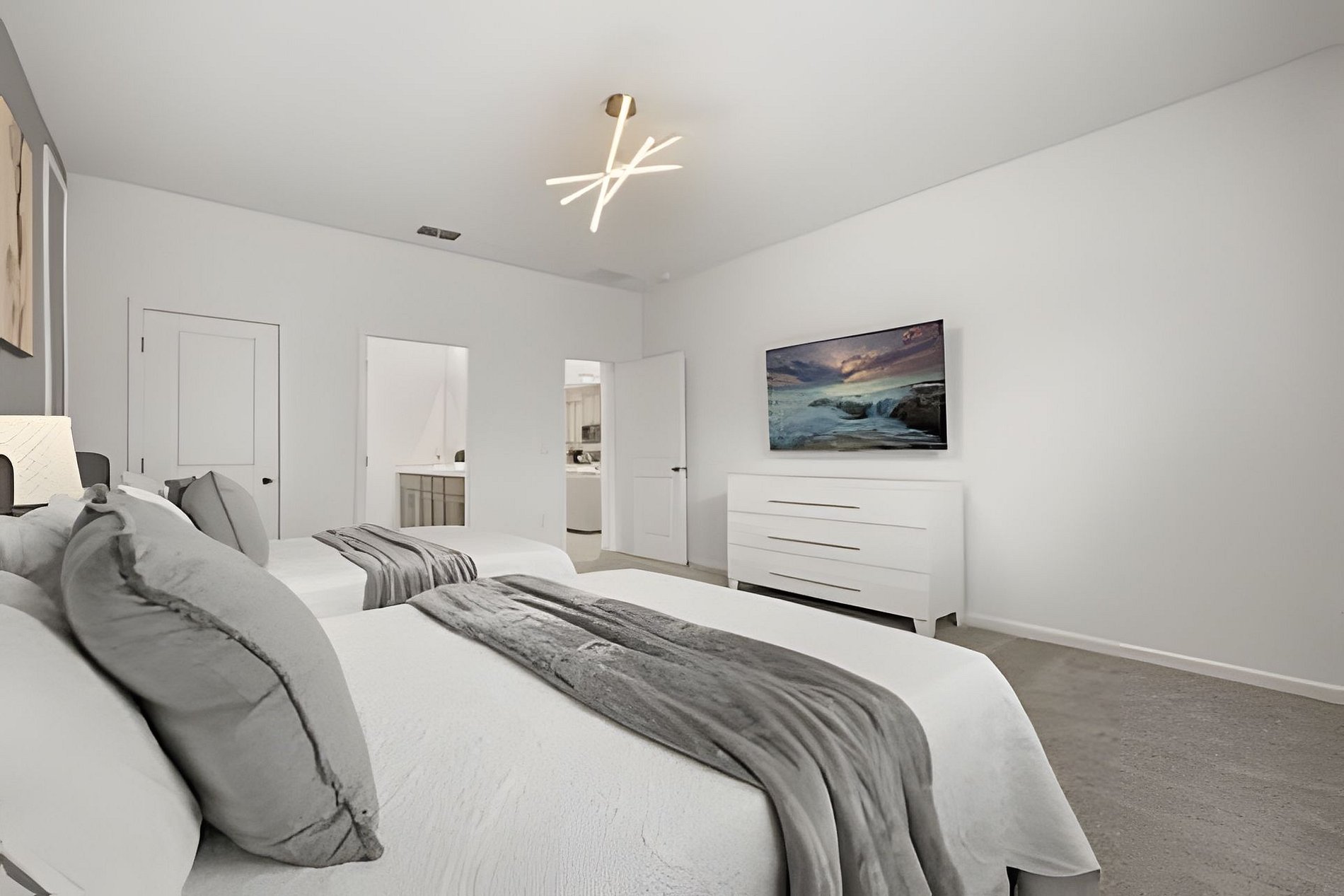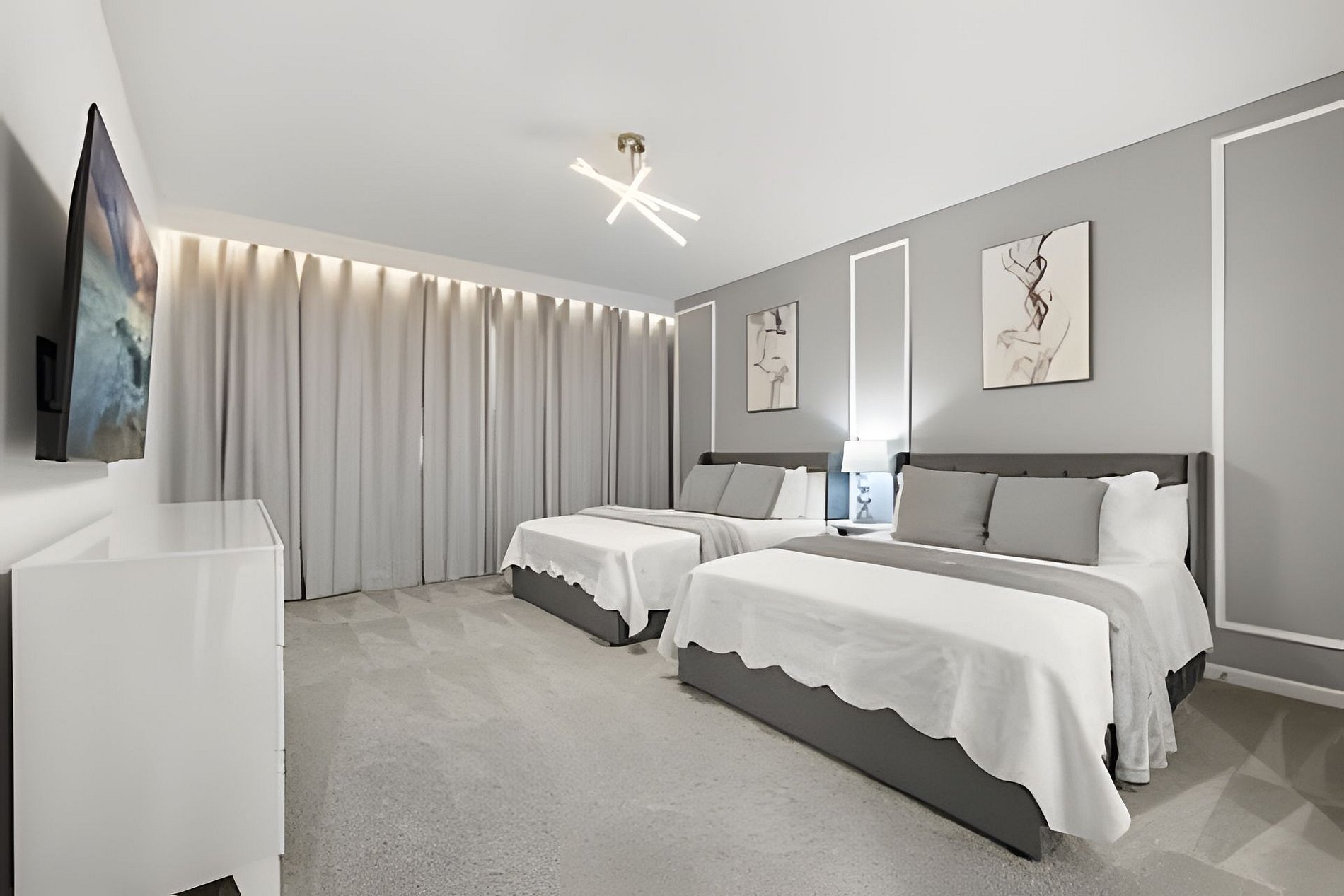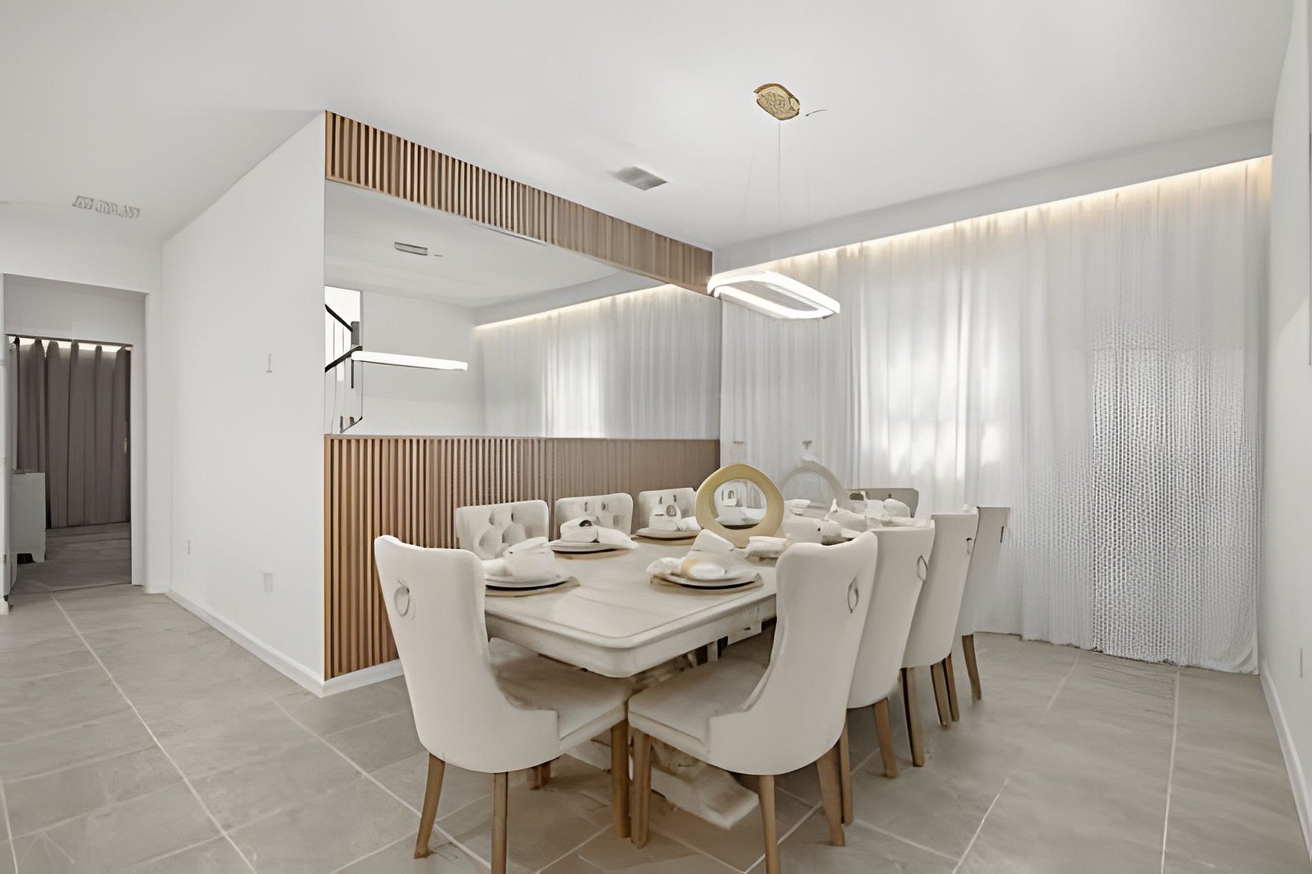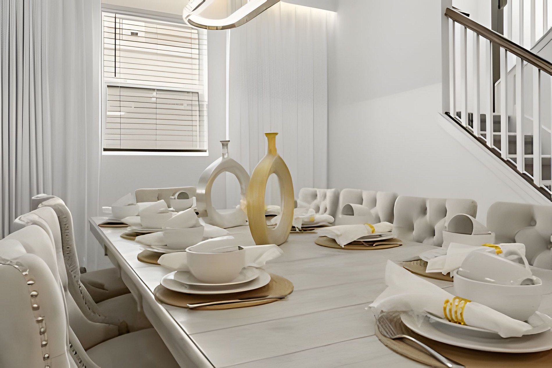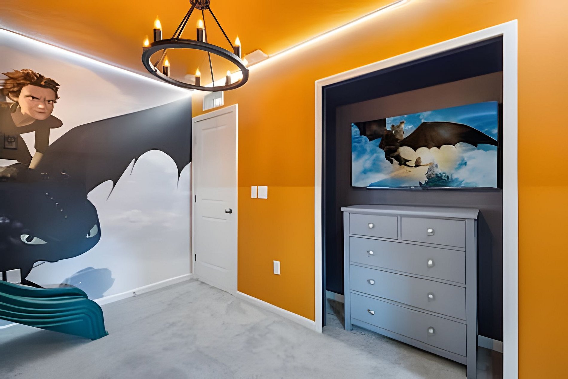 CONFIGURAÇÃO DE CAMAS: 1º andar Quarto 1: 1 cama king size Quarto 2: 2 camas queen size, banheiro privativo 1 sala de jogos 1 banheiro compartilhado 1 lavabo na área externa 2º andar Quarto 3: 1 cama king size, banheiro privativo Quarto 4: 1 cama king size, banheiro privativo Quarto 5: 1 beliche com 2 camas de casal, tema Como Treinar Seu Dragão Quarto 6: 1 beliche com 2 camas de casal, tema A Bela e a Fera, banheiro compartilhado Quarto 7: 1 cama king size, banheiro compartilhado 1 sala de cinema 2 banheiros compartilhados. Esta casa possui 3 suítes completas. * Ar condicionado central * Código de porta privativo para cada hóspede * Cozinha totalmente equipada * Máquina de lavar e secar * Toalhas e lençóis fornecidos * Toalhas de rosto não são fornecidas * Secadores de cabelo, ferro e tábua de passar * TV em todos os quartos * Sala de estar com TV de tela plana * TV a cabo e Wi-Fi gratuitos * Piscina privativa com tela + cerca de segurança para crianças * Móveis para pátio externo com espreguiçadeiras, berço portátil / cadeira alta (grátis mediante solicitação)