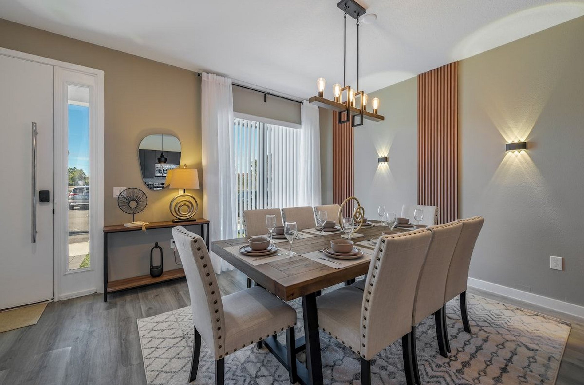 Close to Disney located in the gated community The Hub. This new house has been decorated to offer the highest quality services to our guests. This beautiful 3 bedroom house has everything you need for a comfortable stay with your family and friends. It has modern, state-of-the-art appliances, furniture and comfortable spaces with free Wi-Fi Internet. Room with Magic Kingdom park wallpaper with the wonderful Cinderella Castle. Mickey Mouse themed room and other rooms with clean decor.