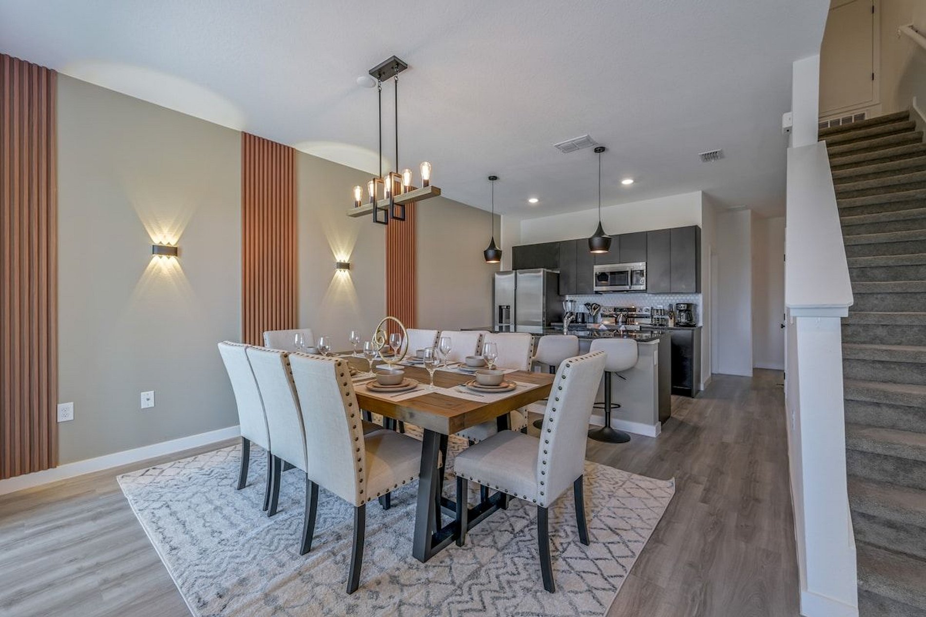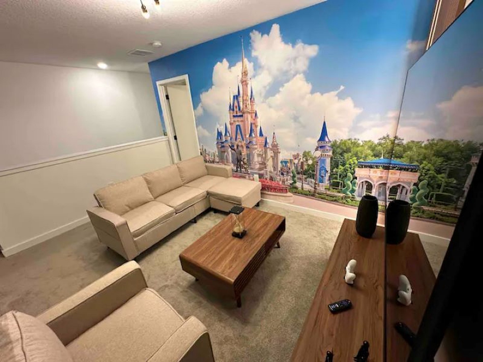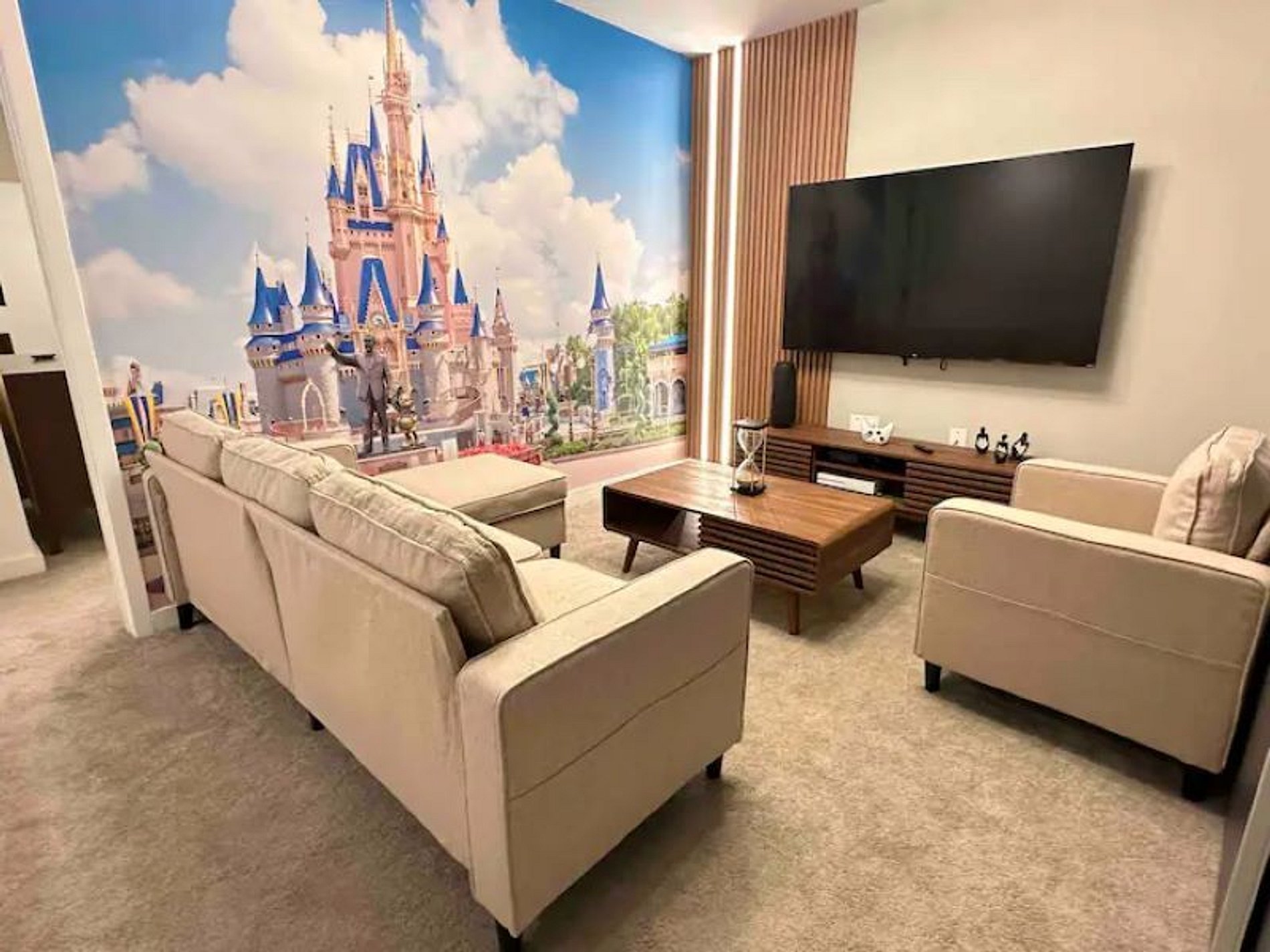 Close to Disney located in the gated community The Hub. This new house has been decorated to offer the highest quality services to our guests. This beautiful 3 bedroom house has everything you need for a comfortable stay with your family and friends. It has modern, state-of-the-art appliances, furniture and comfortable spaces with free Wi-Fi Internet. Room with Magic Kingdom park wallpaper with the wonderful Cinderella Castle. Mickey Mouse themed room and other rooms with clean decor.