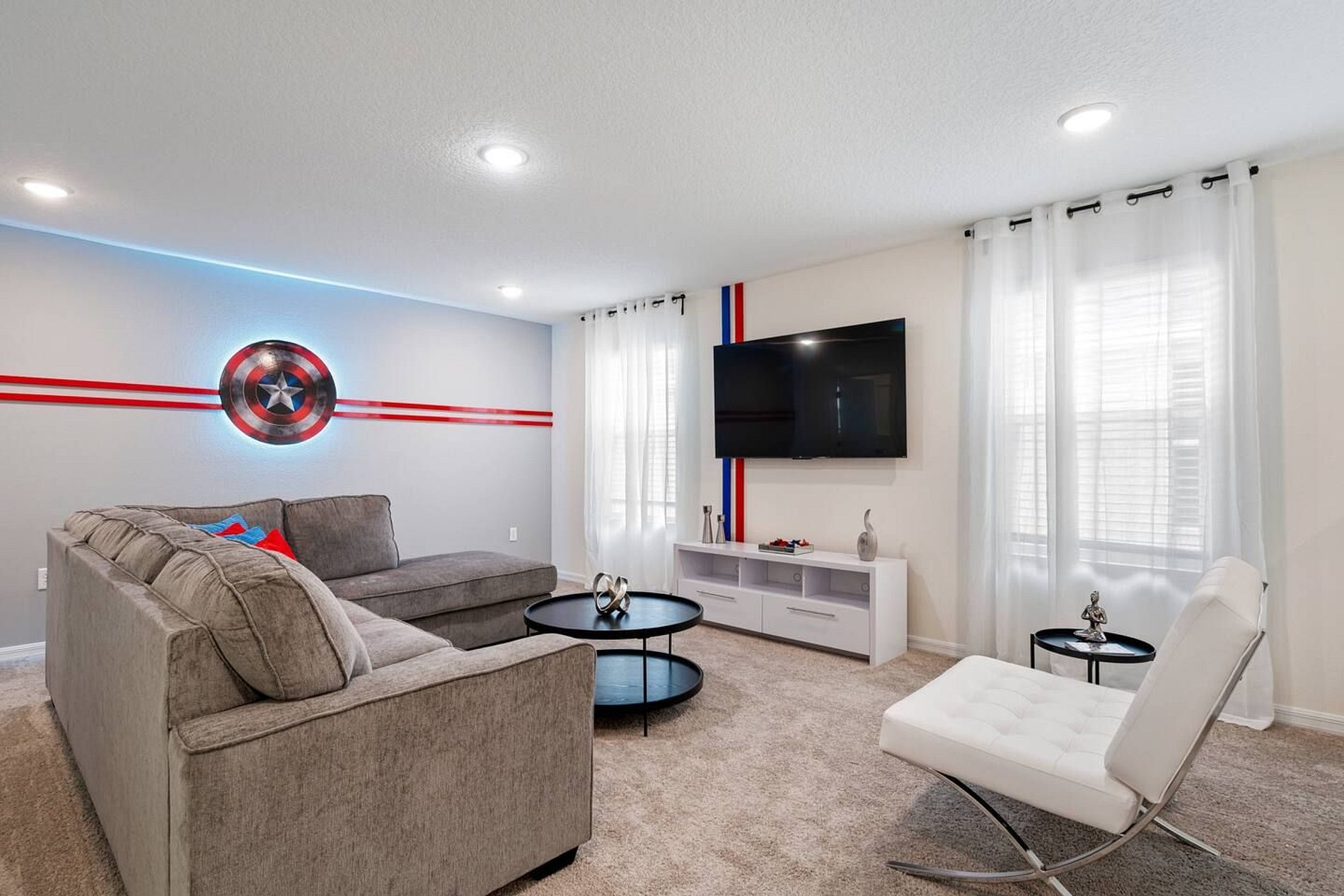 This gorgeous 6-bedroom, 4-bathroom vacation home in the beautiful Solara Resort has enough space for the whole family in this open, spacious, 2-story Disney vacation villa, Spider-Man and Mickey themed rooms. Solara Resort includes luxuries to satisfy every member of your family, including a water park, teen hangout and bar. The location couldn't be better. Just 8 miles from Walt Disney World and a short drive from other famous attractions, it's a secure, gated community.