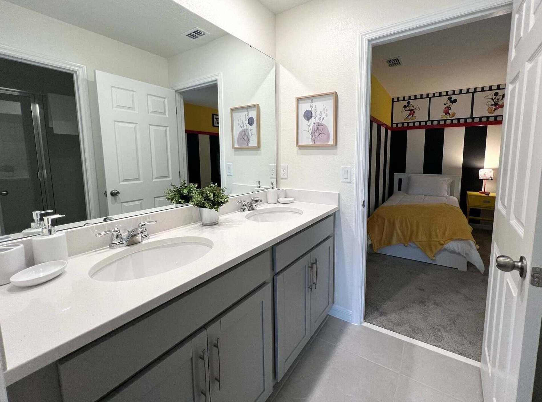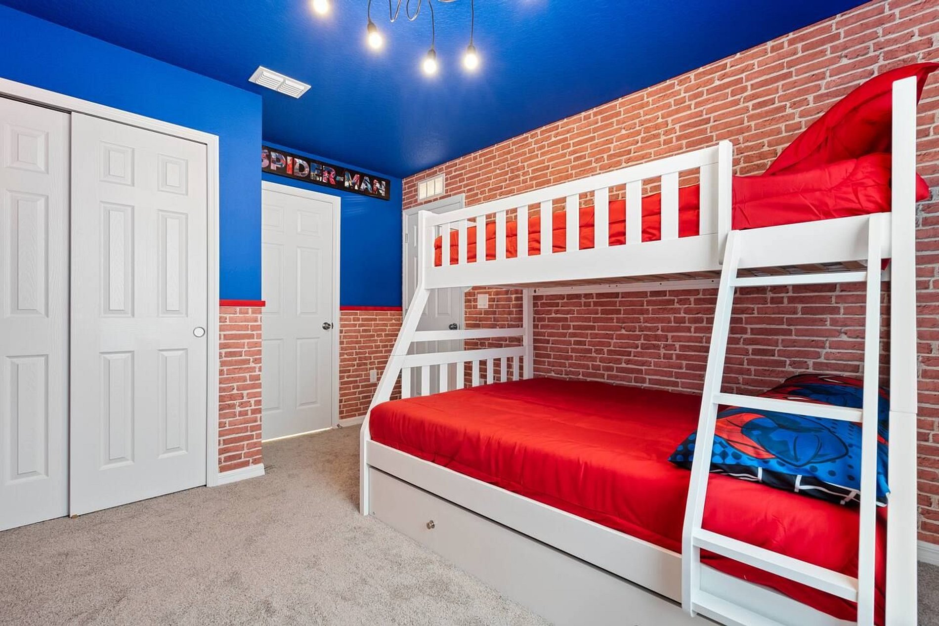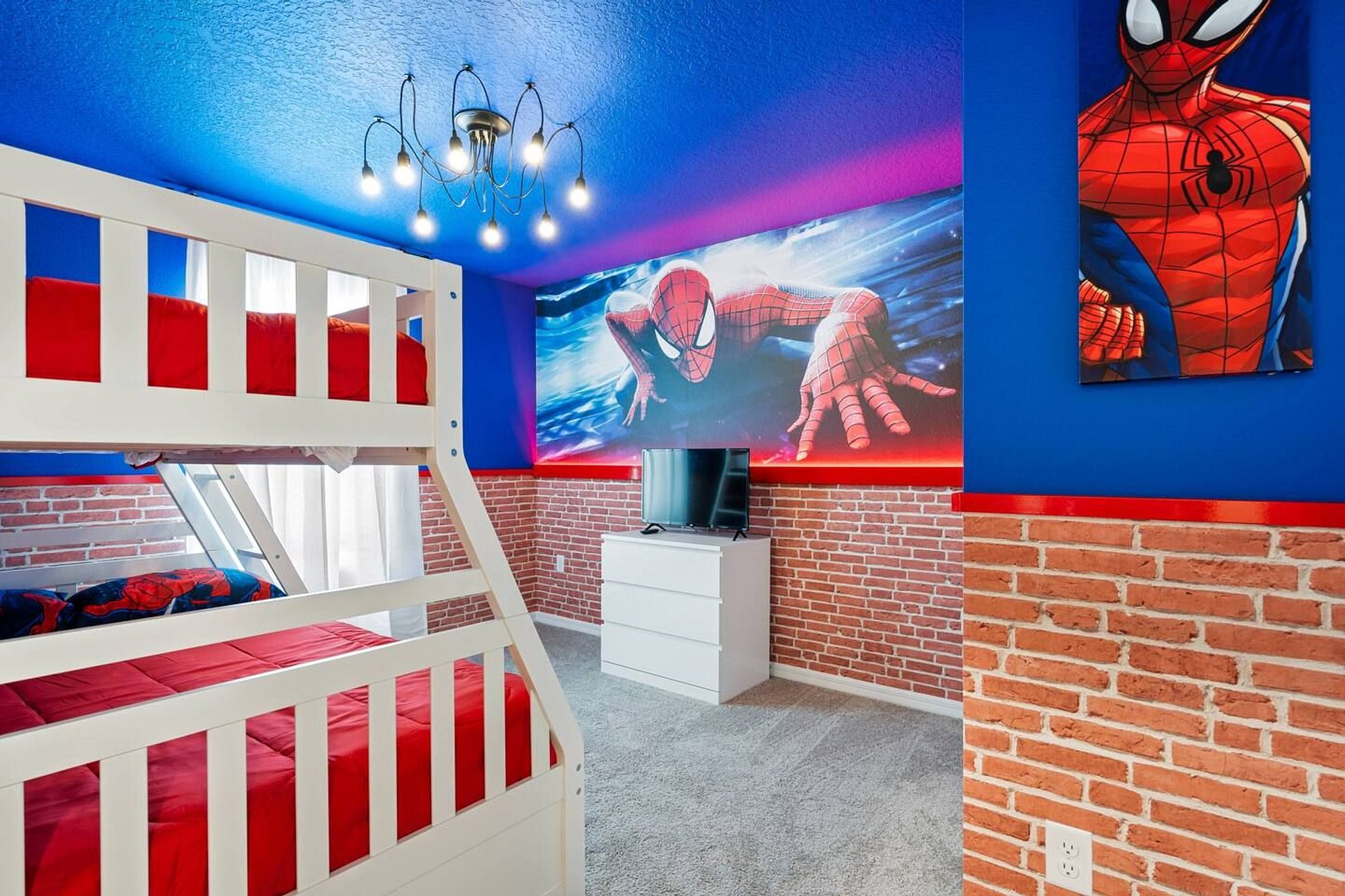 This gorgeous 6-bedroom, 4-bathroom vacation home in the beautiful Solara Resort has enough space for the whole family in this open, spacious, 2-story Disney vacation villa, Spider-Man and Mickey themed rooms. Solara Resort includes luxuries to satisfy every member of your family, including a water park, teen hangout and bar. The location couldn't be better. Just 8 miles from Walt Disney World and a short drive from other famous attractions, it's a secure, gated community.
