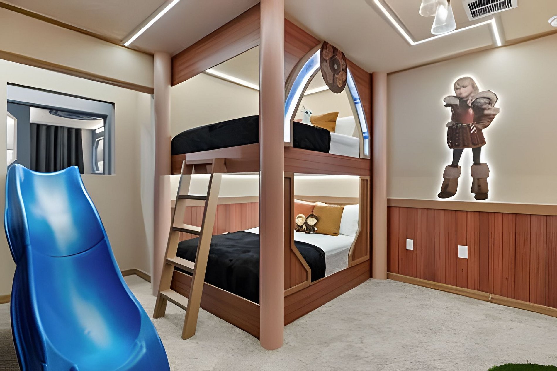 Bedroom 7: 1 Bunk bed with 2 full beds + 1 twin bed, suite, Princess;