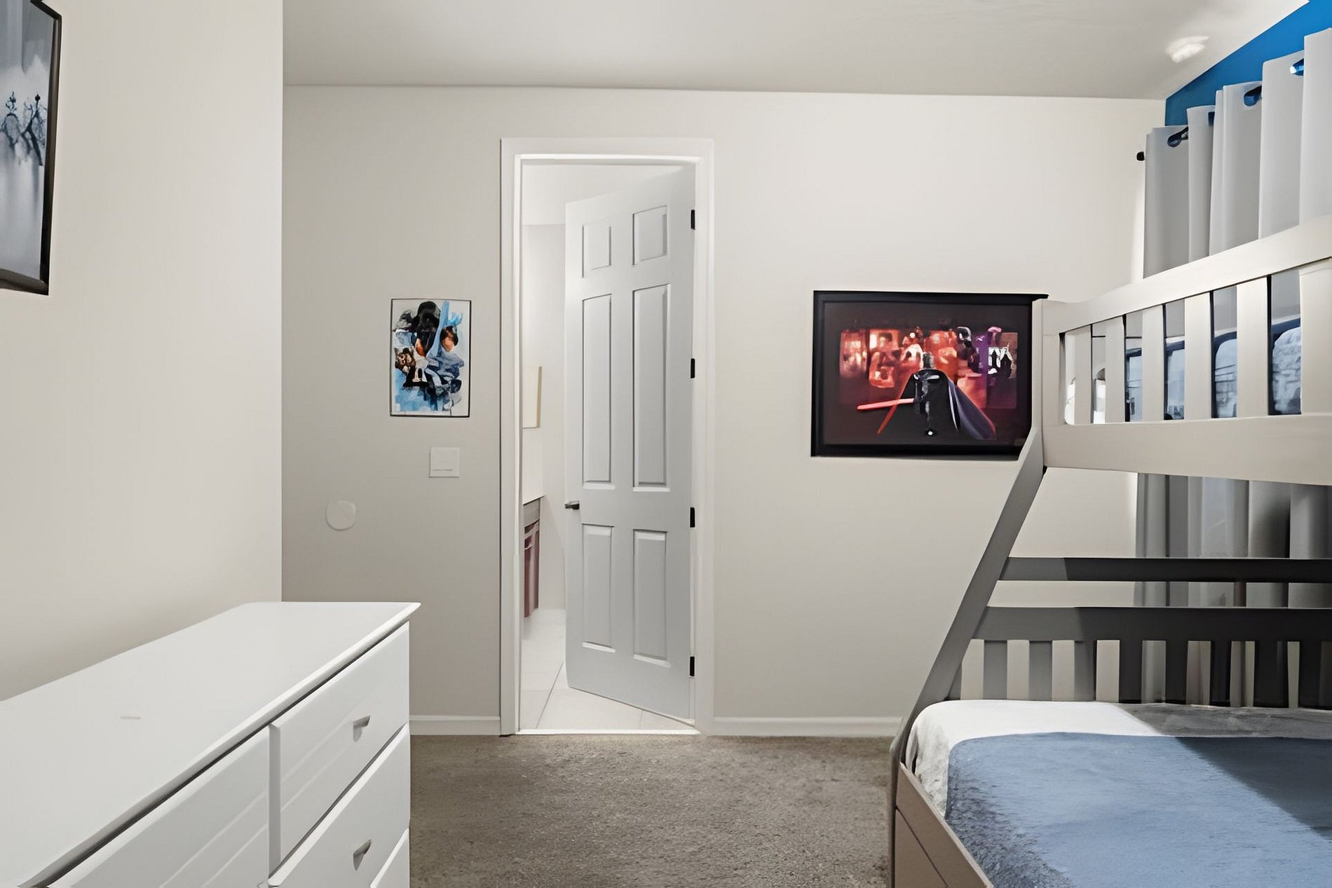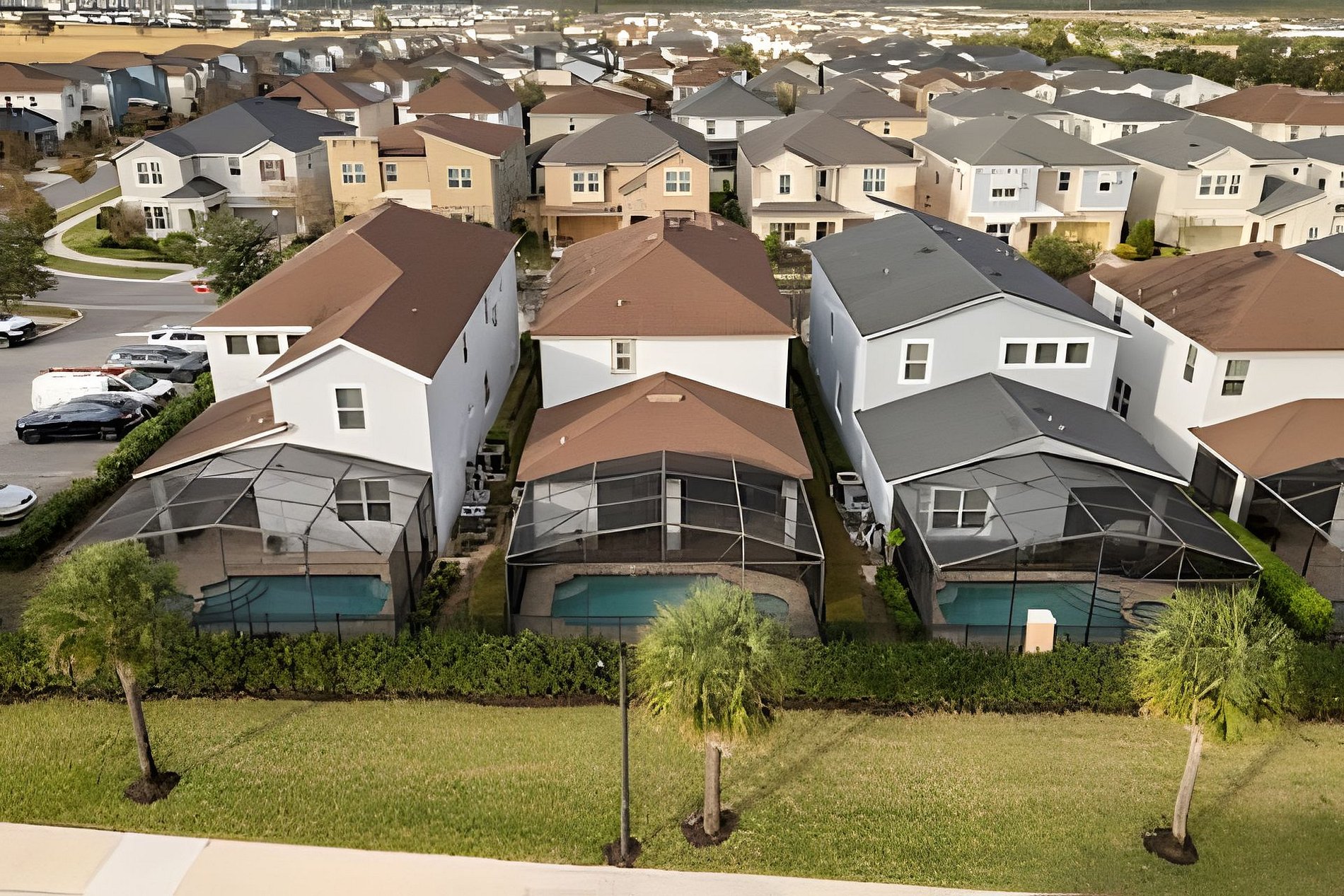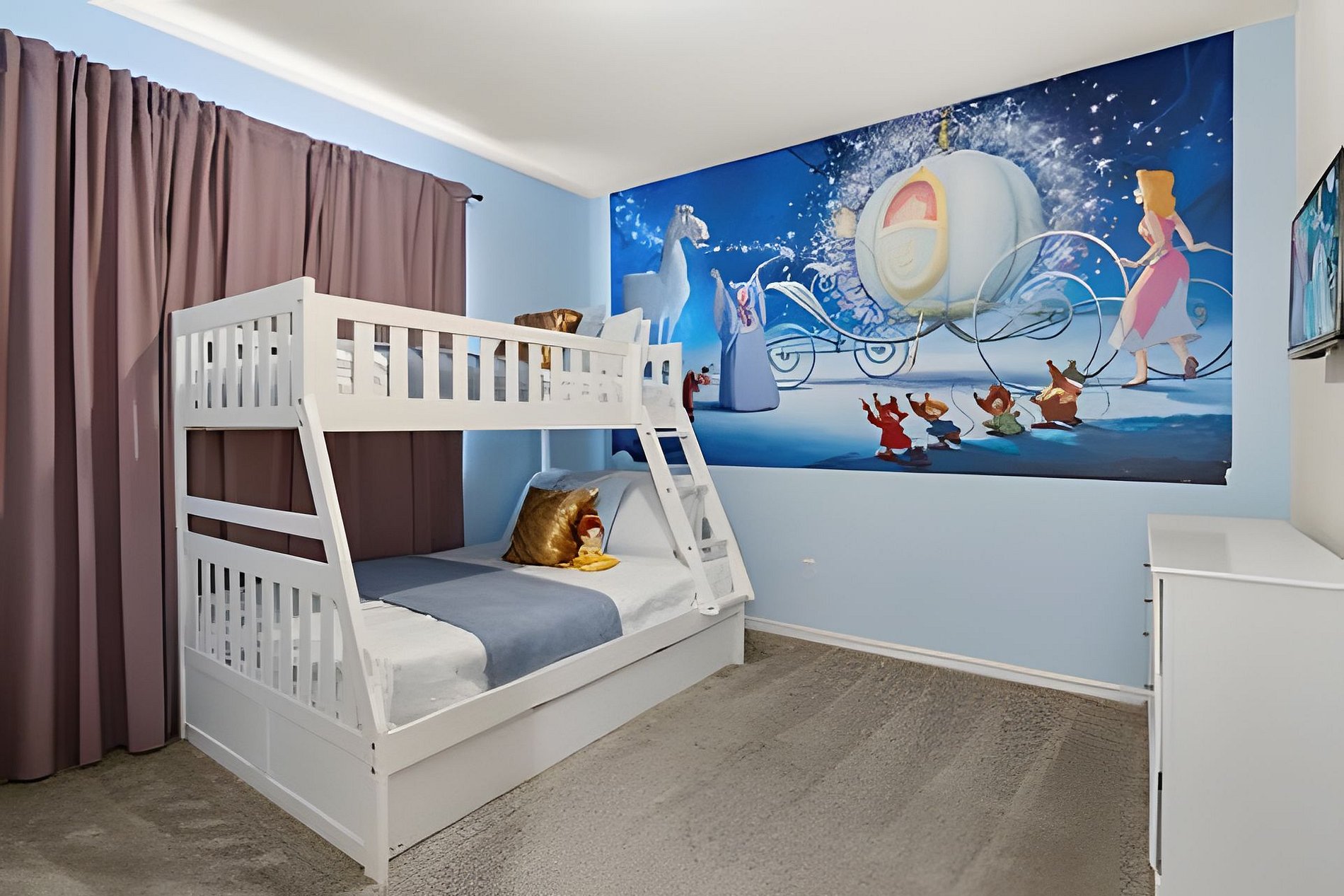 BED CONFIGURATION: 1st floor - Bedroom 1: 1 King bed, en-suite 2nd floor - Bedroom 2: 1 King bed, en-suite; - Bedroom 3: 1 bunk bed with a full bed on the bottom, a twin bed on the top, and 1 auxiliary twin bed, shared bathroom - Bedroom 4: 1 Queen bed, shared bathroom - Bedroom 5: 1 bunk bed with a full bed on the bottom, a twin bed on the top, and 1 auxiliary twin bed (Star Wars) - shared bathroom - Bedroom 6: 1 bunk bed with a full bed on the bottom, a twin bed on the top, and 1 auxiliary twin bed (Princesas) - shared bathroom THIS HAS 2 ENTIRE SUITES AND 4 SHARED SUITES. *Central AC *Private Door Code for Each Guest Stay *Fully Equipped Kitchen *Washer & Dryer *Towels & Linens Provided *Washcloths Are Not Provided *Hair Dryers, Iron & Ironing Board *TV in Every Bedroom *Family Room with Flat Screen TV *Free Cable TV & WiFi *Private Screened-in Pool + Child Safety Pool Fence *Outdoor Patio Furniture with Sun Loungers *Pack ’n Play / High Chair (Free Upon Request)