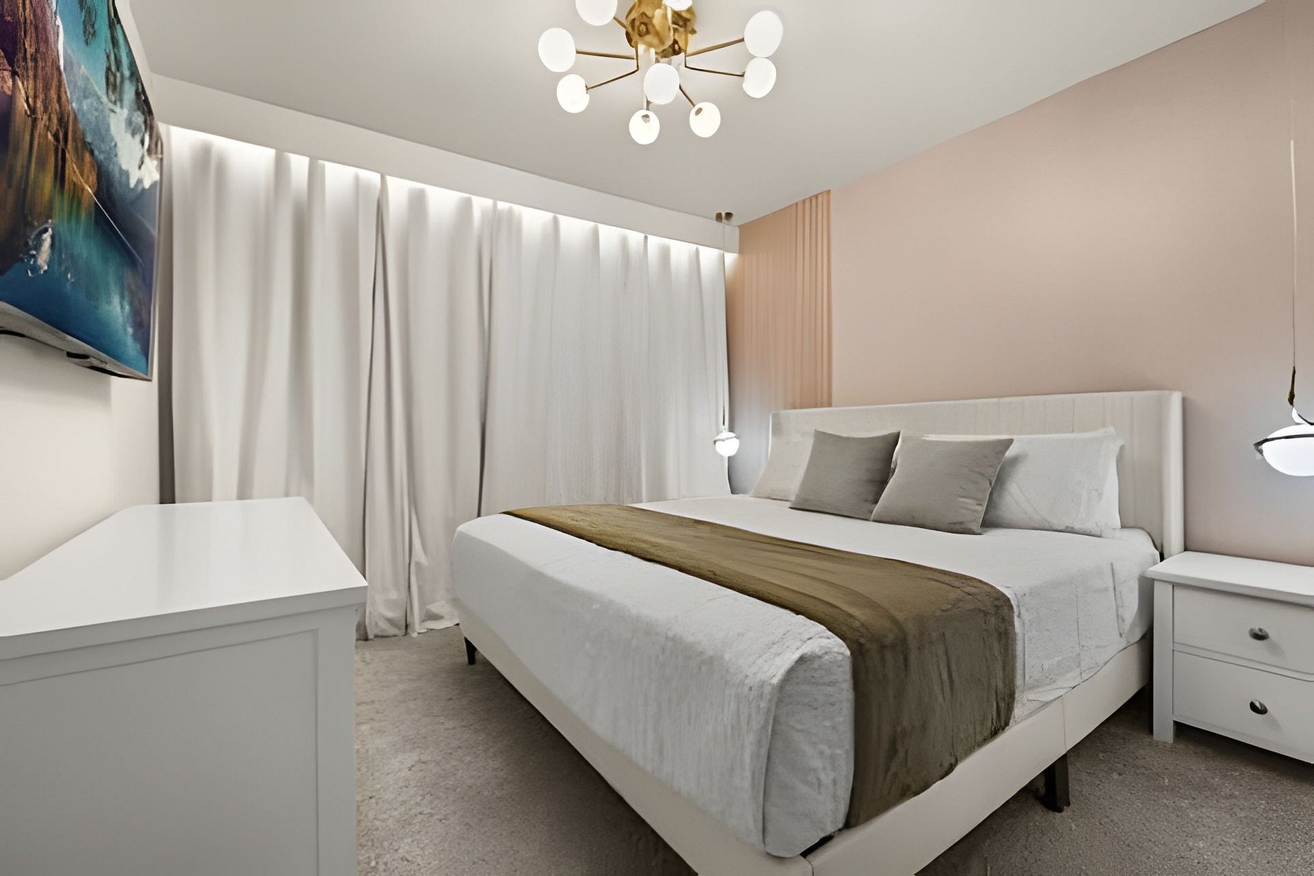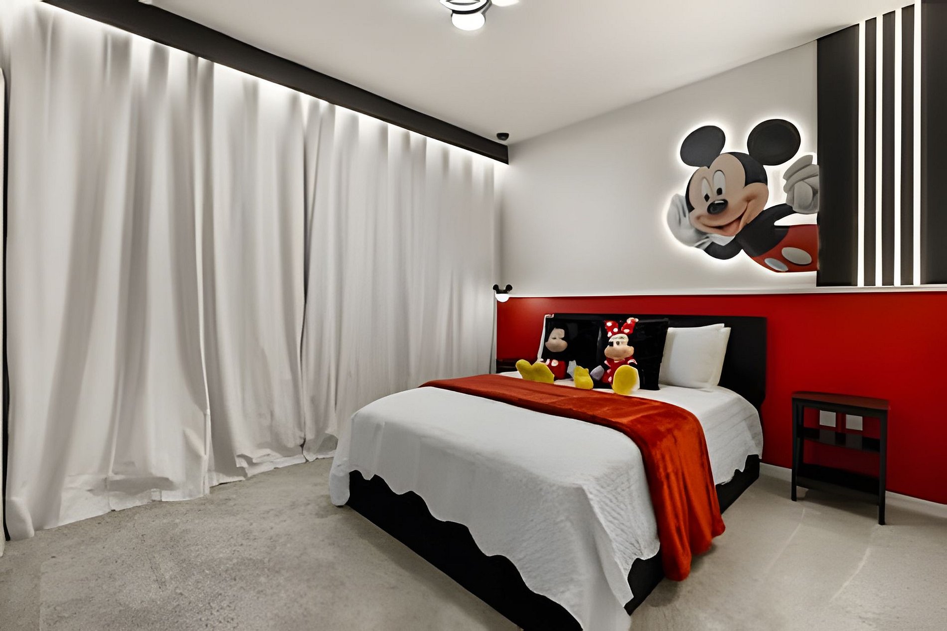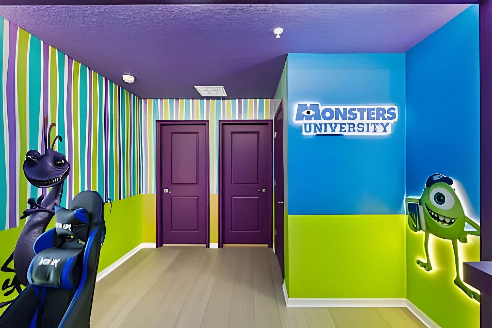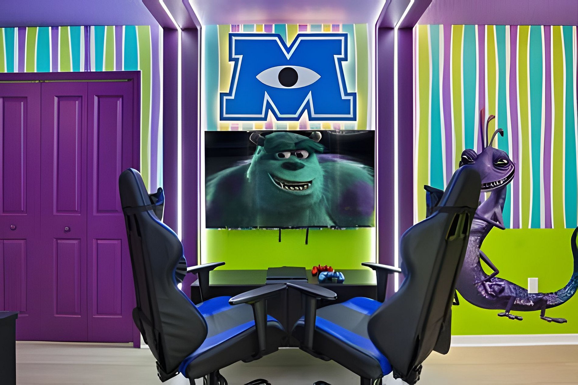 BED CONFIGURATION: 1ST FLOOR Bedroom 1: With Queen Bed; 1 Social bathroom 1 Half bathroom in the outdoor area 2ND FLOOR Bedroom 2: With a King Bed, suite; Bedroom 3: With a King Bed, suite; Bedroom 4: Bunk Bed with two Full Beds, Tangled; Bedroom 5: Bunk Bed with two Full Beds, Mario Bros; 1 Social bathroom THIS HOUSE HAS 02 COMPLETE SUITES. *Central AC *Private Door Code for Each Guest Stay *Fully Equipped Kitchen *Washer & Dryer *Towels & Linens Provided *Washcloths Are Not Provided *Hair Dryers, Iron & Ironing Board *TV in Every Bedroom *Family Room with Flat Screen TV *Free Cable TV & WiFi *Private Screened-in Pool + Child Safety Pool Fence *Outdoor Patio Furniture with Sun Loungers *Pack ’n Play / High Chair (Free Upon Request)