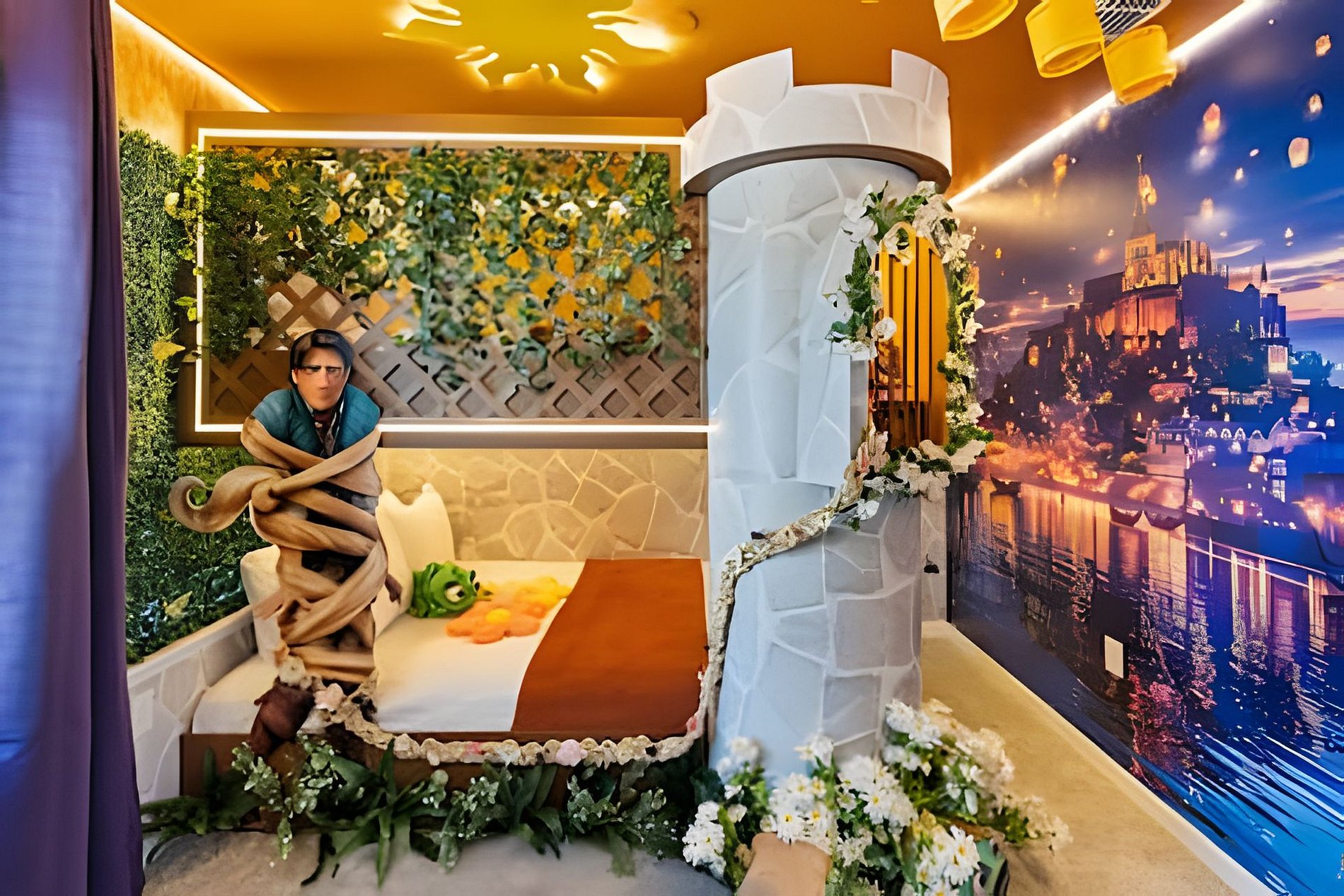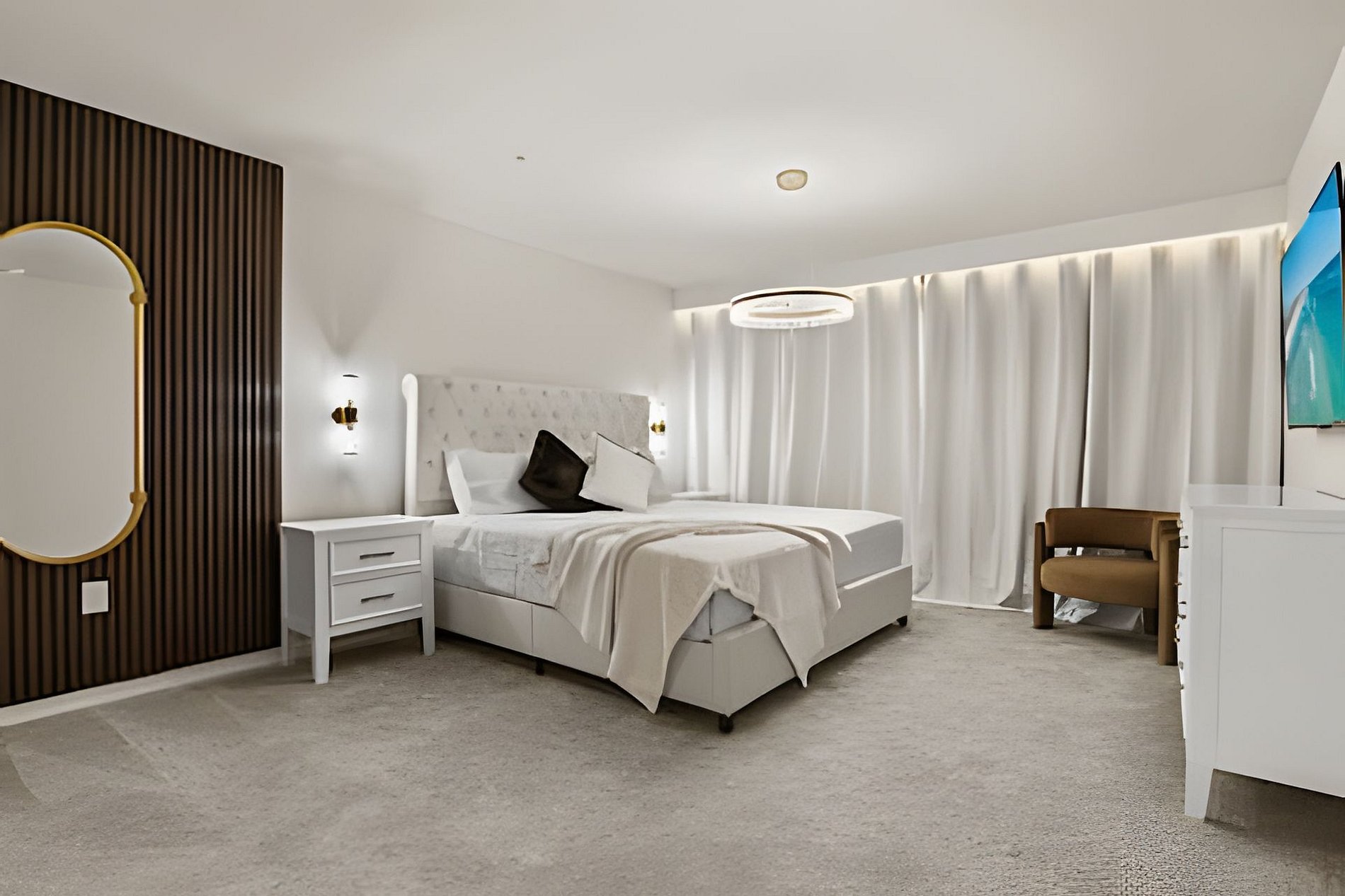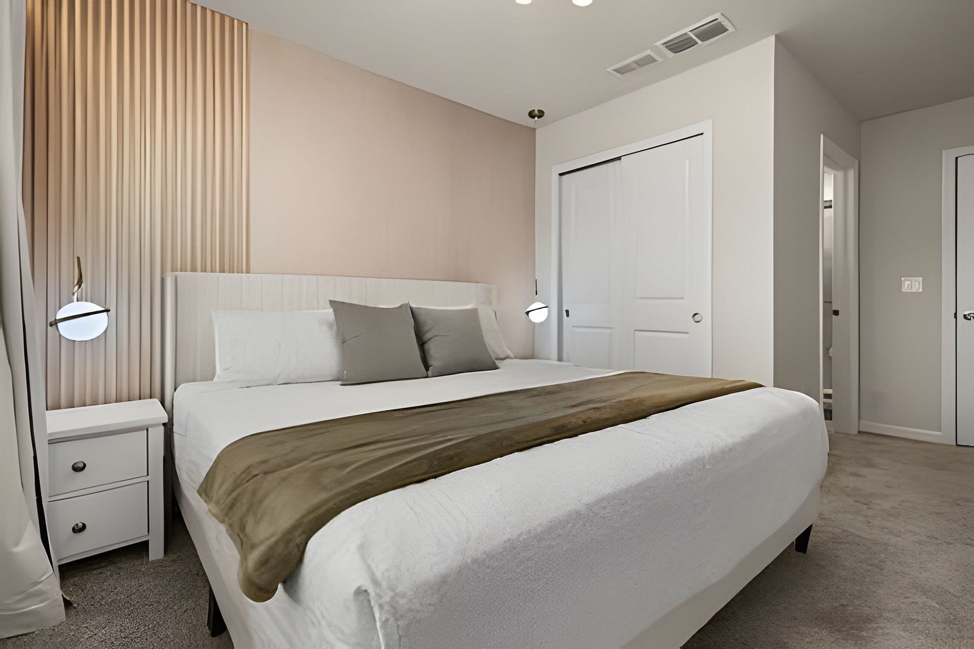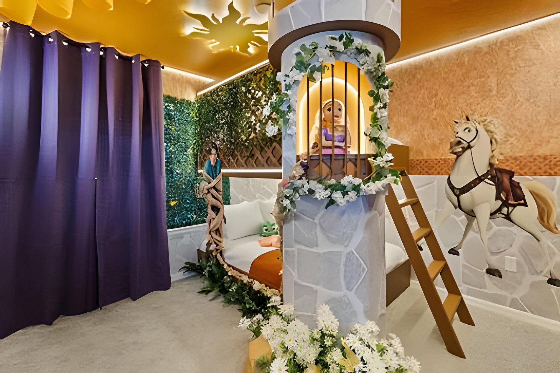 BED CONFIGURATION: 1ST FLOOR Bedroom 1: With Queen Bed; 1 Social bathroom 1 Half bathroom in the outdoor area 2ND FLOOR Bedroom 2: With a King Bed, suite; Bedroom 3: With a King Bed, suite; Bedroom 4: Bunk Bed with two Full Beds, Tangled; Bedroom 5: Bunk Bed with two Full Beds, Mario Bros; 1 Social bathroom THIS HOUSE HAS 02 COMPLETE SUITES. *Central AC *Private Door Code for Each Guest Stay *Fully Equipped Kitchen *Washer & Dryer *Towels & Linens Provided *Washcloths Are Not Provided *Hair Dryers, Iron & Ironing Board *TV in Every Bedroom *Family Room with Flat Screen TV *Free Cable TV & WiFi *Private Screened-in Pool + Child Safety Pool Fence *Outdoor Patio Furniture with Sun Loungers *Pack ’n Play / High Chair (Free Upon Request)