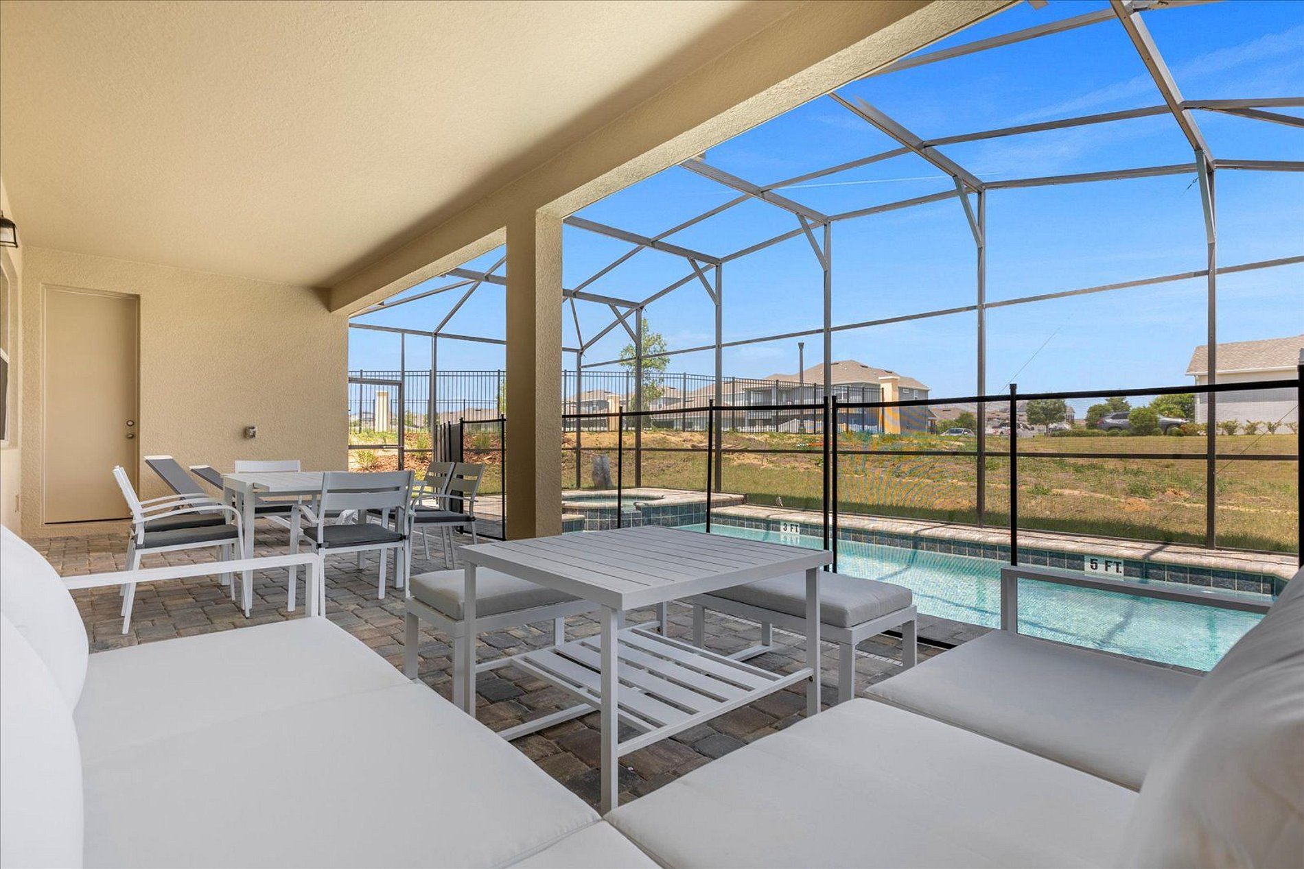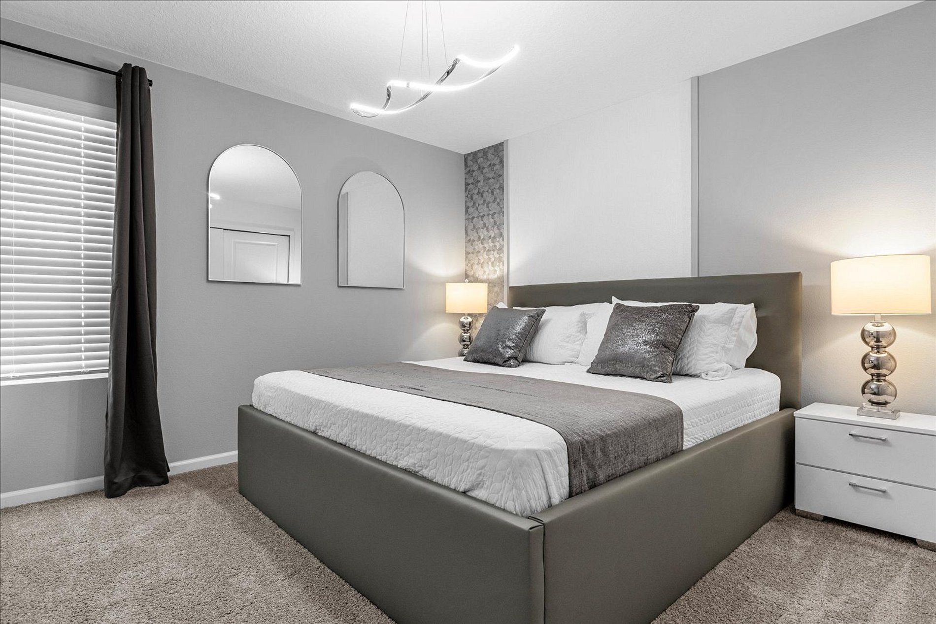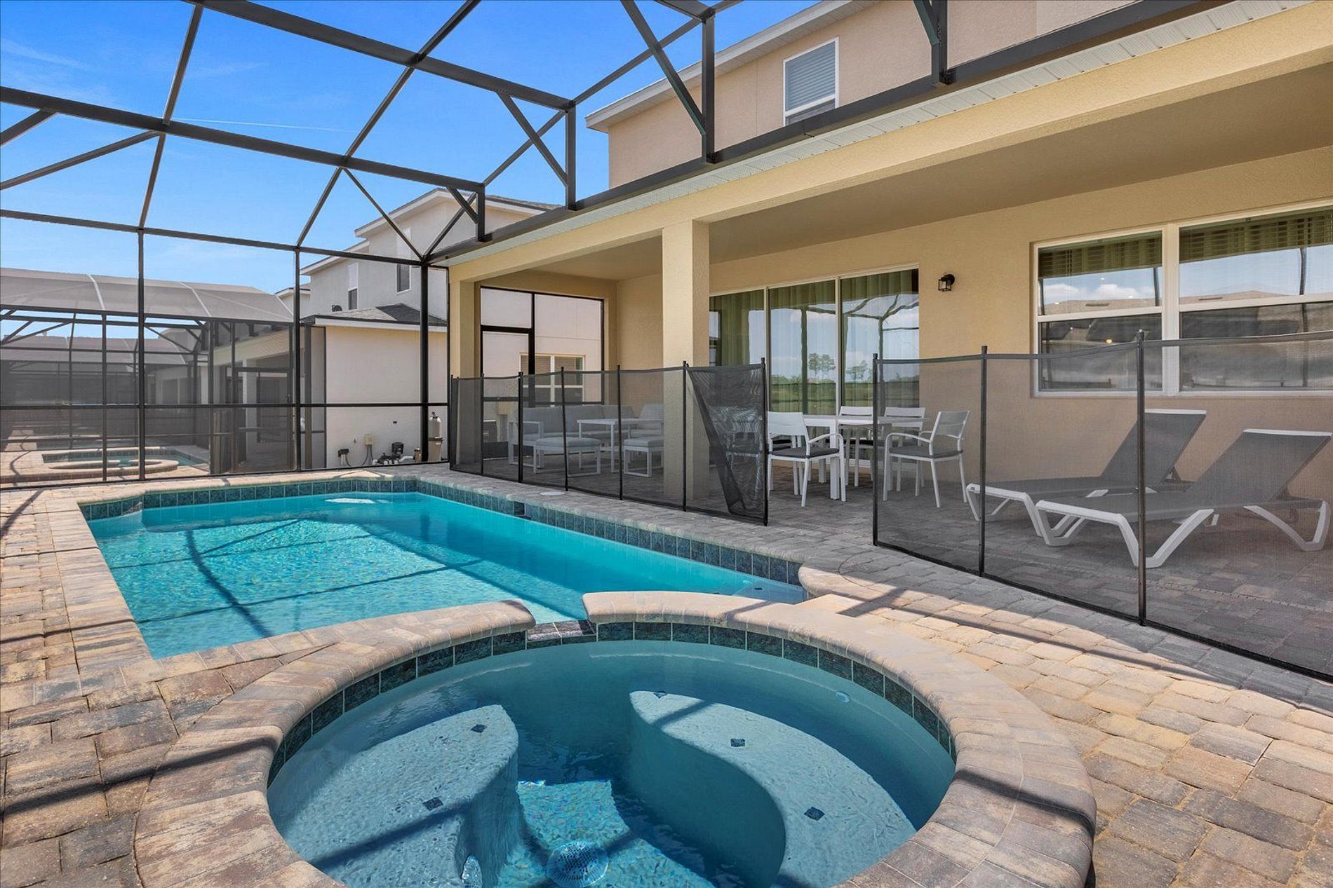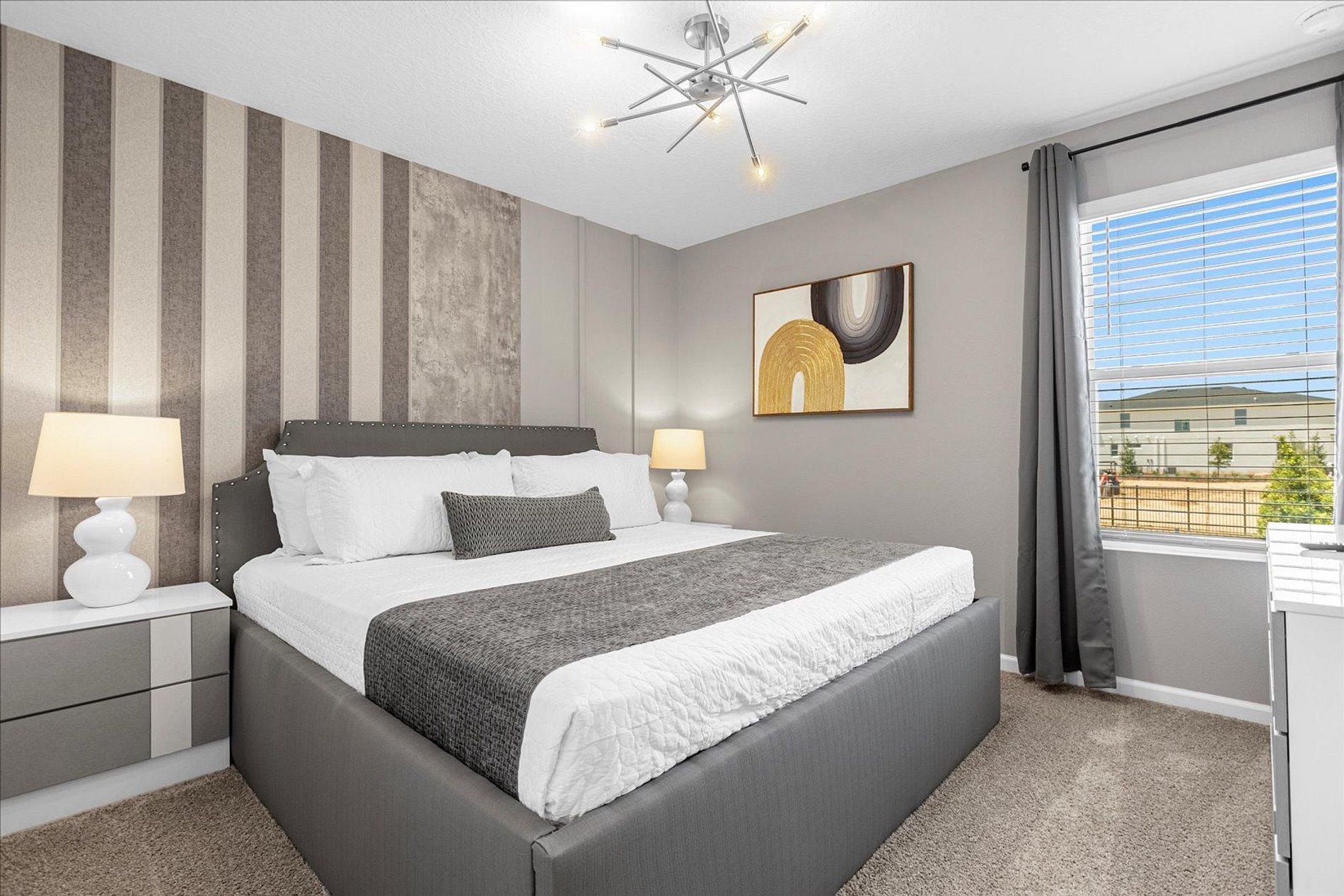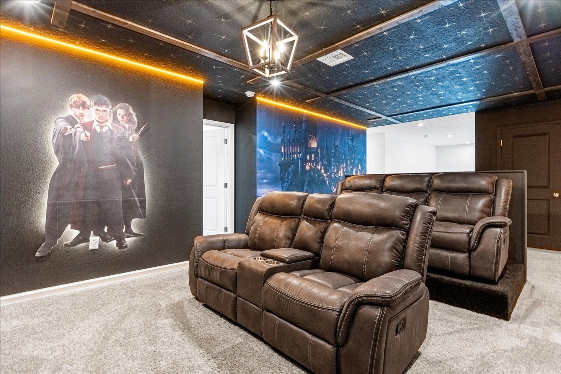 This 9-bedroom house, located in Solara Resort, features 8 themed suites decorated with motifs such as Minions, Toy Story, and Frozen, along with 6 bathrooms, accommodating up to 22 people. Enjoy entertainment with a private cinema, where you can watch movies in style. Challenge your friends and family to a game of table bowling and relax in the private pool while enjoying the Florida sun. With ample lounge space and a refreshing poolside atmosphere, relaxation comes naturally.