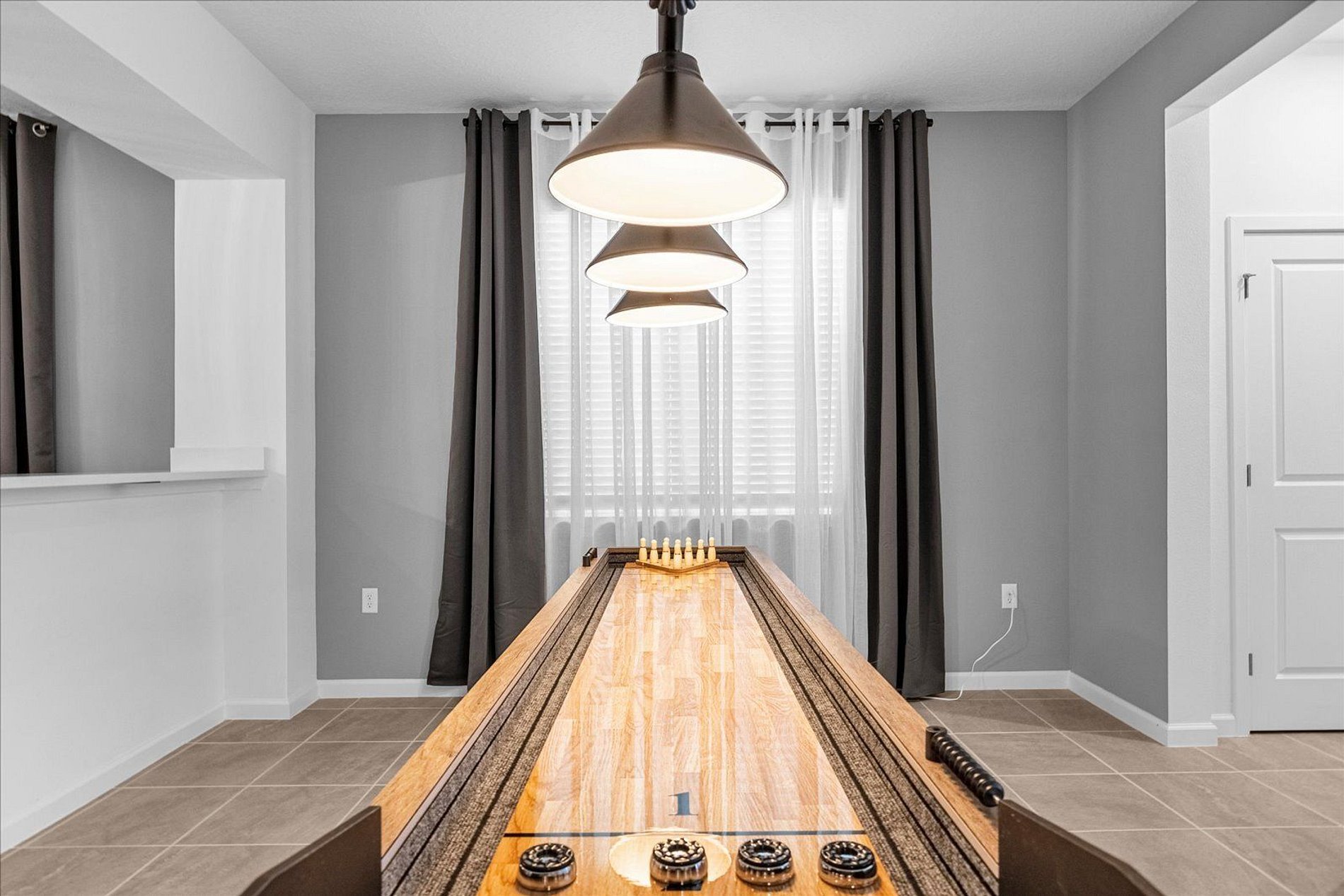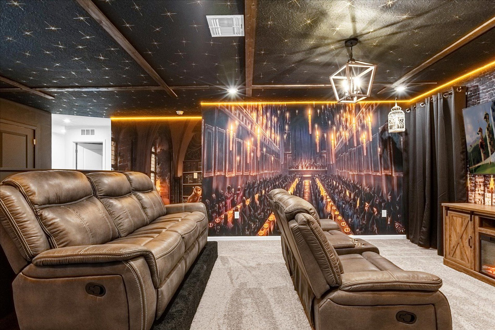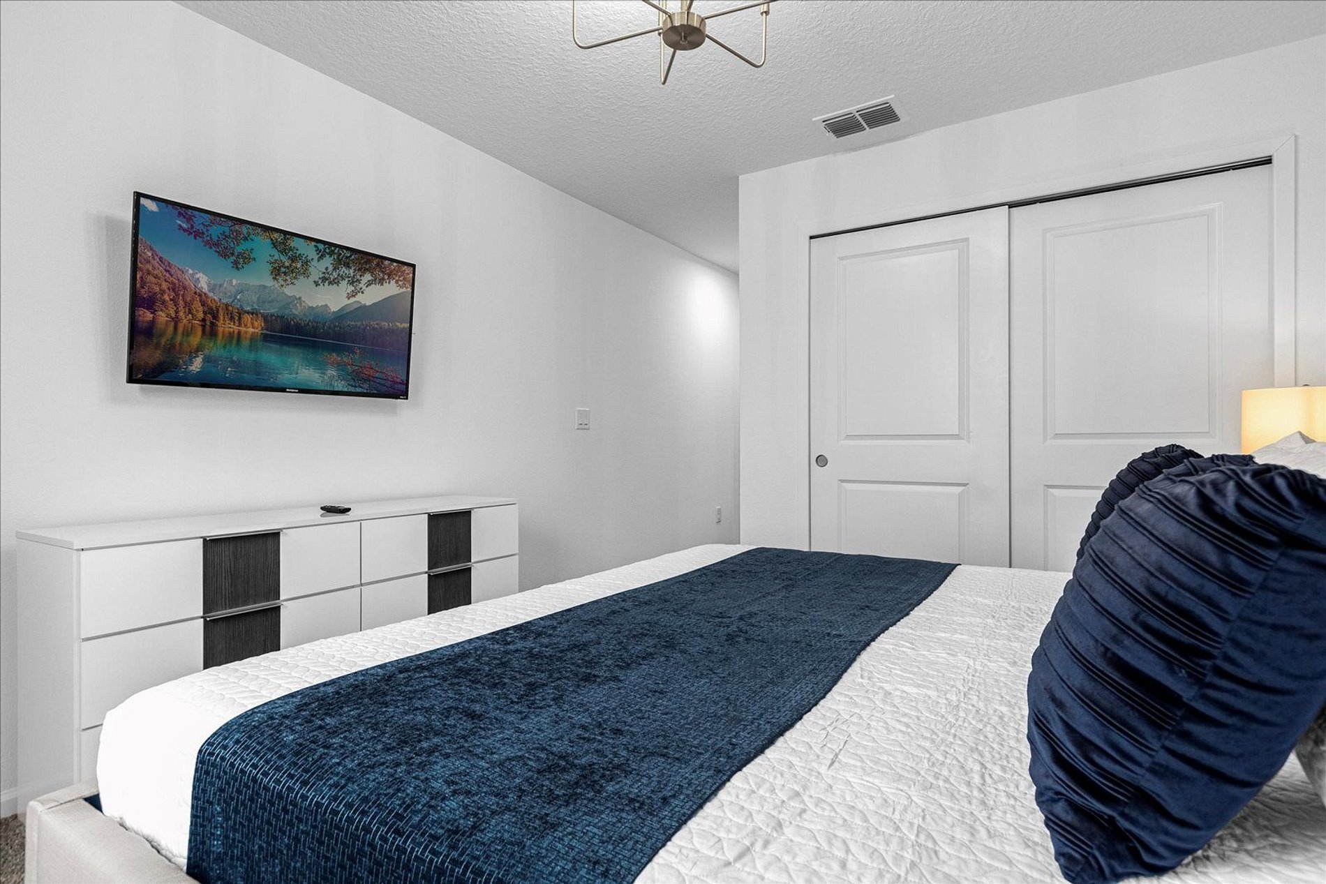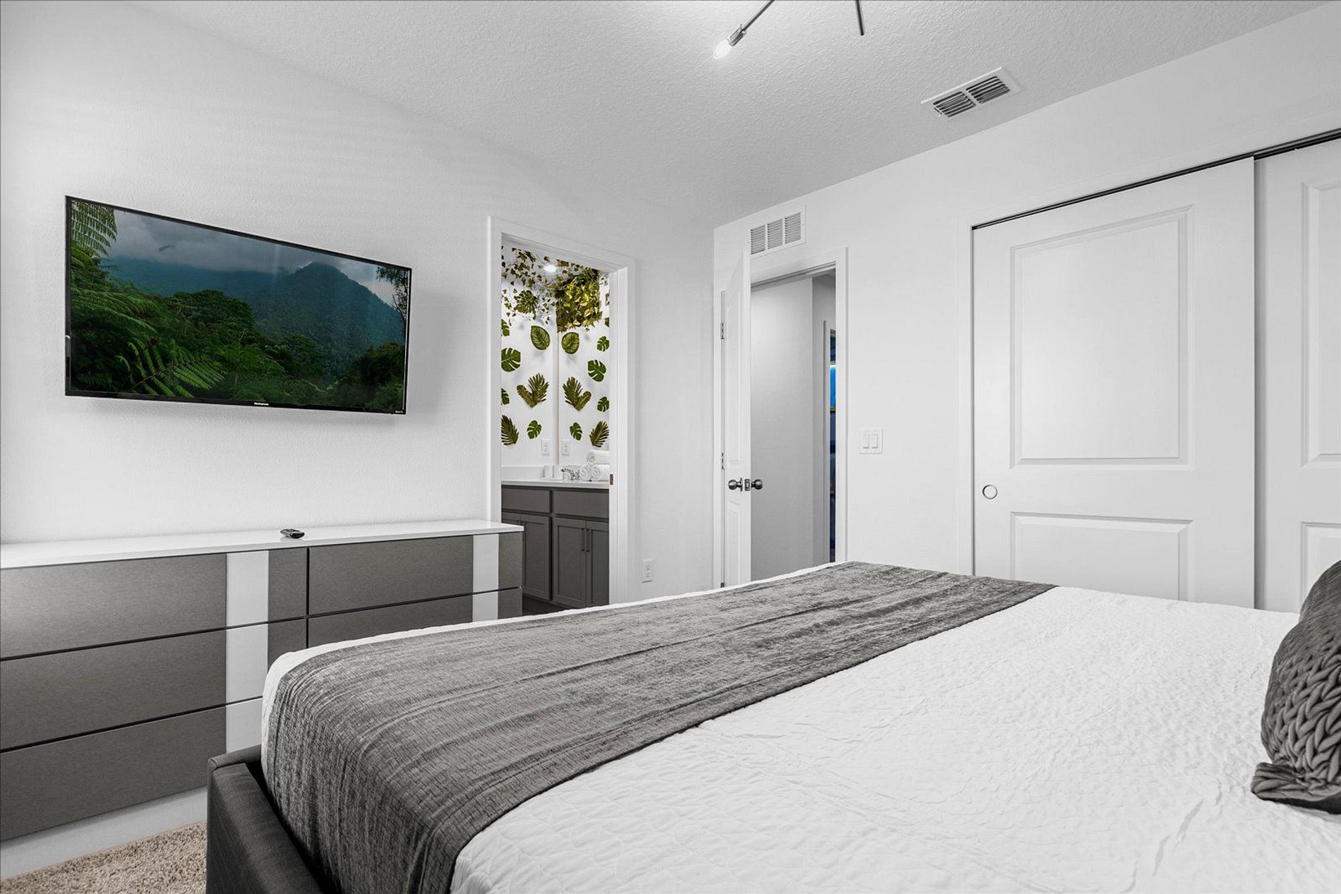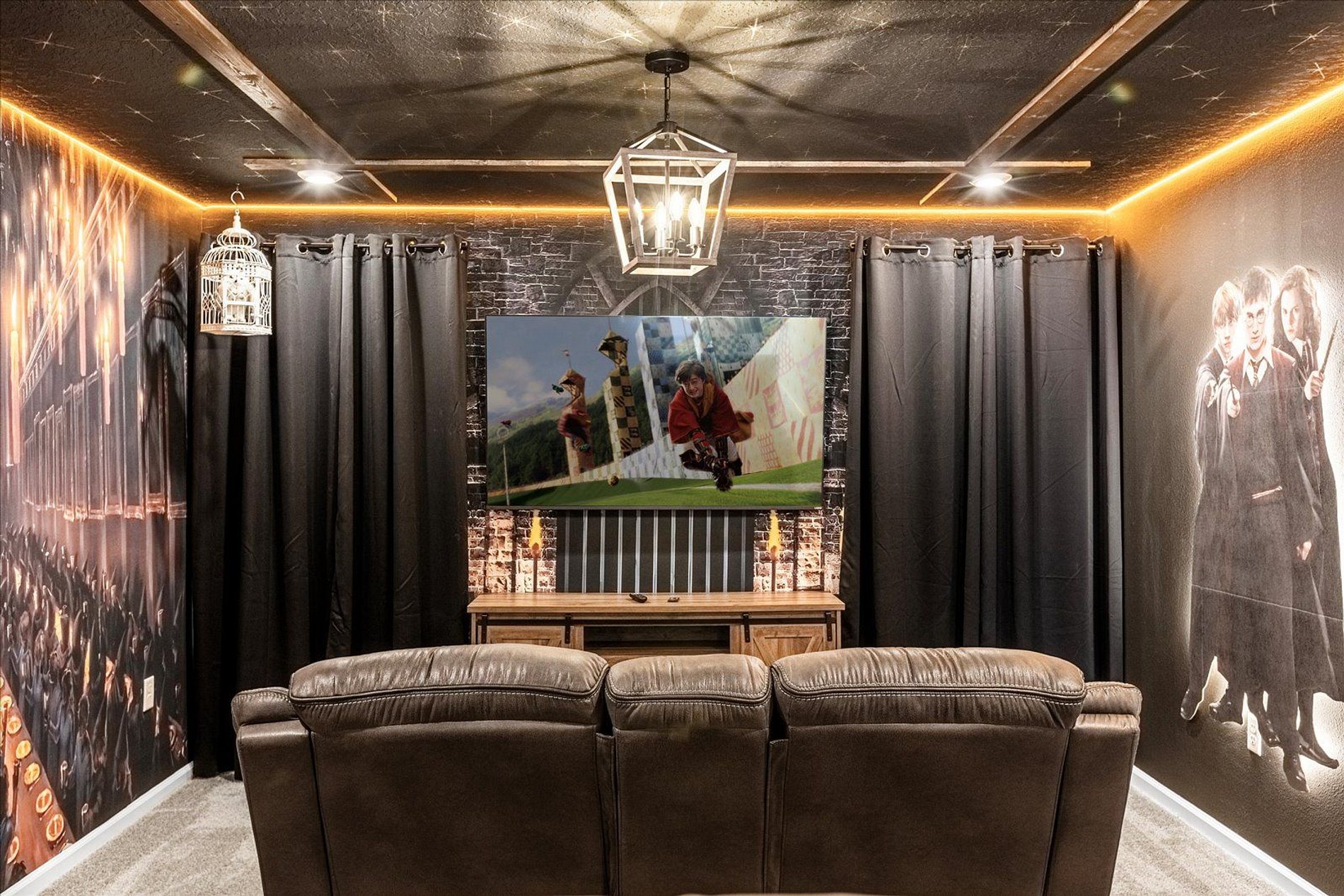 This 9-bedroom house, located in Solara Resort, features 8 themed suites decorated with motifs such as Minions, Toy Story, and Frozen, along with 6 bathrooms, accommodating up to 22 people. Enjoy entertainment with a private cinema, where you can watch movies in style. Challenge your friends and family to a game of table bowling and relax in the private pool while enjoying the Florida sun. With ample lounge space and a refreshing poolside atmosphere, relaxation comes naturally.
