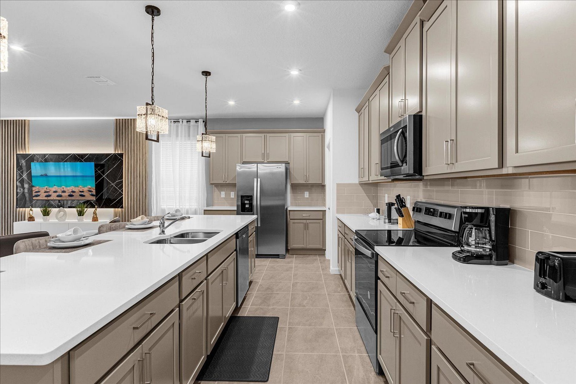 SOLARA RESORT: Vacation homes at Solara are elegant on the outside and well-appointed on the inside, approximately 8 miles from Disney Parks and a short drive to Universal, Disney Springs and many local beaches, this resort-style gated community is located in the center of everything! An extensive amenities complex will be the heart of Solara Resort and will include perks to satisfy every member of your family. .Aquatic Park, with a huge swimming pool, playground and slides. • Bar & Grill; • Teen Space; • Sundries Stores; • Ice-cream parlor; • Gym and outdoor fitness area; • External and Internal Lounges: • Desk; • Visitor parking. Have fun on sunny days and challenge your family to a game on the barque court, sand volleyball court or on the soccer field!