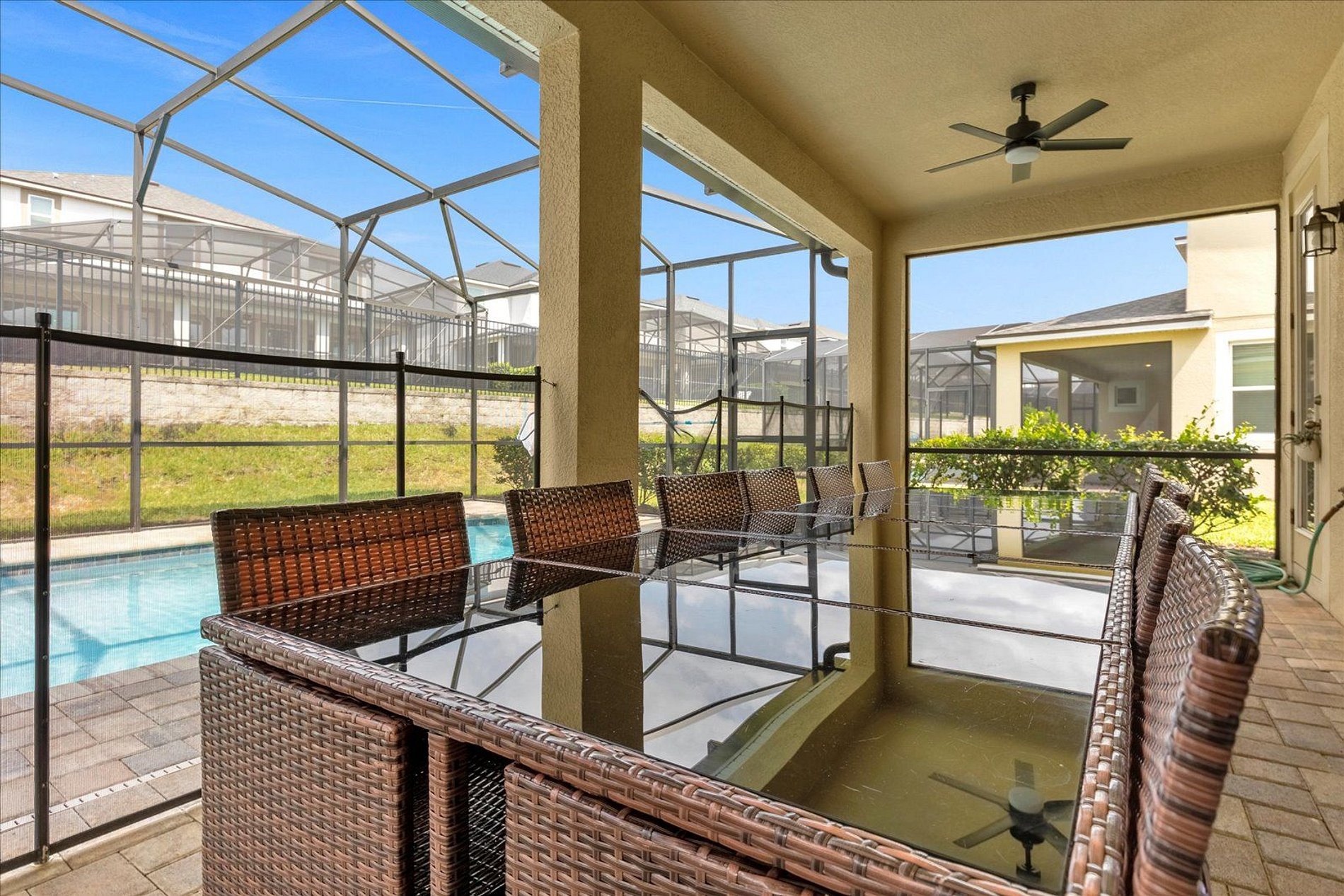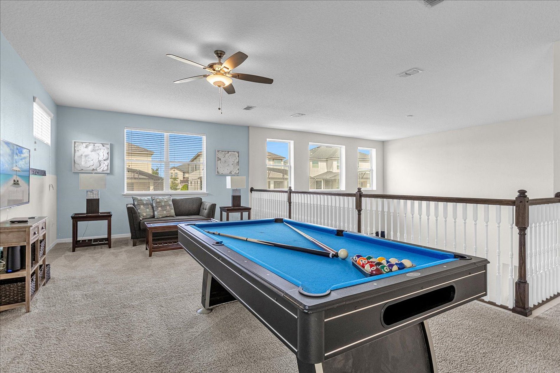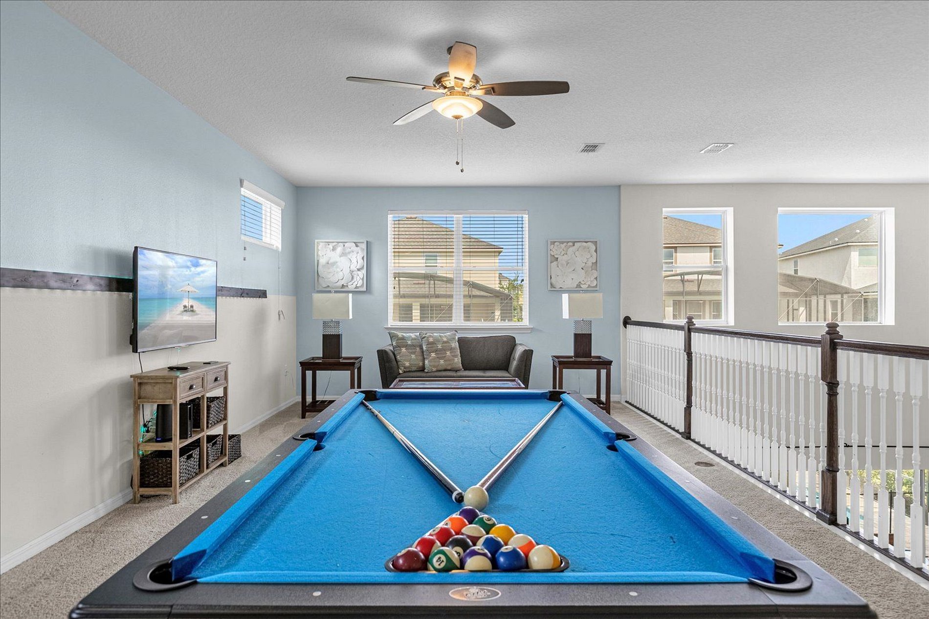This house in Solara Resort offers comfort and entertainment for your stay in sunny Florida. With a total of 6 bedrooms and 5 bathrooms, it ensures convenience and privacy for all guests. The loft is the perfect spot for fun moments, featuring a pool table. Additionally, the private pool provides refreshing and relaxing moments. Being in Solara Resort, this house grants access to a variety of amenities. Get ready for an unforgettable stay in this refuge of comfort and entertainment.