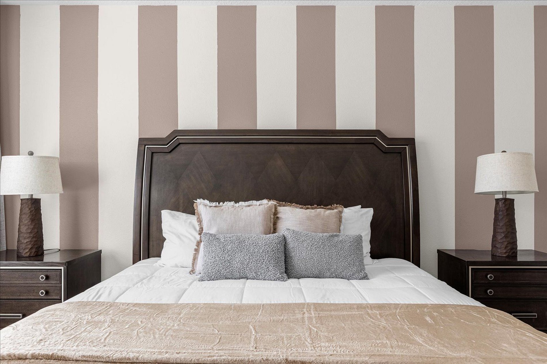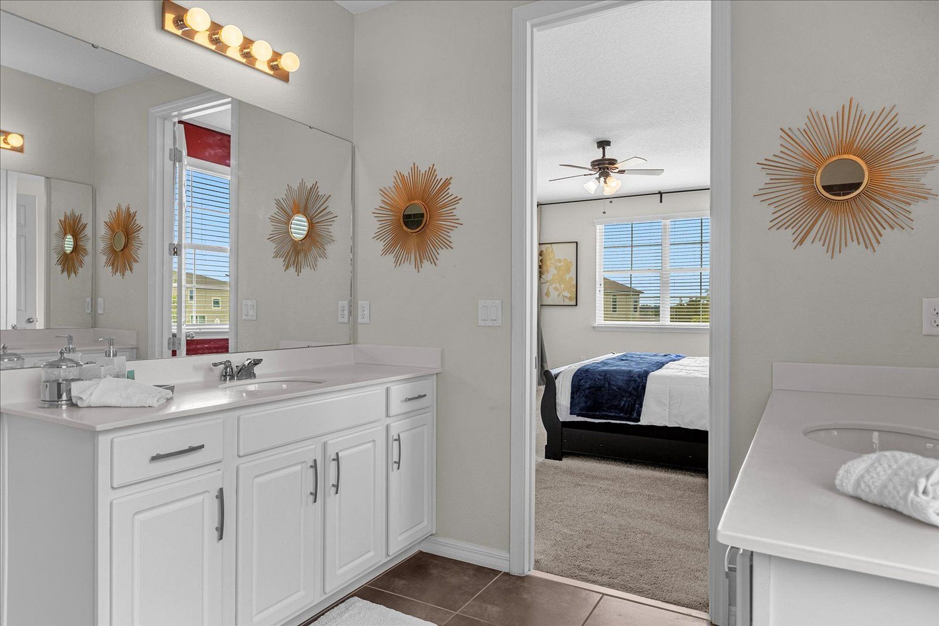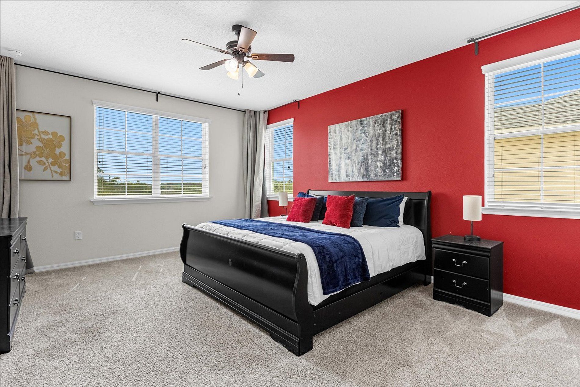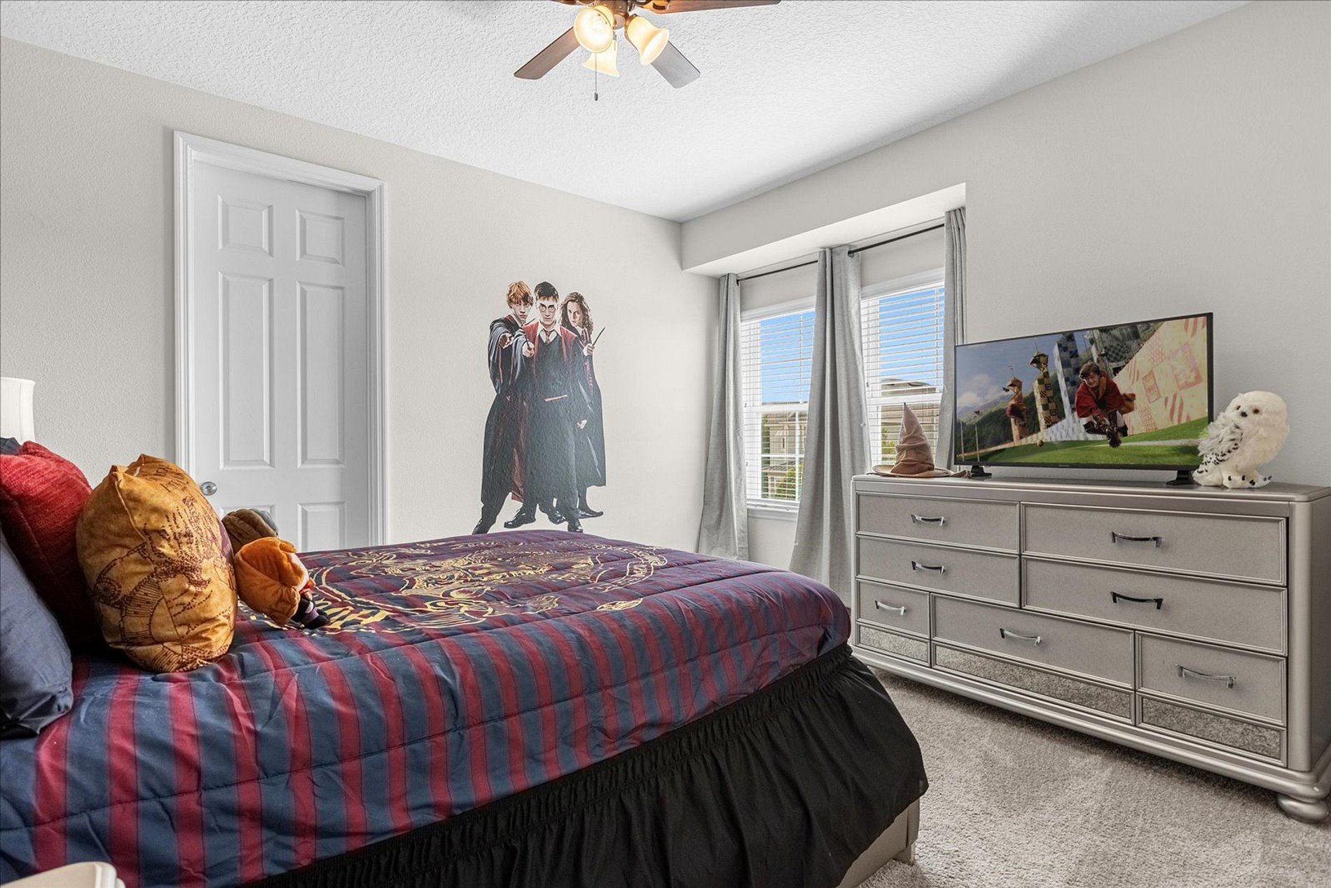 1º 1 Bedroom with 2 beds, 1 twin and 1 full, Minions theme; 1 Bedroom with a Queen bed, Suite; 2º 1 Bedroom with a King bed, Suite; 1 Bedroom with 2 single beds, Princesses theme - Shared Suite; 1 Bedroom with 1 Full bed, Shared Suite; 1 Bedroom with 2 beds, 1 twin and 1 full, Cars theme. THIS HOUSE OFFERS 2 COMPLETE SUITES AND 2 SHARED ONES.