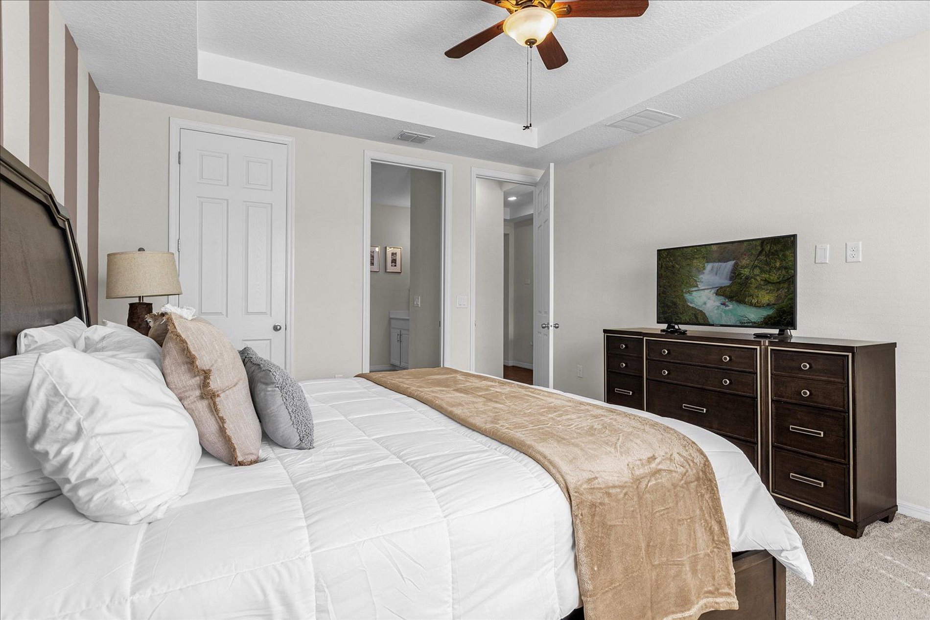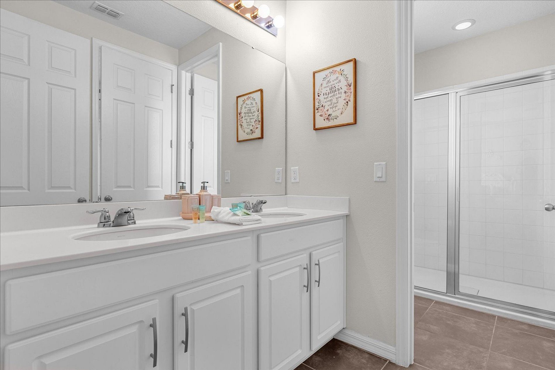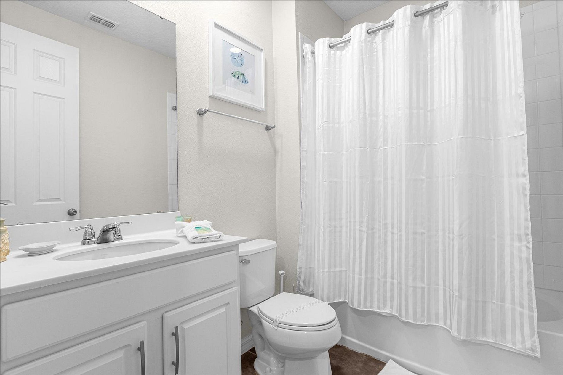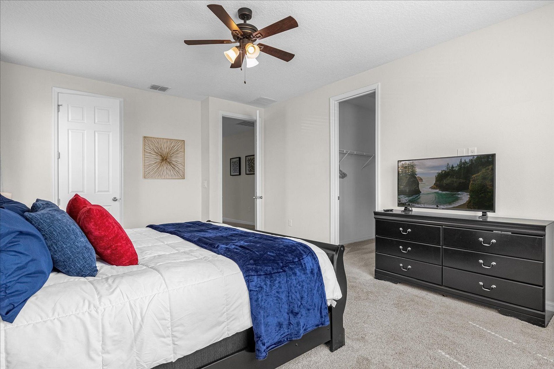 1º 1 Bedroom with 2 beds, 1 twin and 1 full, Minions theme; 1 Bedroom with a Queen bed, Suite; 2º 1 Bedroom with a King bed, Suite; 1 Bedroom with 2 single beds, Princesses theme - Shared Suite; 1 Bedroom with 1 Full bed, Shared Suite; 1 Bedroom with 2 beds, 1 twin and 1 full, Cars theme. THIS HOUSE OFFERS 2 COMPLETE SUITES AND 2 SHARED ONES.
