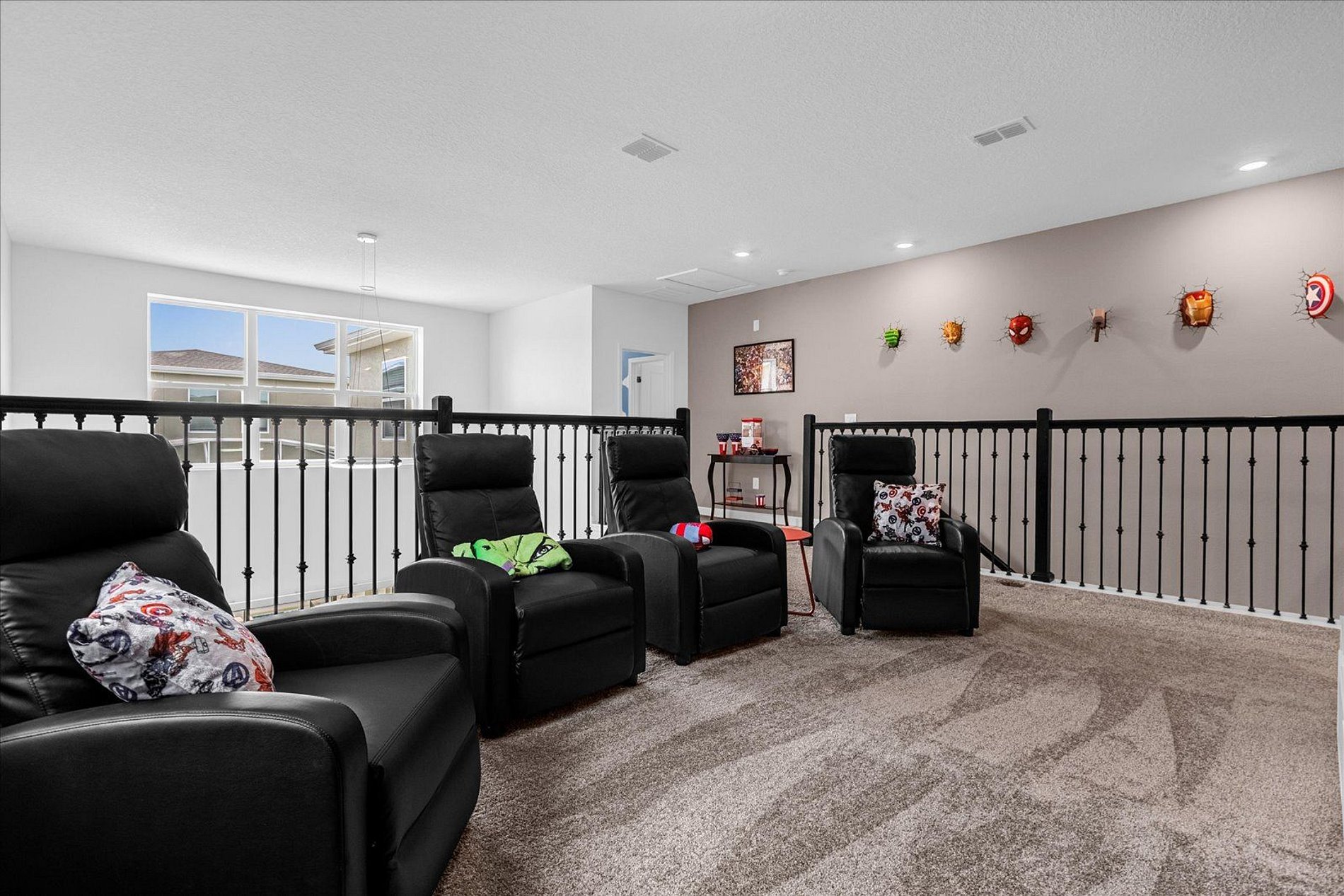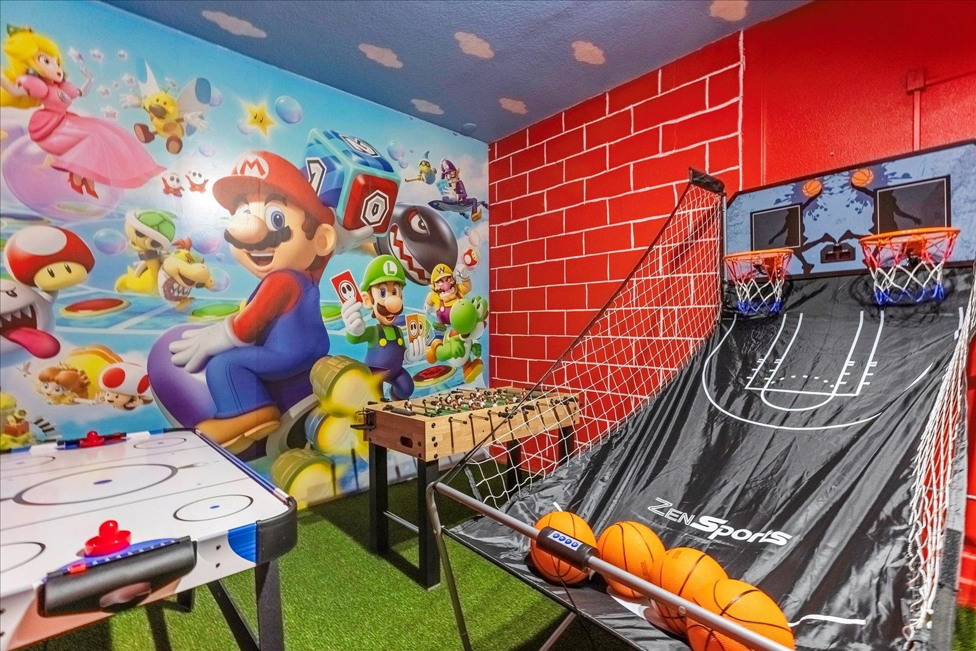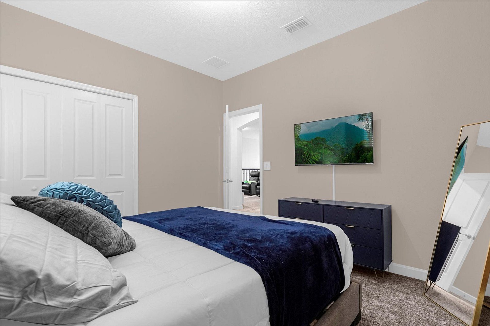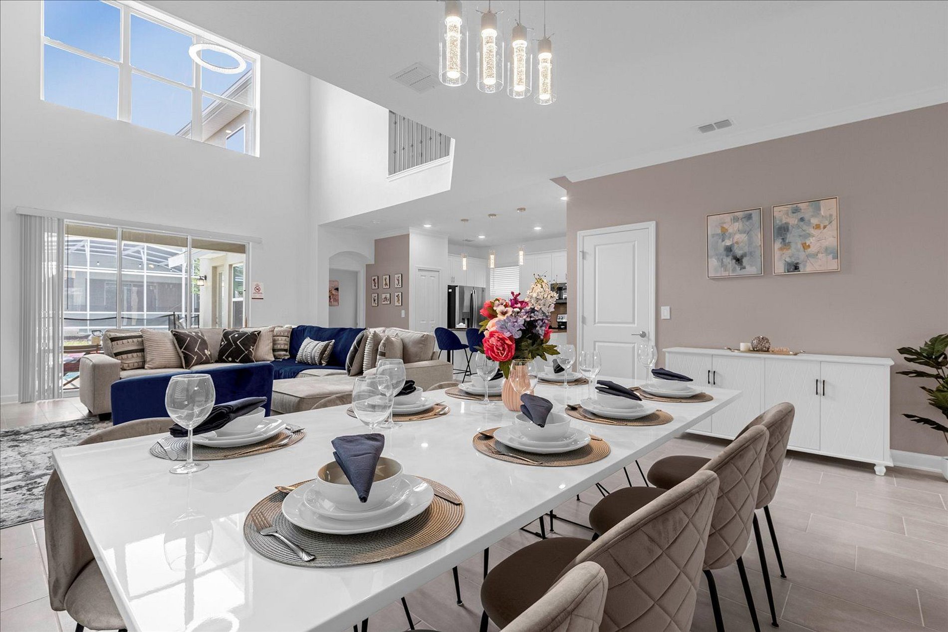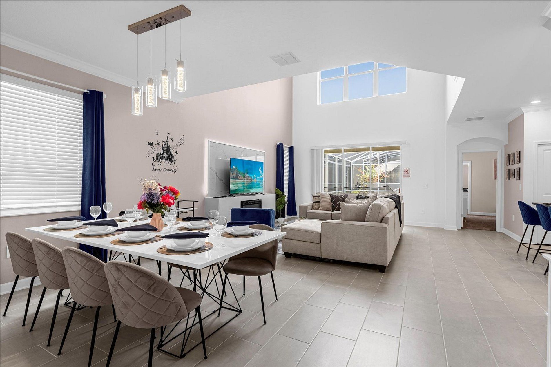 Welcome to our holiday home at Champions Gate Resort Ideal for families and groups this 5 bedroom home is perfect for a staycation, accommodating 17 people including 2 suites and themed rooms such as Toy Story, Harry Potter and Mickey Mouse The home has a private house Swimming pool, Loft with Cinema, Fully Equipped Kitchen and Comfortable Living Room The resort offers golf courses, clubhouse with restaurant, swimming pools and gym.