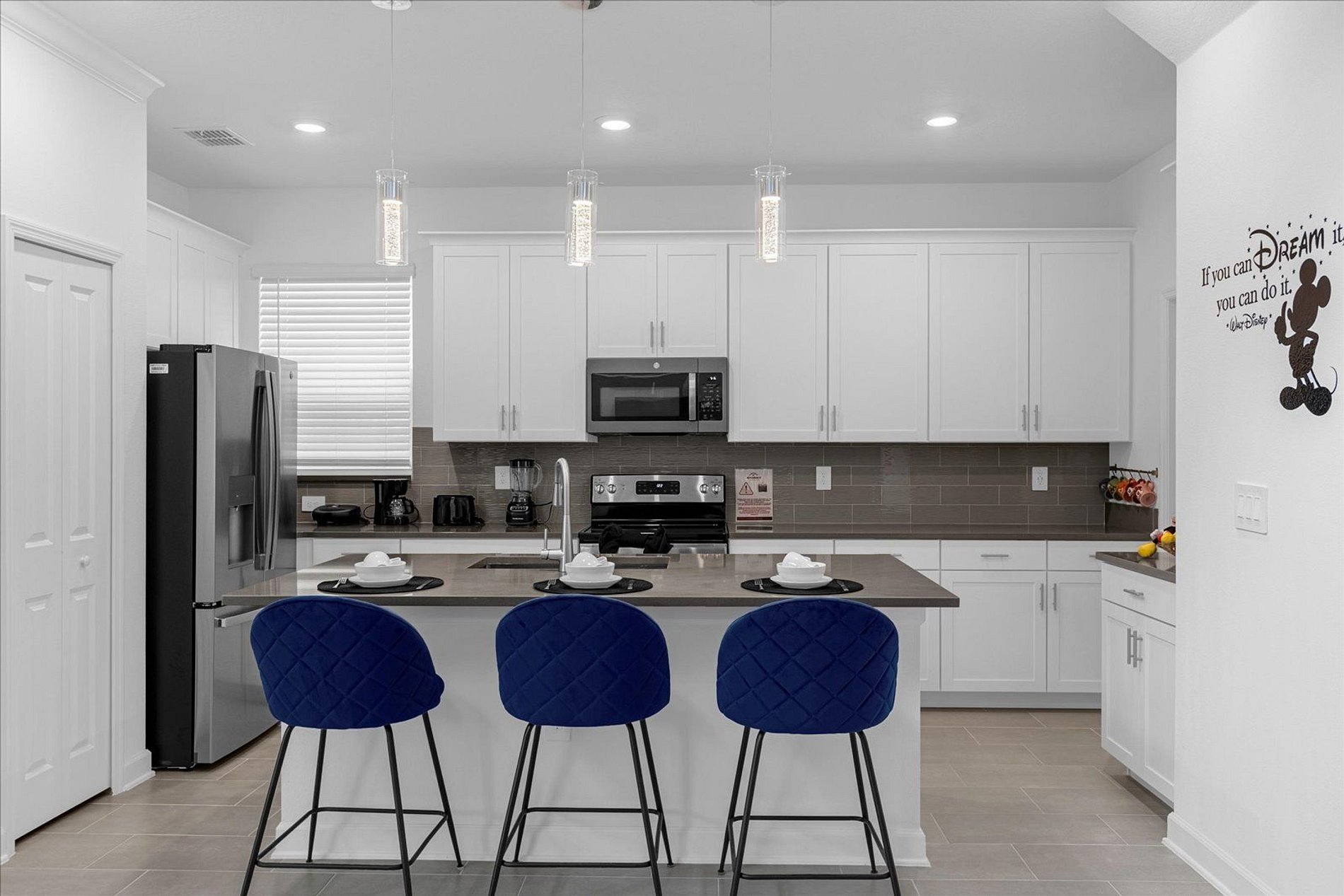 17 minutes from Disney, this Mediterranean-inspired condo is located on the world-famous Champions Gate Golf Course! Amenities include swimming pool, hot tub, cinema, fitness center, barbecue area, tavern bar, spa services, restaurants etc.