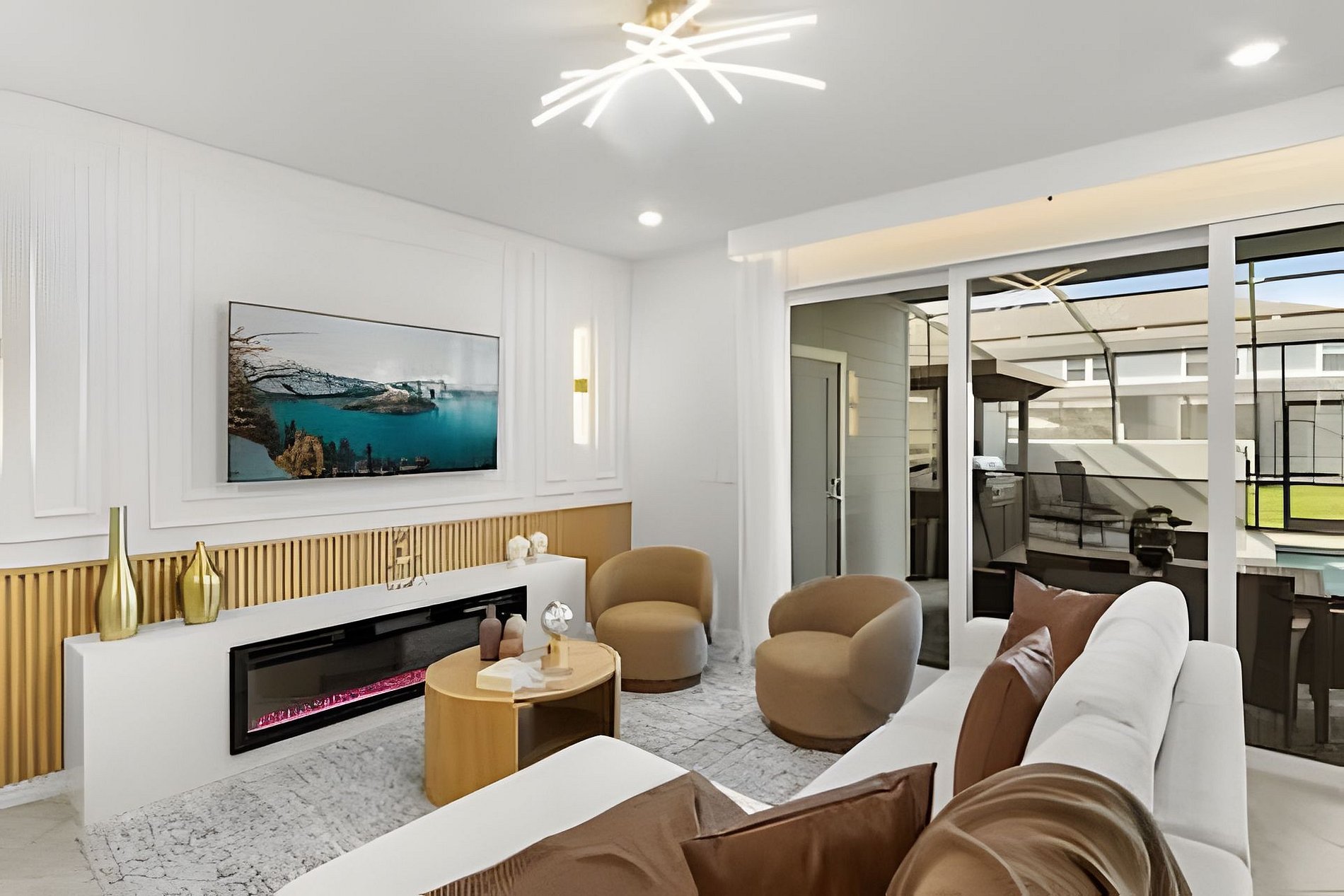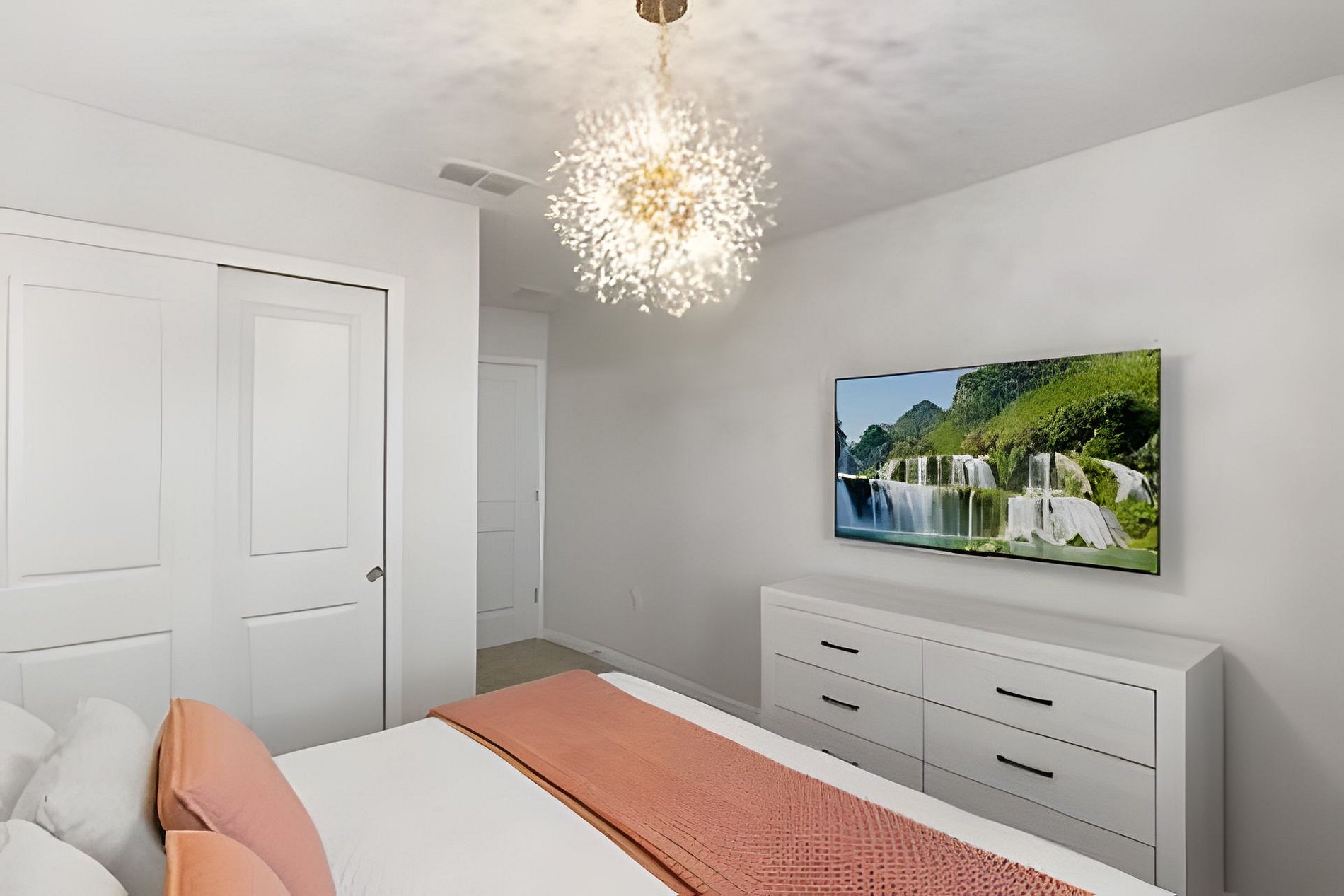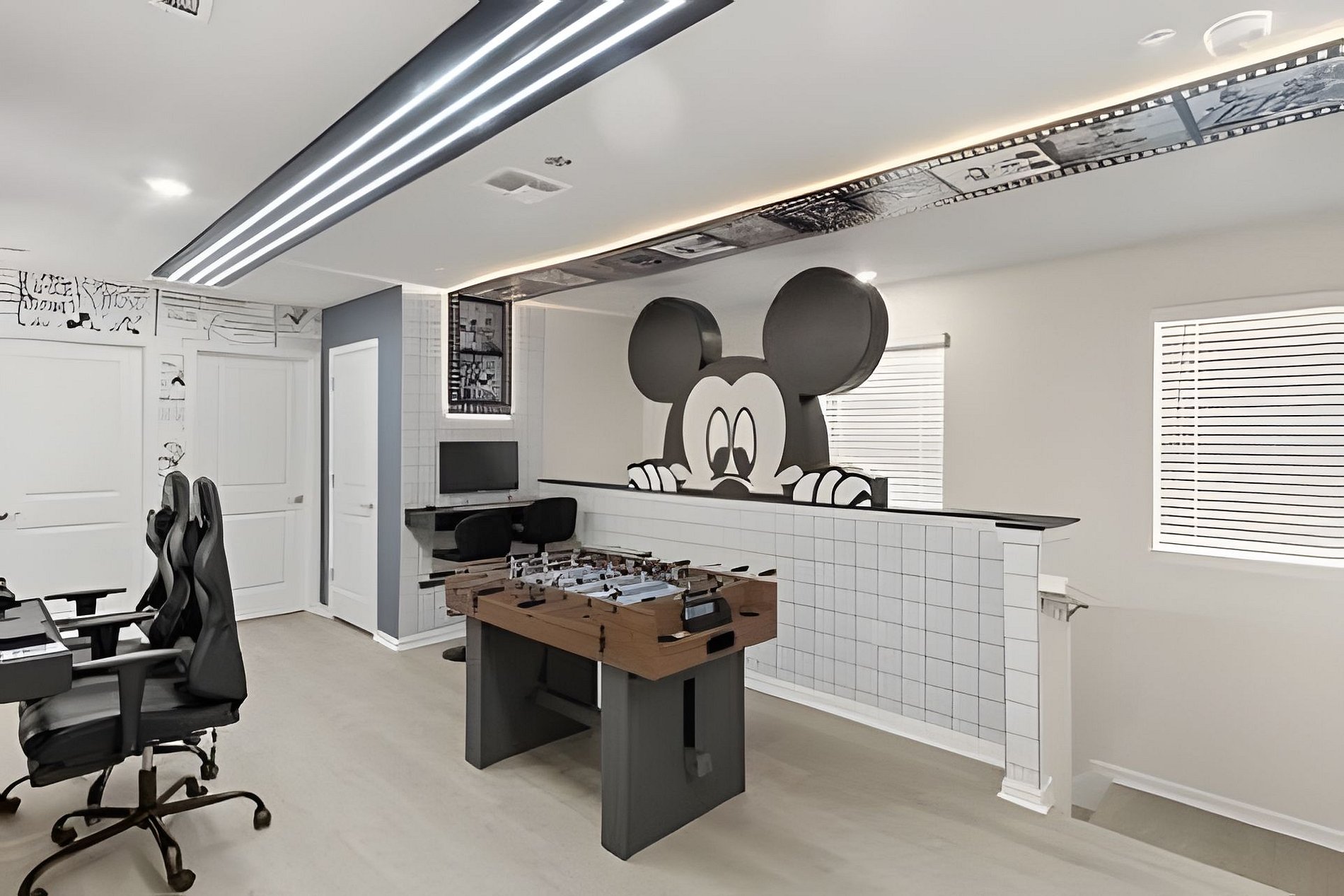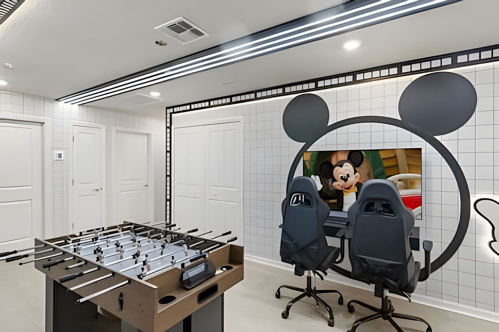 BED CONFIGURATION: 1st Floor Bedroom 1: 1 King bed 1 Social bathroom 1 Half bathroom in the outdoor area 2nd Floor Bedroom 2: 1 King bed, en-suite Bedroom 3: 1 King bed, en-suite Bedroom 4: 1 Bunk bed with 2 Full beds (Barbie theme) Bedroom 5: 1 Bunk bed with 2 Full beds (Avengers theme) 1 Social bathroom This home features 2 full en-suites. *Central AC *Private Door Code for Each Guest Stay *Fully Equipped Kitchen *Washer & Dryer *Towels, Washcloths, Linens Provided *Hair Dryers, Iron & Ironing Board *TV in Every Bedroom *Family Room with Flat Screen TV *Free Cable TV & WiFi *Private Screened-in Pool + Child Safety Pool Fence *Outdoor Patio Furniture with Sun Loungers *Pack ’n Play / High Chair (Free Upon Request)
