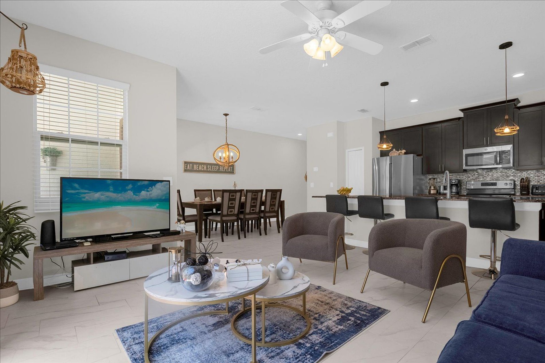 The house accommodates 11 people, has a private pool, and is located in one of the best areas in the region. This beautiful 4-bedroom, 3-bathroom house is located in the prestigious Storey Lake community, offering the perfect combination of comfort and convenience. The residence is ideal for families or groups seeking a memorable stay in the Orlando area.