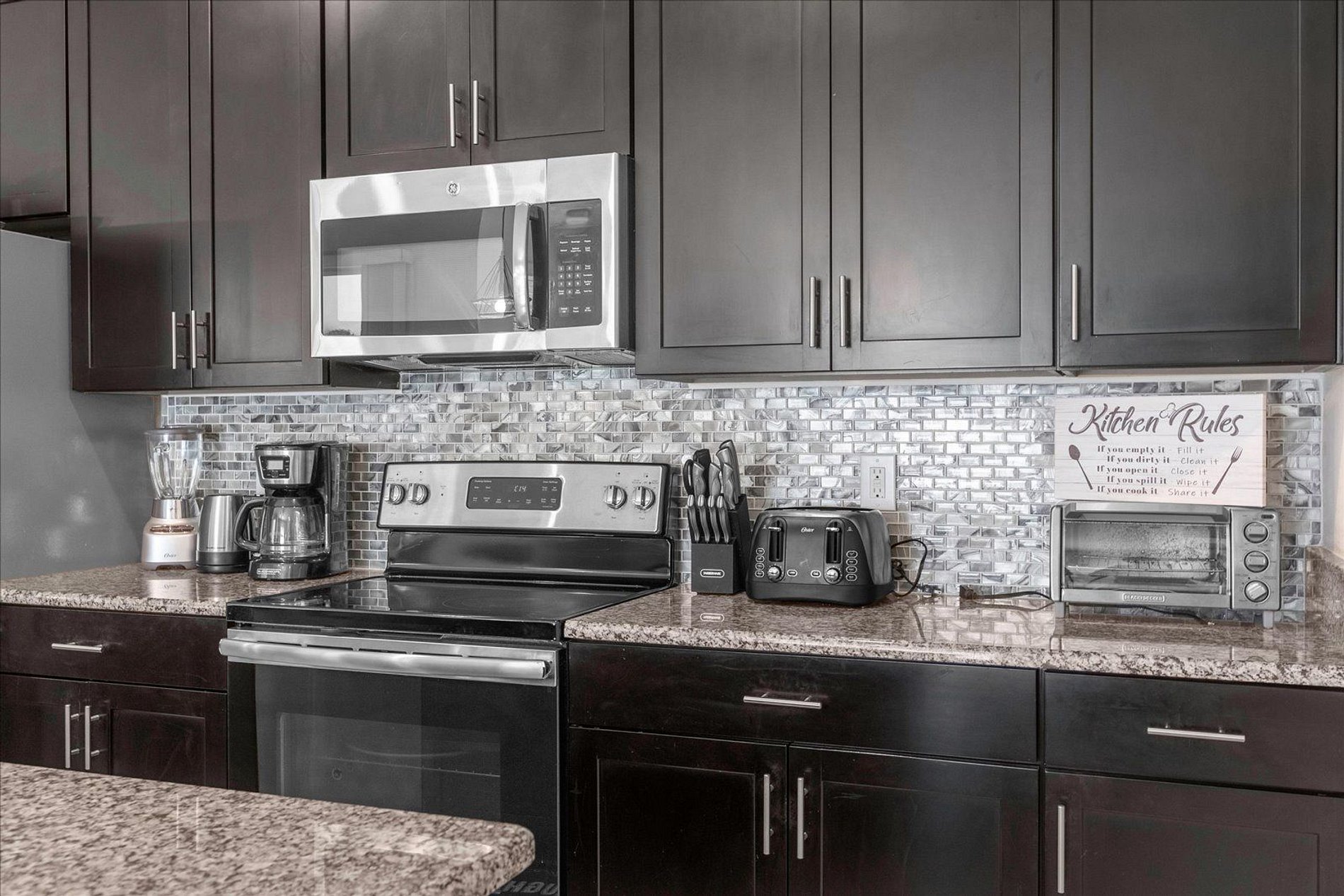 1 ° FLOOR Bedroom 1: King Bed; 1 full bathroom; 2ND FLOOR Bedroom 2: With two queen beds. Suite; Bedroom 3: Queen Bed; Bedroom 4: With 1 bunk bed, 3 twin beds. The house has 1 suite.