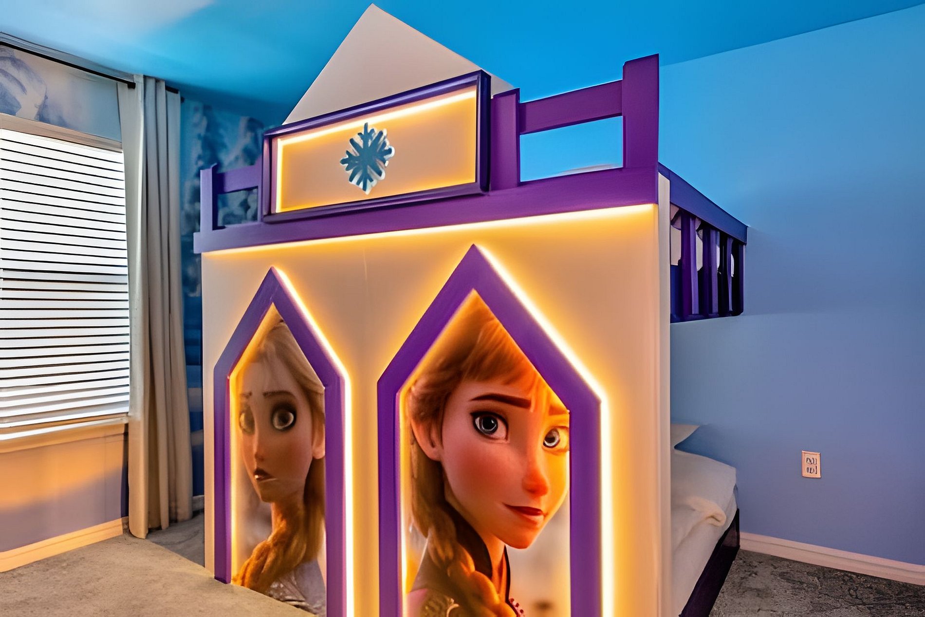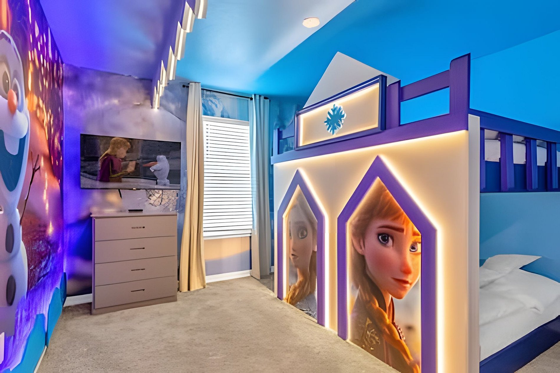 Explore our new 8-bedroom home at Windsor Cay Resort, perfect for families and large groups, accommodating up to 26 people. Featuring themed bedrooms inspired by Frozen and Harry Potter, it offers a magical experience for all ages. Relax in the private pool and enjoy the game room with an Avatar-themed bedroom with plenty of entertainment options. Located just minutes from Disney Parks, you’ll have comfort and fun guaranteed for an unforgettable Orlando vacation.
