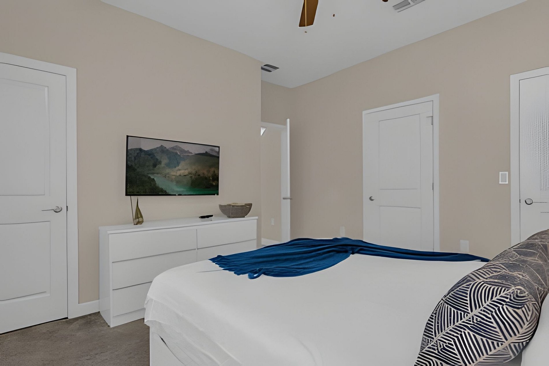 1ST FLOOR Bedroom 1: Queen bed; 1 full bathroom; 2ND FLOOR Bedroom 2: With two Twin beds, Mickey; Bedroom 3: King bed, suite; Bedroom 4: With two Twin beds, Toy Story; The house has 1 suite.