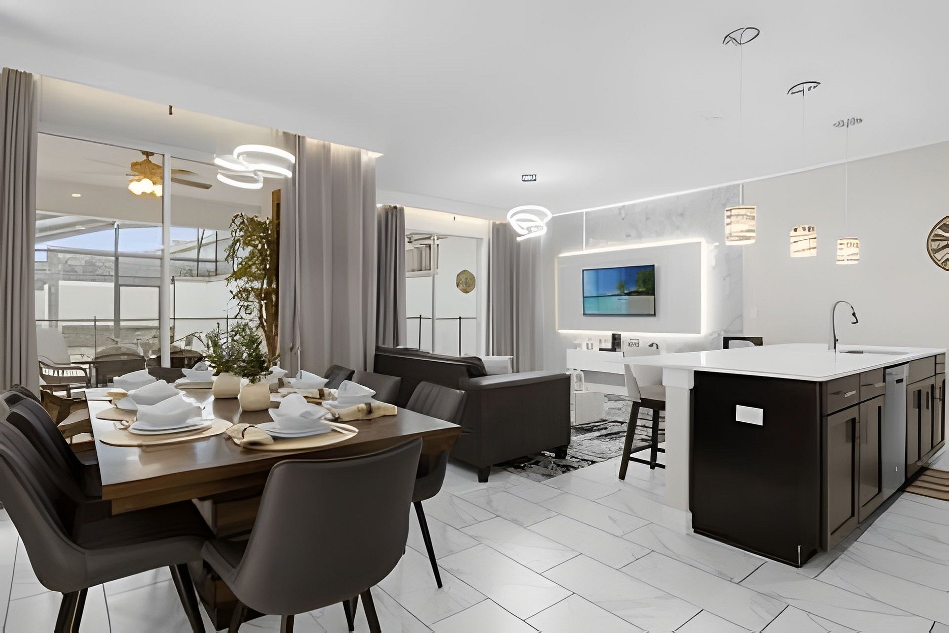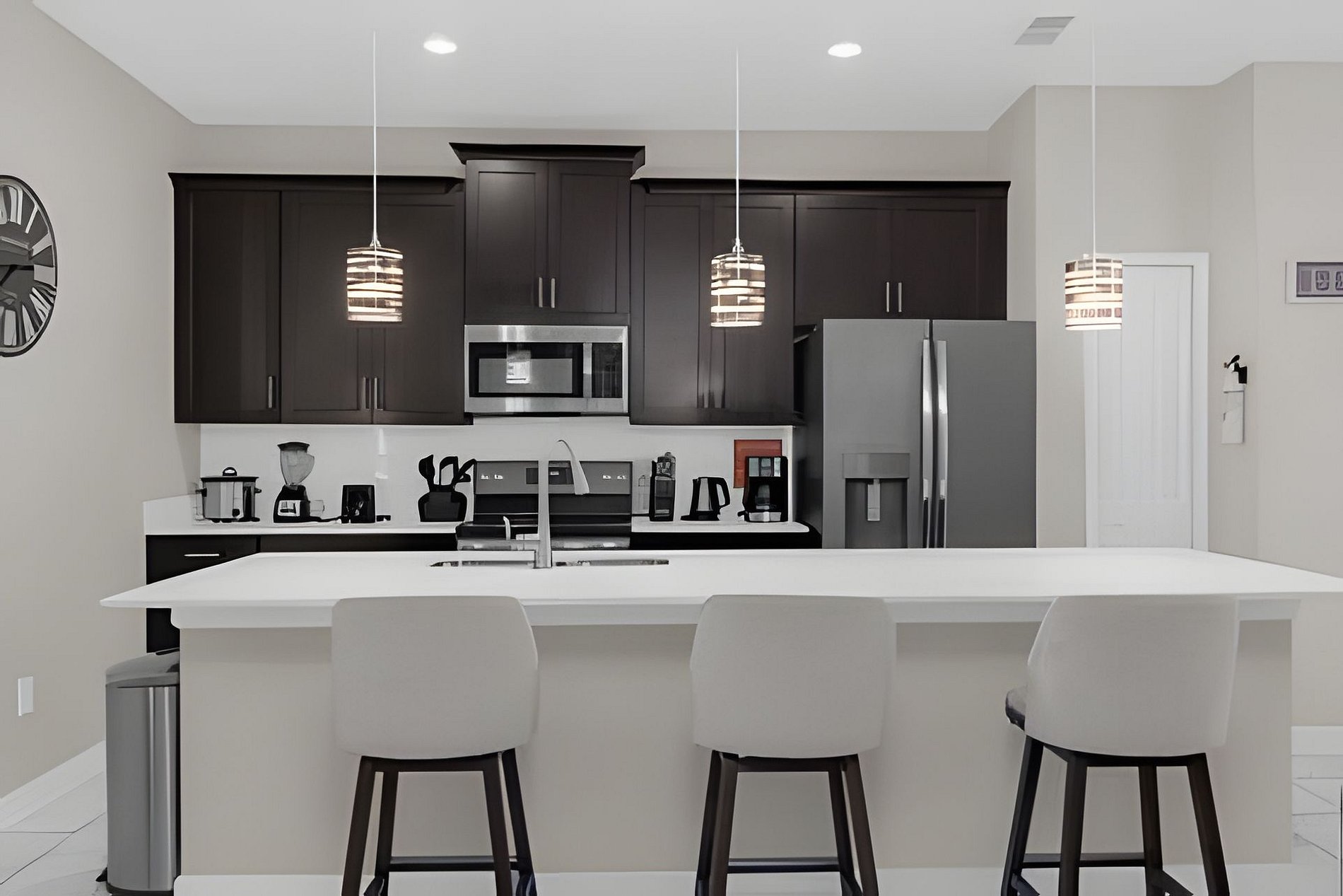 The house offers four bedrooms - two fun themed rooms for the kids -, three bathrooms, fully equipped kitchen, private pool and family living room. Your family will be close to all attractions during your stay in this well-located home: restaurants, shops, theme parks and outlets. The perfect location for those looking for space and comfort while visiting the beautiful Orlando region. Mario Bross and Mickey Mouse themed room.