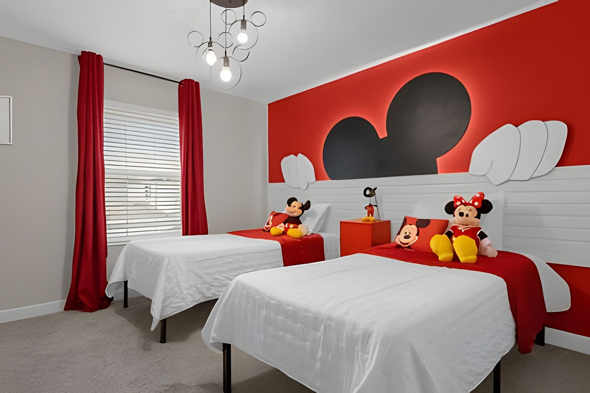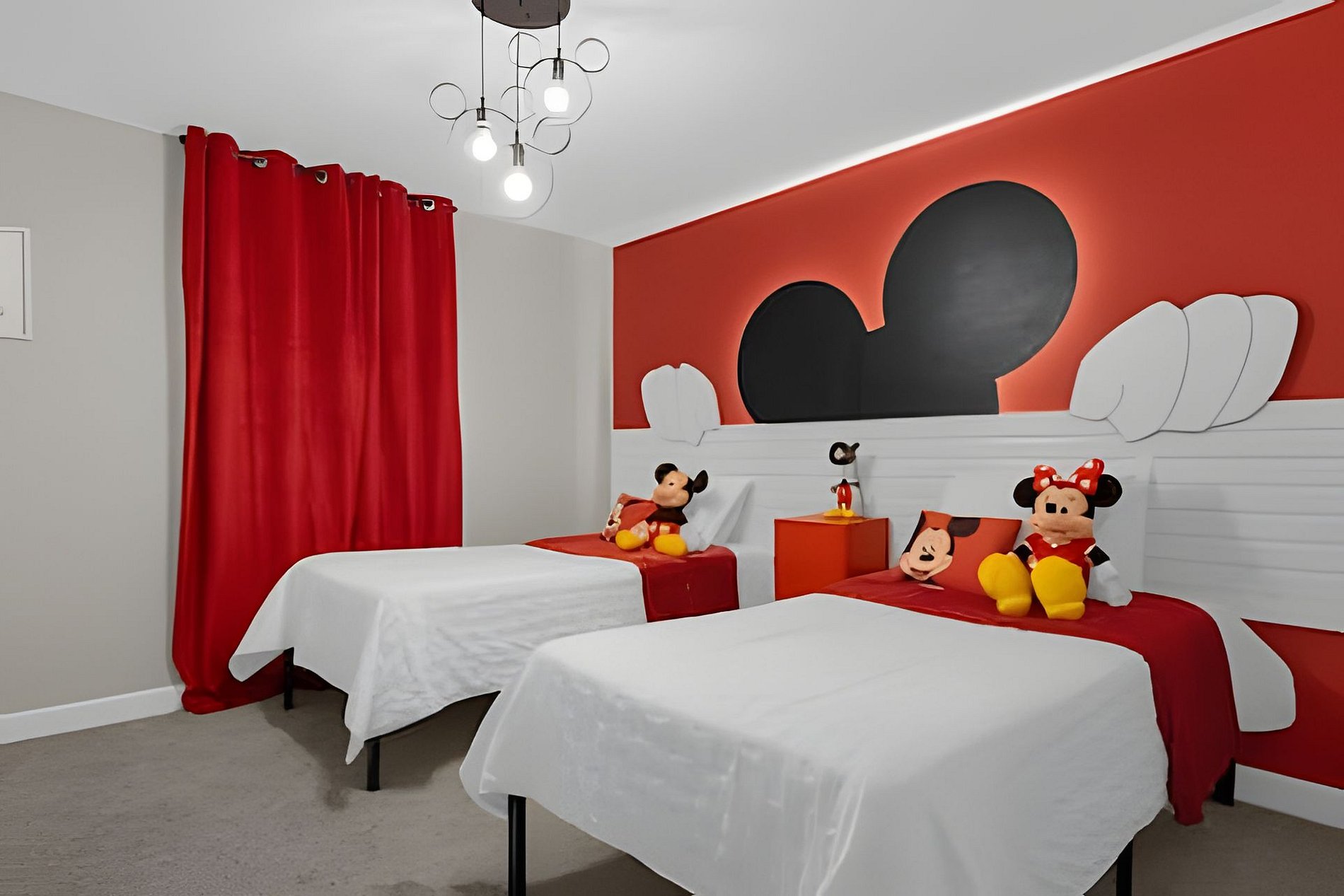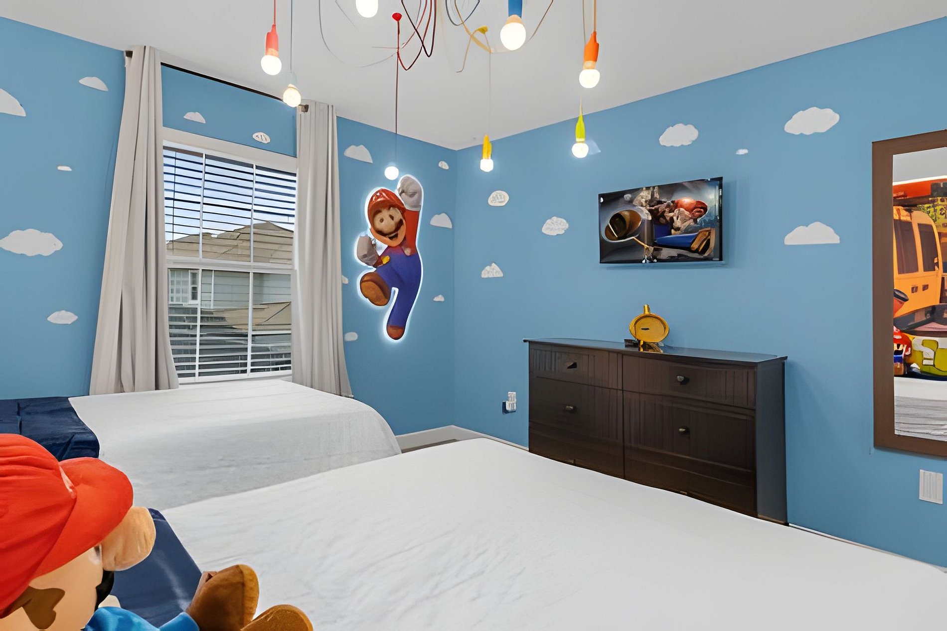 1st Floor: Bedroom with 1 King bed 2nd Floor: Bedroom with 1 King bed (suite) Bedroom with 2 Twin beds (Mickey-themed) Bedroom with 1 Twin bed and 1 Full bed (Mario Bros-themed)