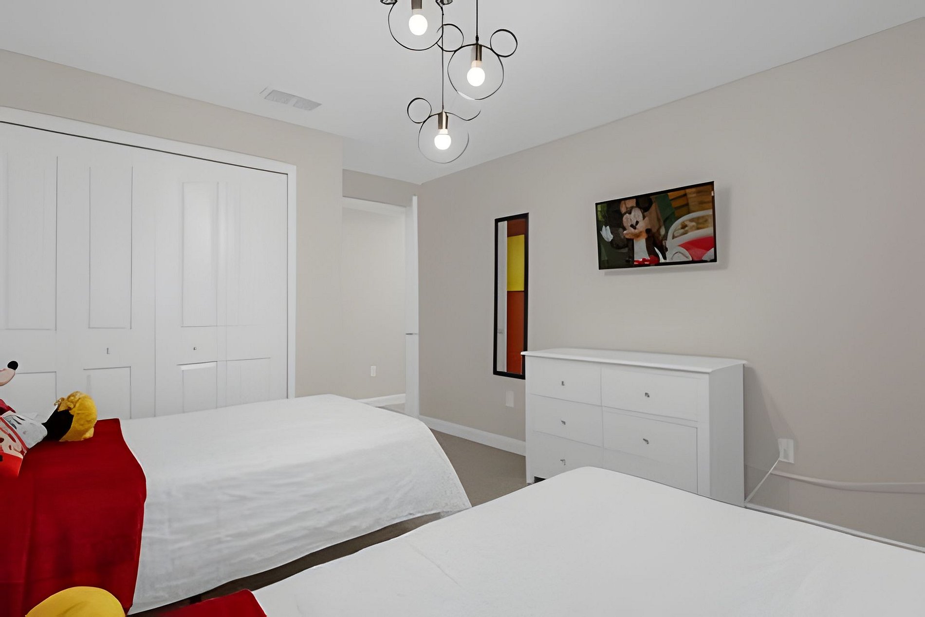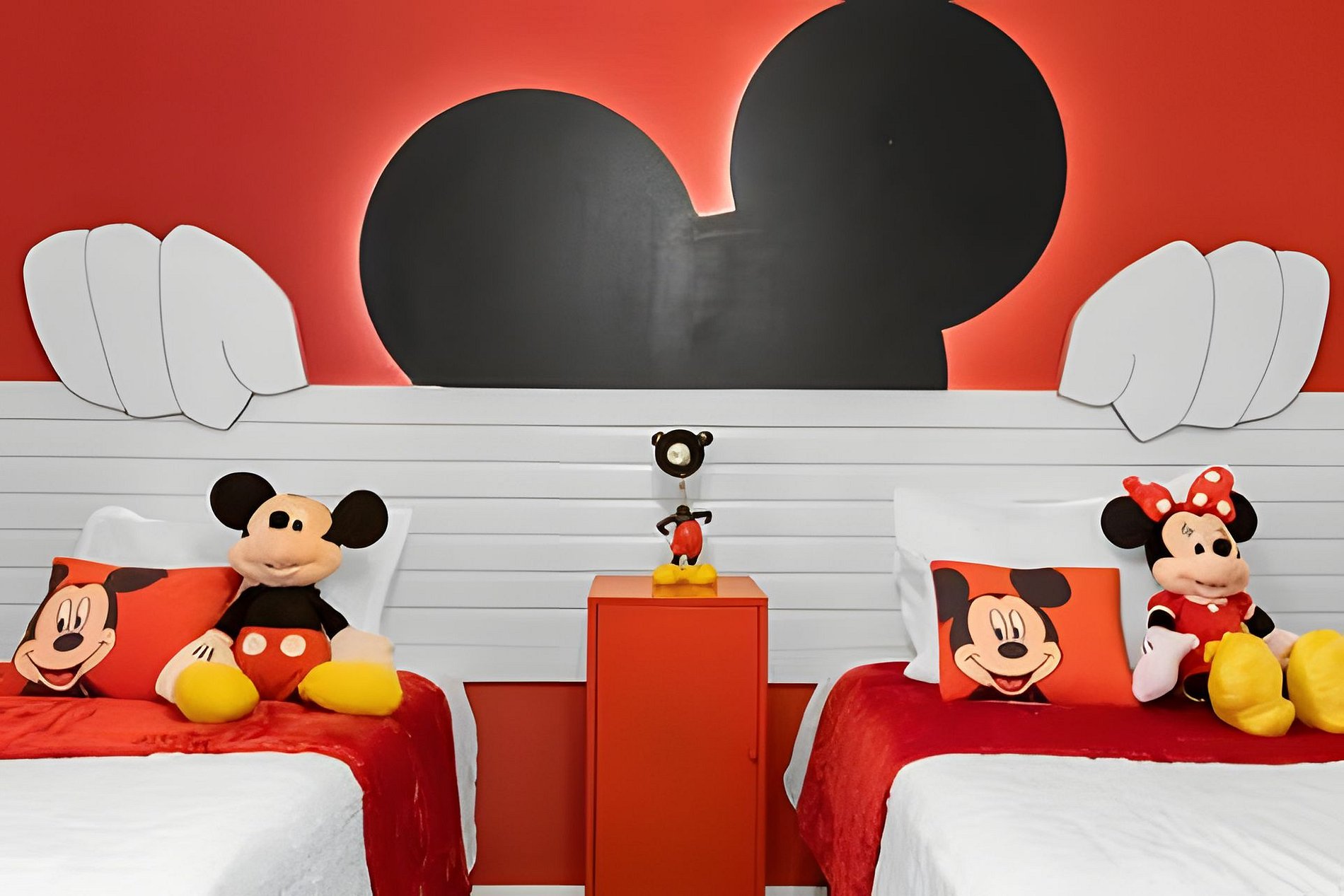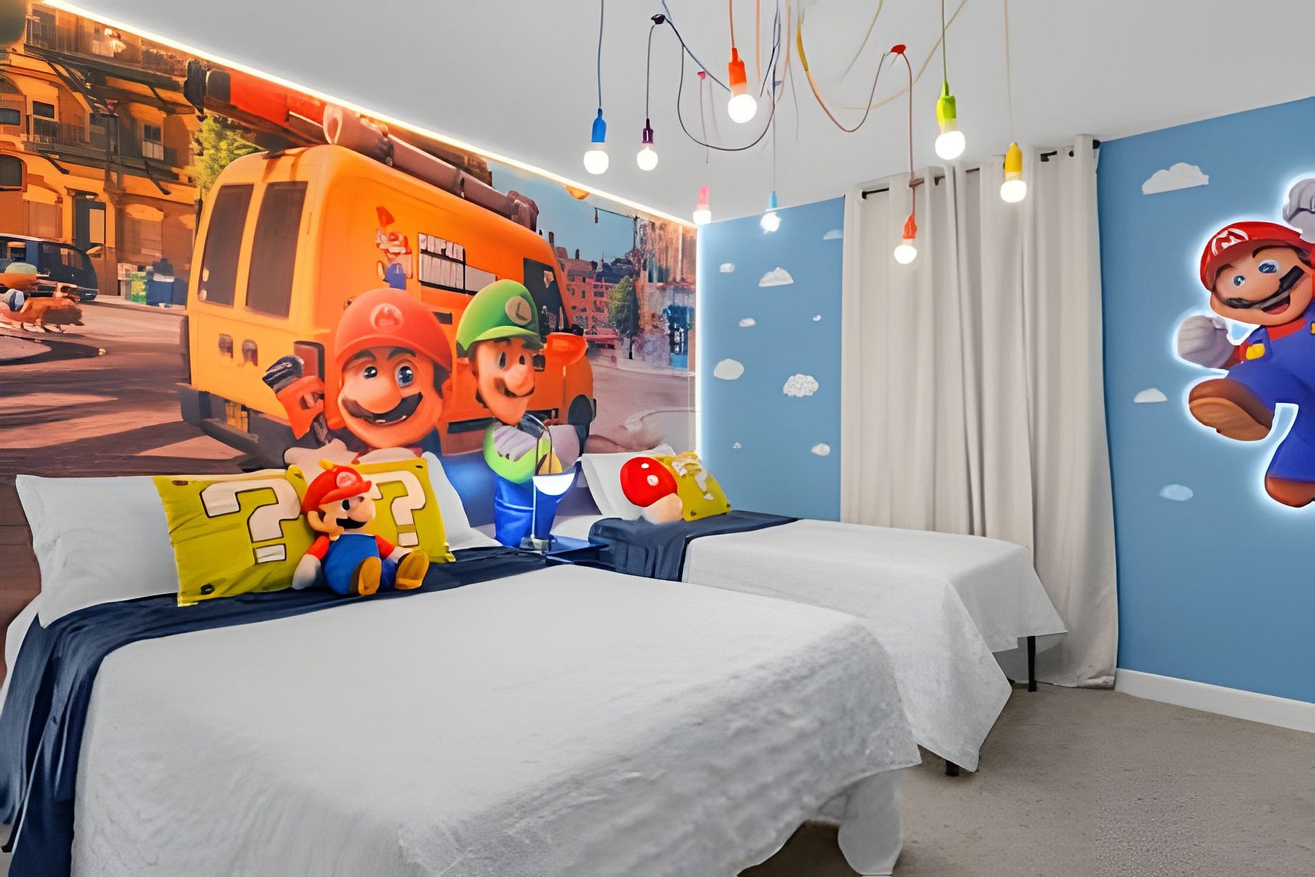 1st Floor: Bedroom with 1 King bed 2nd Floor: Bedroom with 1 King bed (suite) Bedroom with 2 Twin beds (Mickey-themed) Bedroom with 1 Twin bed and 1 Full bed (Mario Bros-themed)