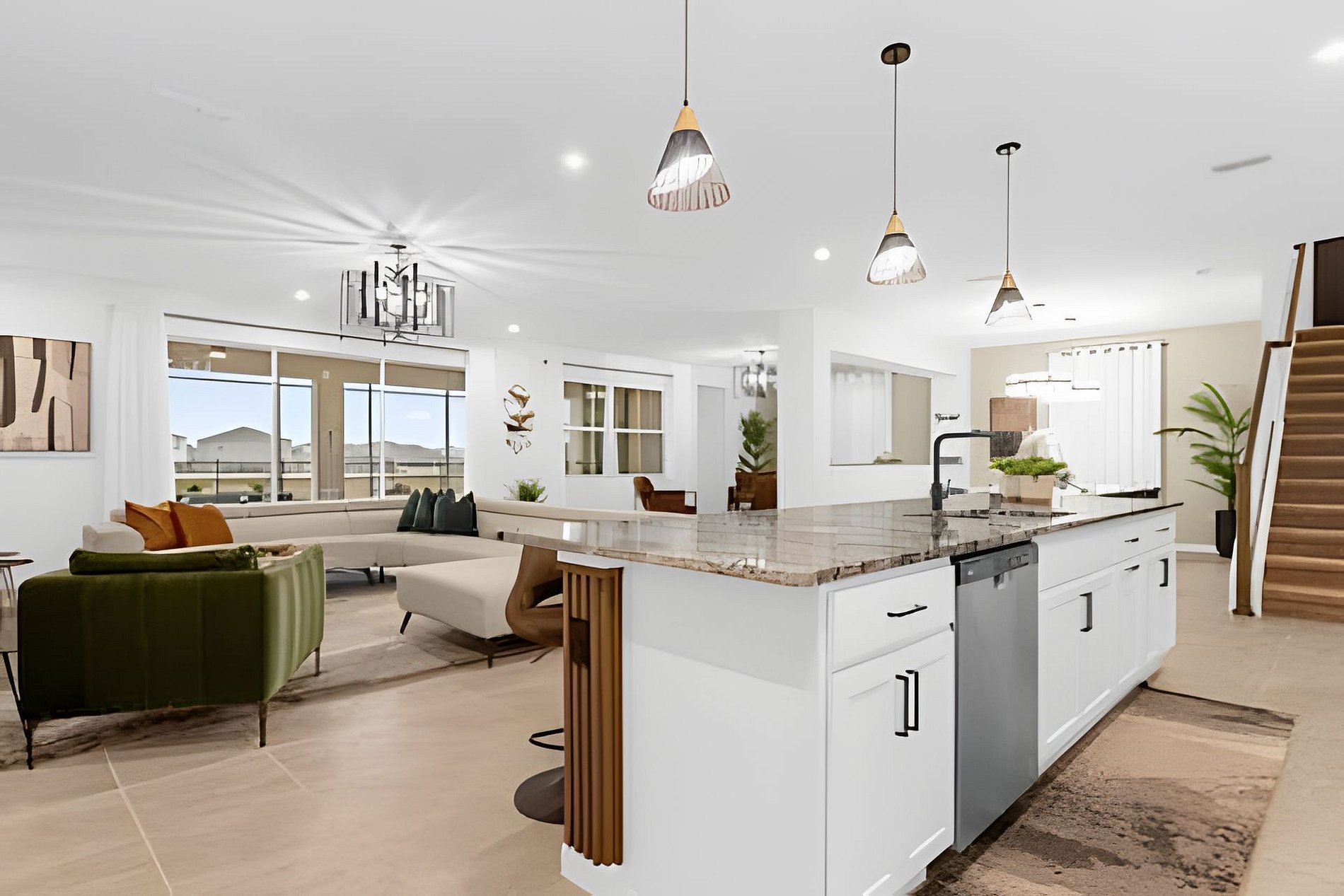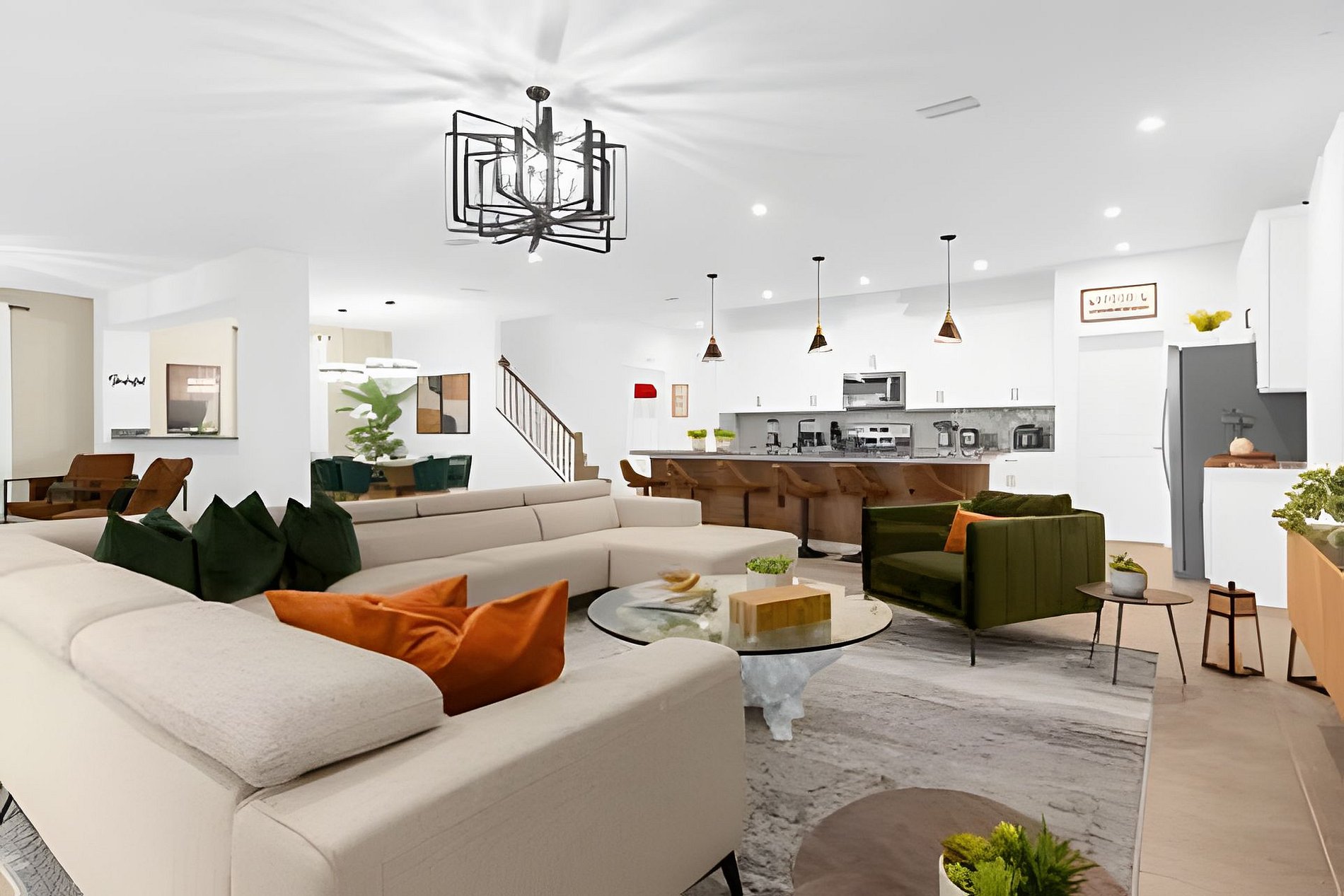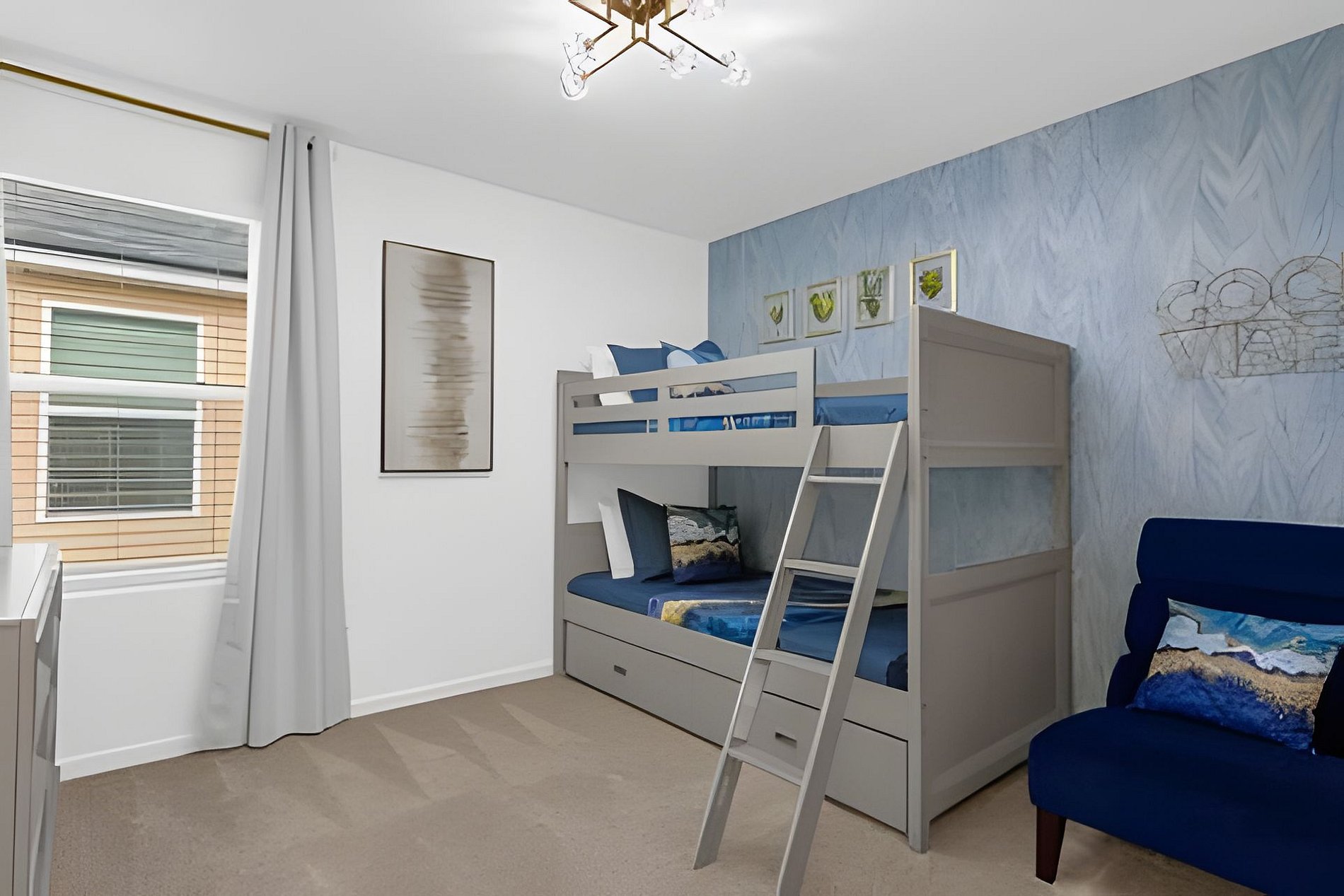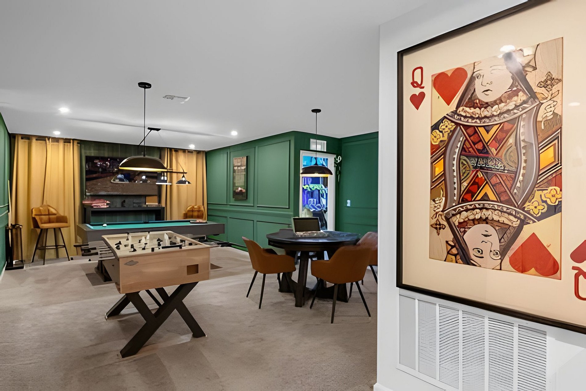 1ST FLOOR -Bedroom 1: With King bed, suite; 2ND FLOOR -Bedroom 2: With one King bed, shared suite; -Bedroom 3: Bunk bed, with two full beds, + 1 twin -auxiliary bed, Mario Bross with slide, shared suite; -Bedroom 4: Bunk bed, with two Twin beds + 1 twin auxiliary bed, shared suite; -Bedroom 5: With King bed, shared suite; -Bedroom 6: Bunk bed, with two full beds, Encanto, shared suite; -Bedroom 7: With two twin beds, Mickey, shared suite; -Bedroom 8: With one King bed, suite; -Bedroom 9: Bunk bed, with 1 Full bed + 1 twin bed, -Harry Potter; THIS HOUSE HAS 02 FULL SUITES AND 6 SHARED SUITES.