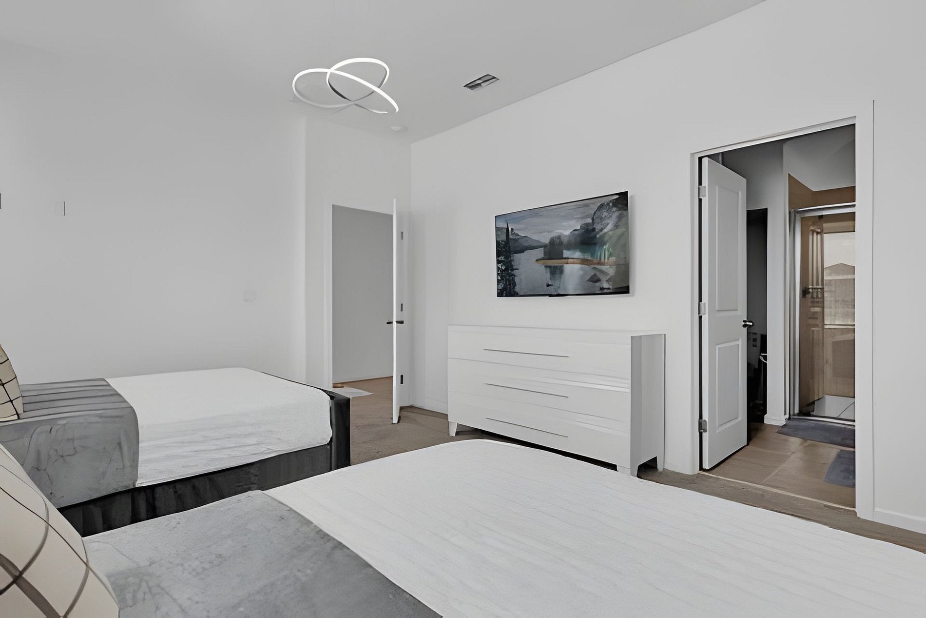 1ST FLOOR Bedroom 1: With 2 full beds, suite; 2ND FLOOR Bedroom 2: With a king bed, Mickey; Bedroom 3: With a queen bed; Bedroom 4: With a king bed, shared suite; Bedroom 5: With bunk bed, two full beds (Minions), shared suite; Bedroom 6: With bunk bed, two full beds (Princesses). THIS HOUSE HAS 1 ENTIRE SUITE AND 2 SHARED BEDROOMS
