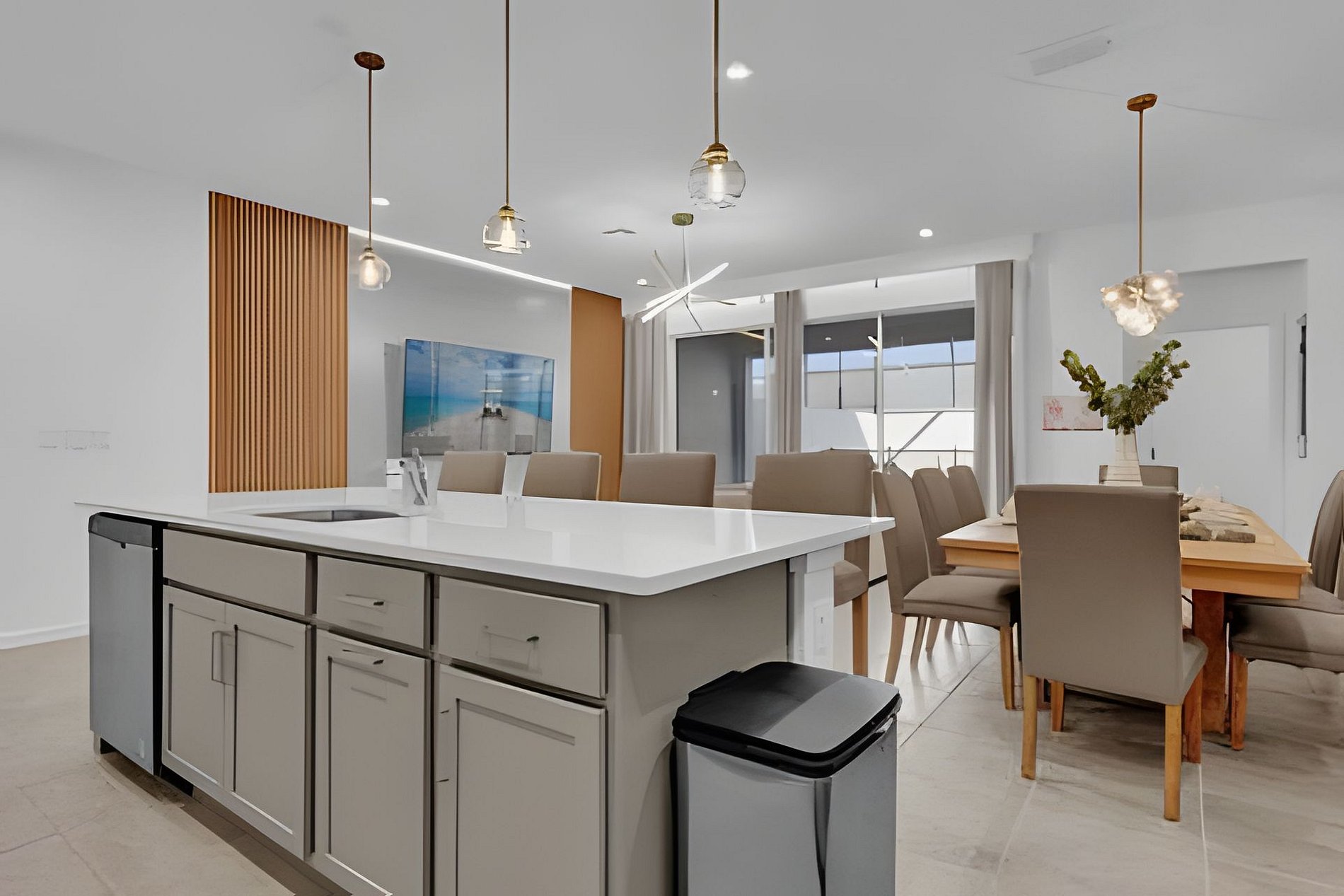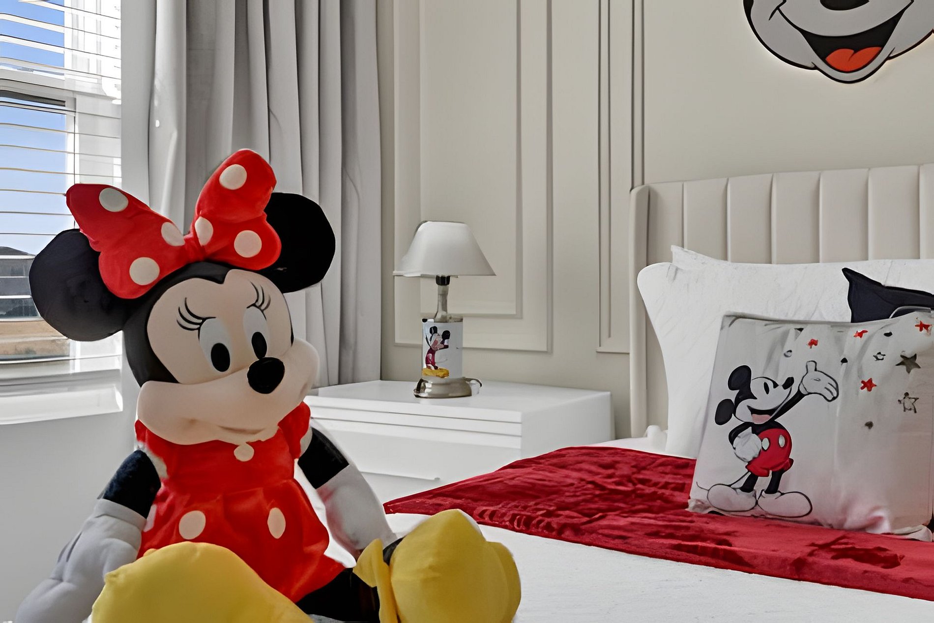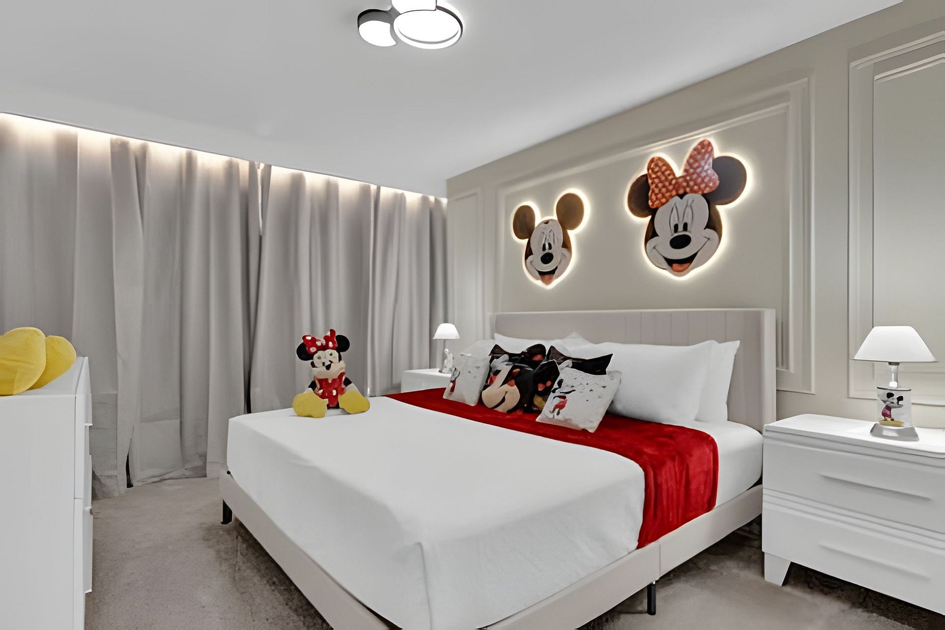 Enjoy a unique stay in this modern home at Solara Resort! With 6 bedrooms, 3 themed with Princesses, Minions and 1 with Mickey theme, it accommodates up to 18 people in total comfort. The modern and cozy decor provides a sophisticated and welcoming environment. In addition, the house has a private pool and an incredible leisure area, guaranteeing fun and relaxation for the whole family!