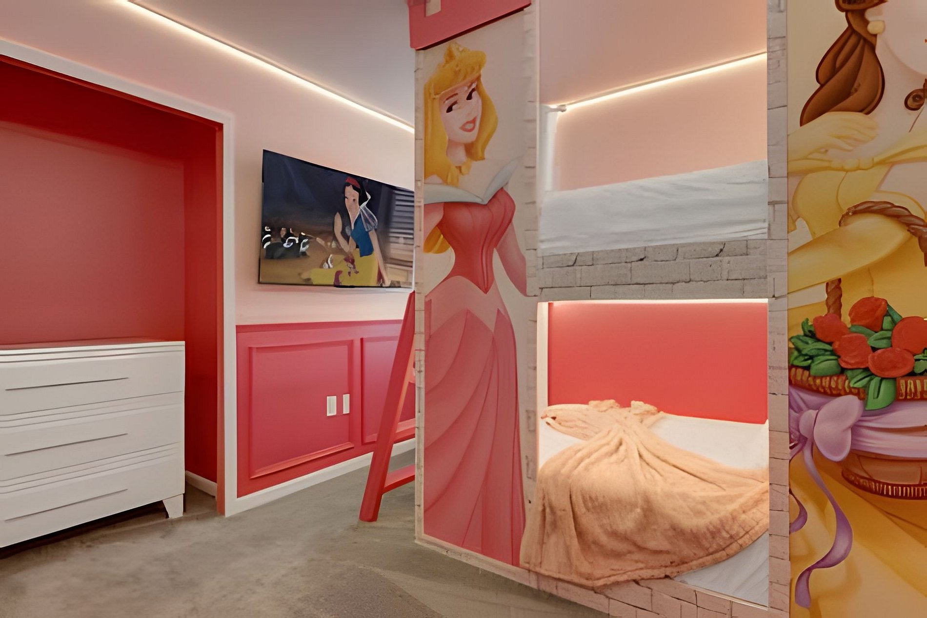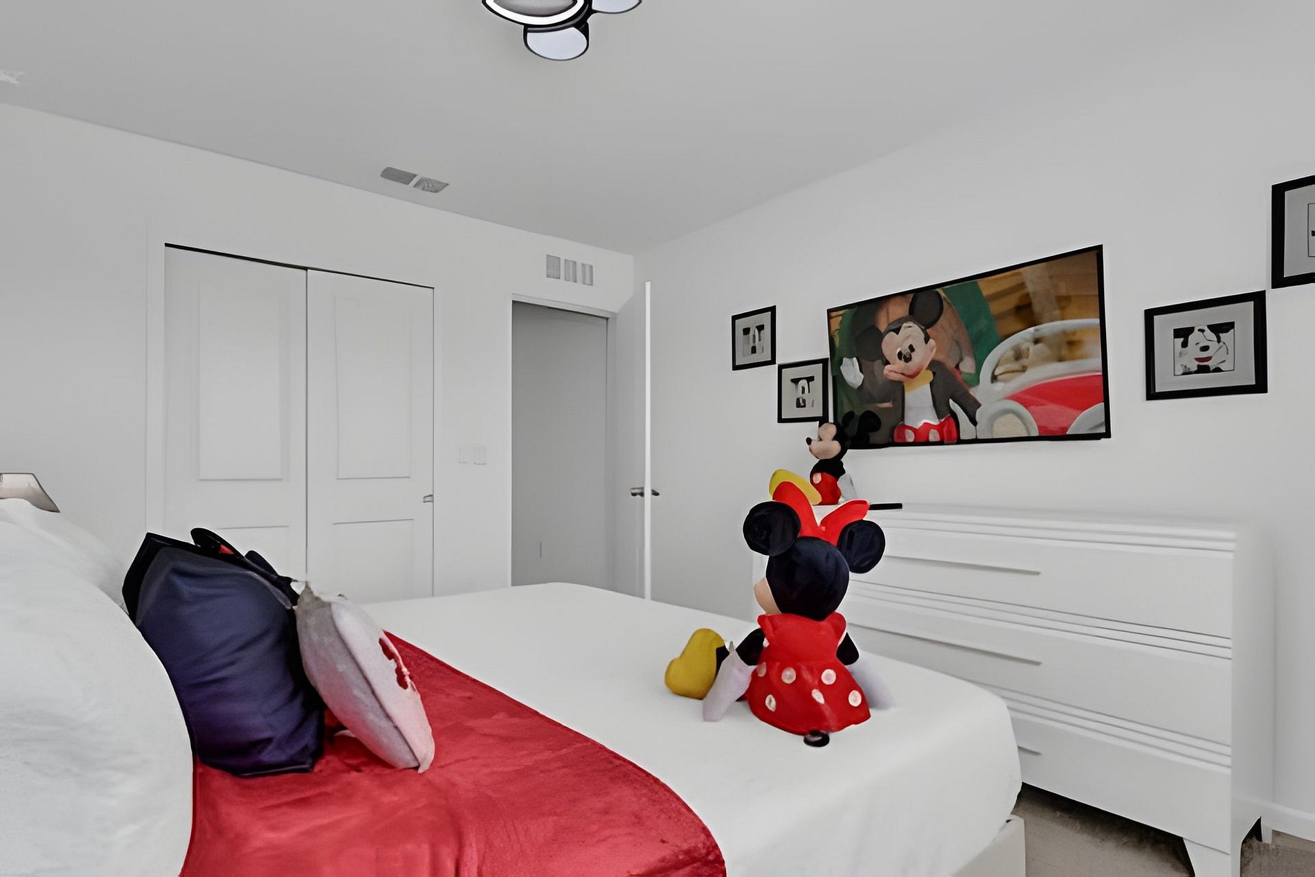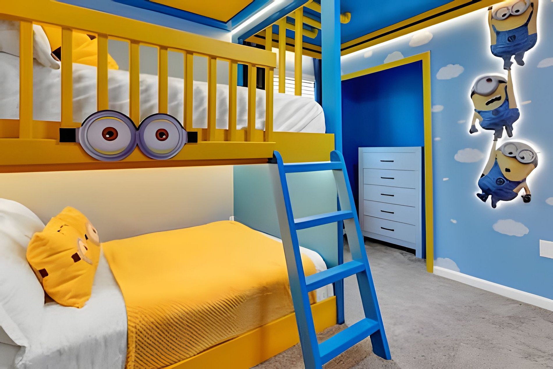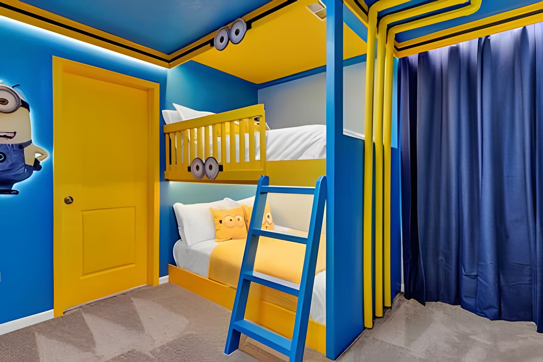 1ST FLOOR Bedroom 1: With 2 full beds, suite; 2ND FLOOR Bedroom 2: With a king bed, Mickey; Bedroom 3: With a queen bed; Bedroom 4: With a king bed, shared suite; Bedroom 5: With bunk bed, two full beds (Minions), shared suite; Bedroom 6: With bunk bed, two full beds (Princesses). THIS HOUSE HAS 1 ENTIRE SUITE AND 2 SHARED BEDROOMS