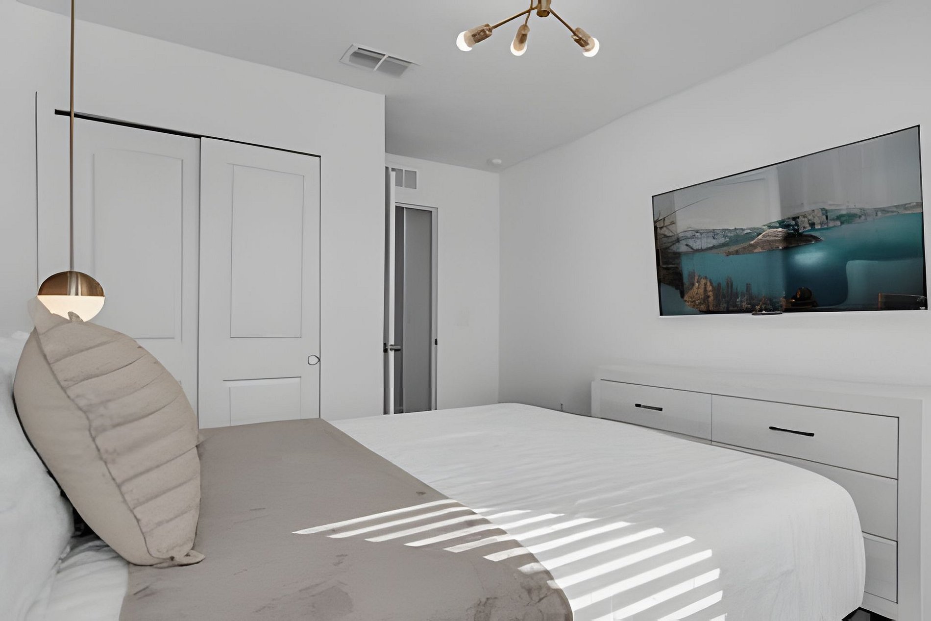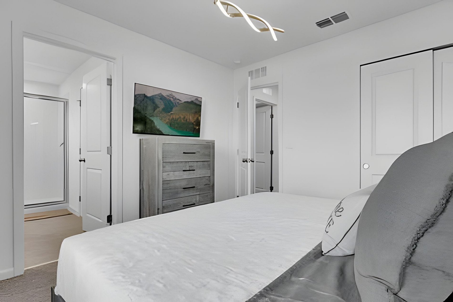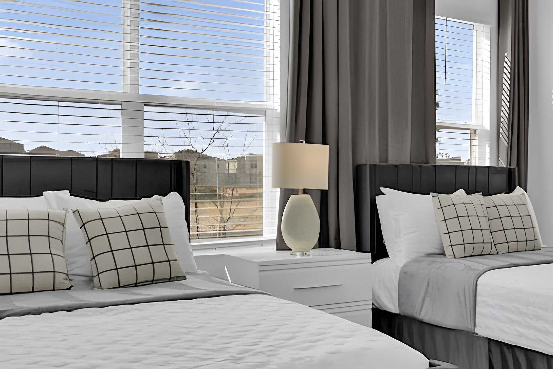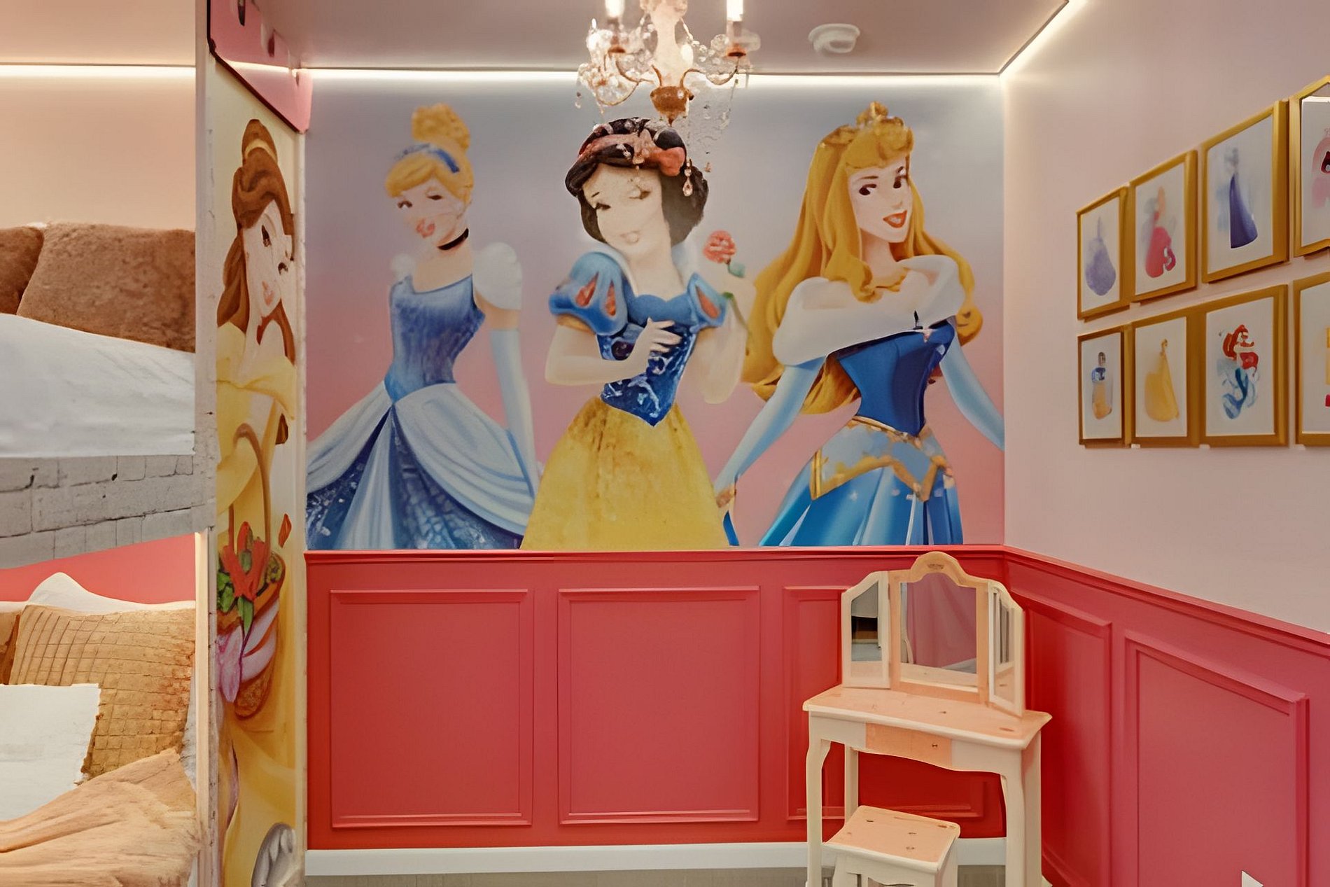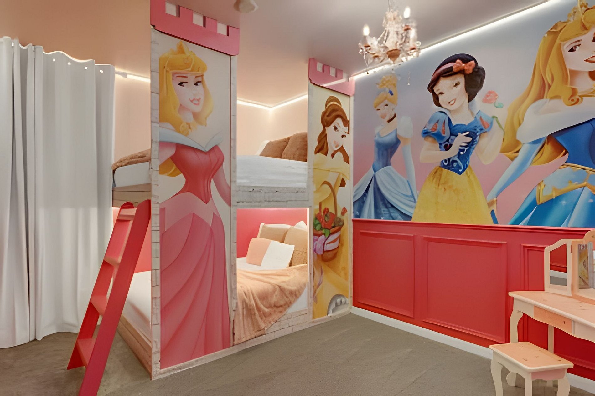 1ST FLOOR Bedroom 1: With 2 full beds, suite; 2ND FLOOR Bedroom 2: With a king bed, Mickey; Bedroom 3: With a queen bed; Bedroom 4: With a king bed, shared suite; Bedroom 5: With bunk bed, two full beds (Minions), shared suite; Bedroom 6: With bunk bed, two full beds (Princesses). THIS HOUSE HAS 1 ENTIRE SUITE AND 2 SHARED BEDROOMS