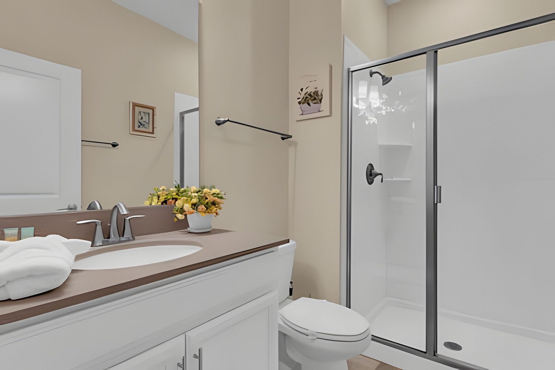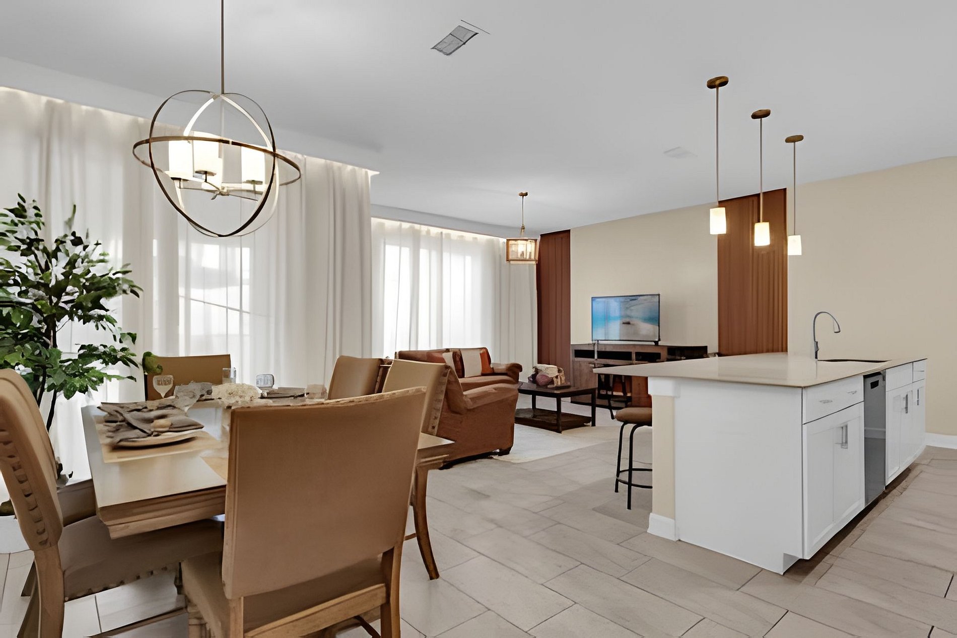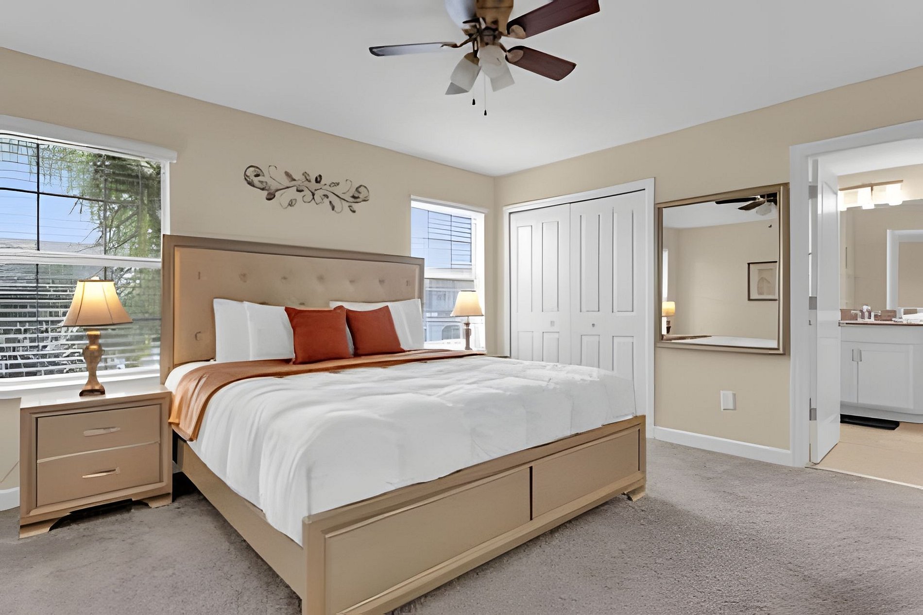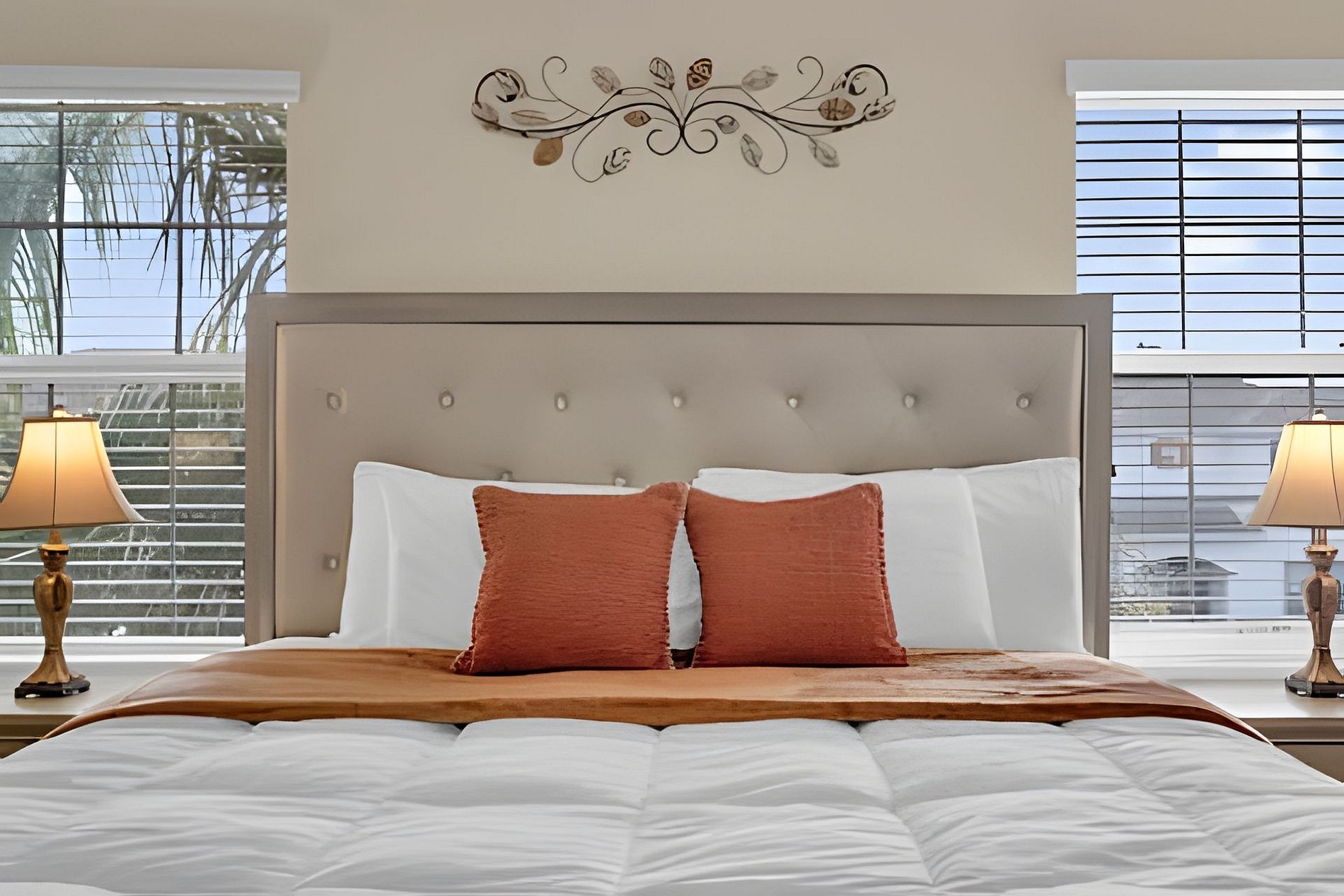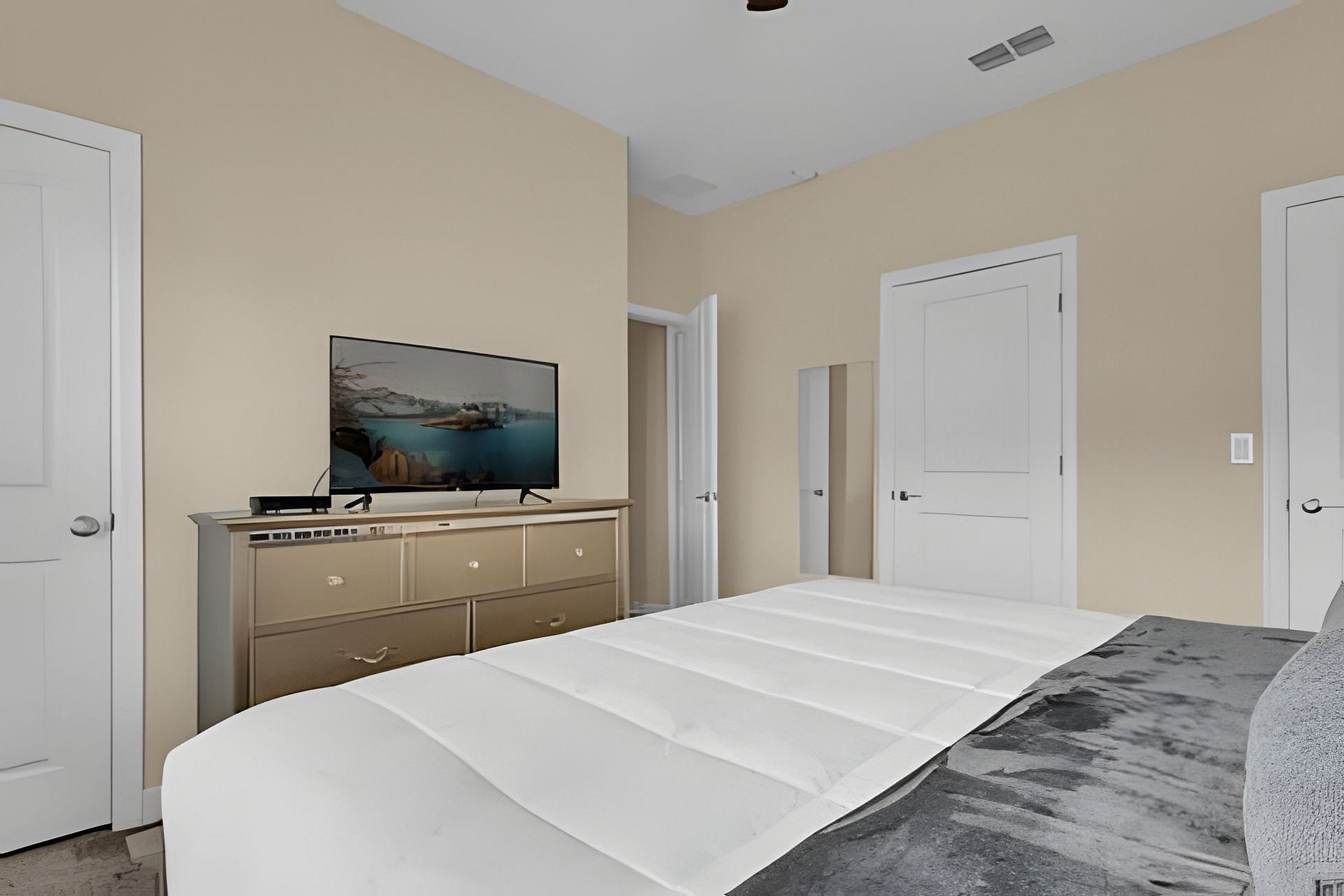 1ST FLOOR: Bedroom 1: With a king size bed, Suite. 2ND FLOOR: Bedroom 2: With a king size bed, Suite; Bedroom 3: With two beds, 1 full bed + 1 twin bed, Minions; Bedroom 4: With two beds, 1 full bed + 1 twin bed, Mickey; THE HOUSE HAS 2 SUITES.