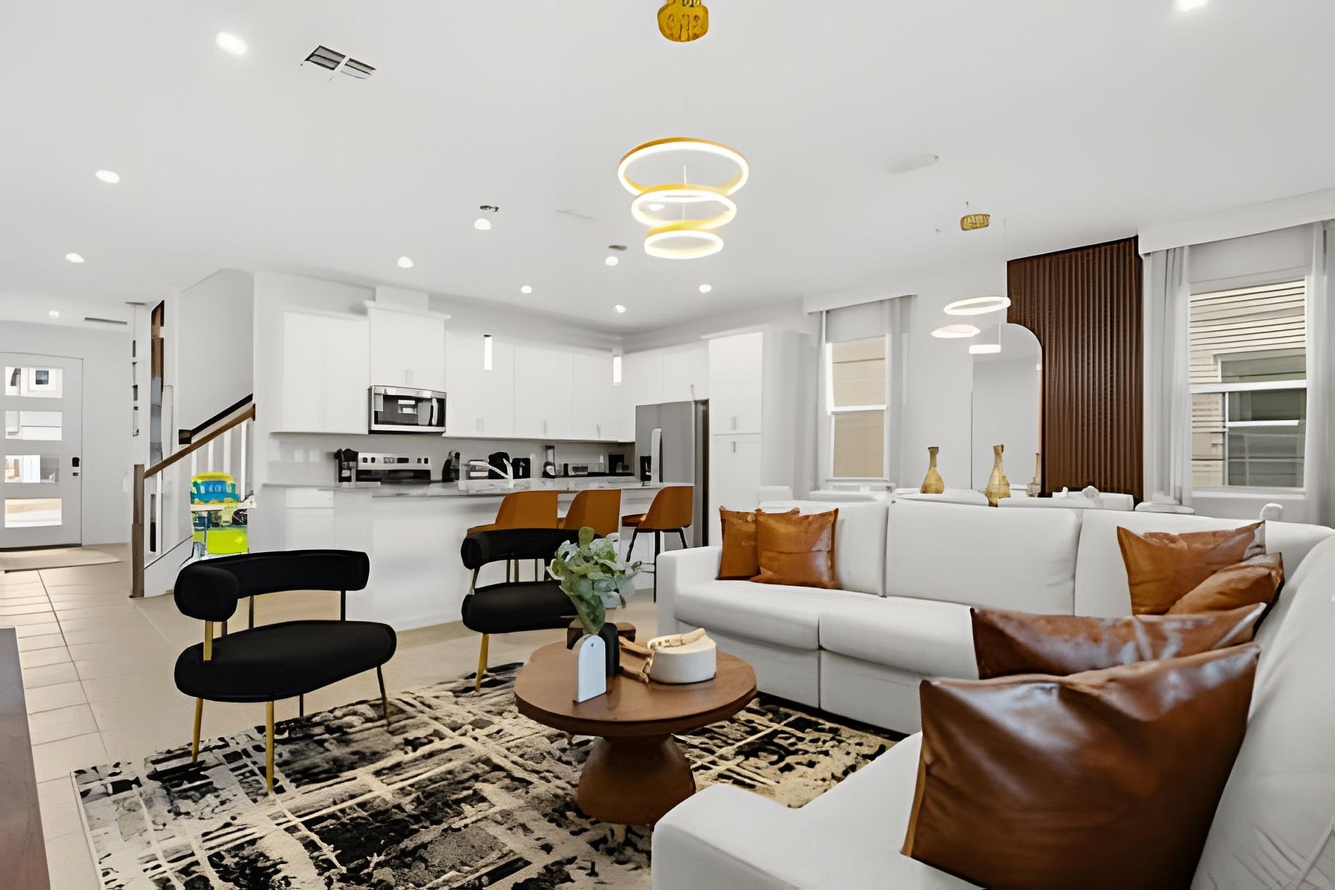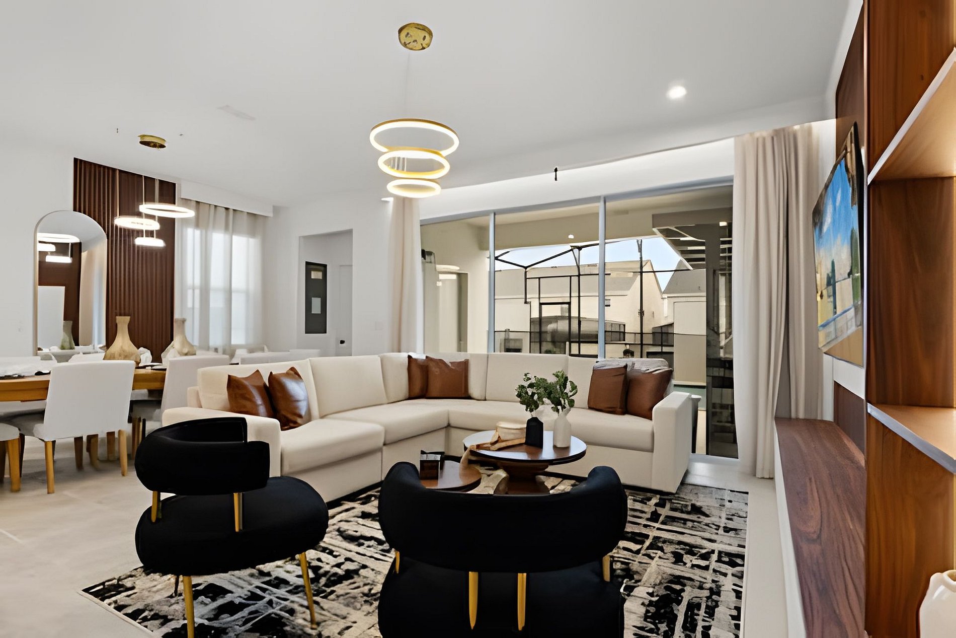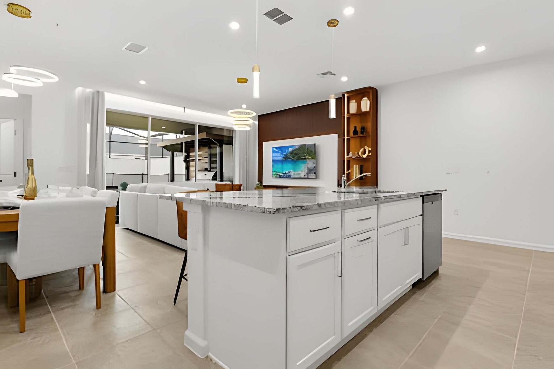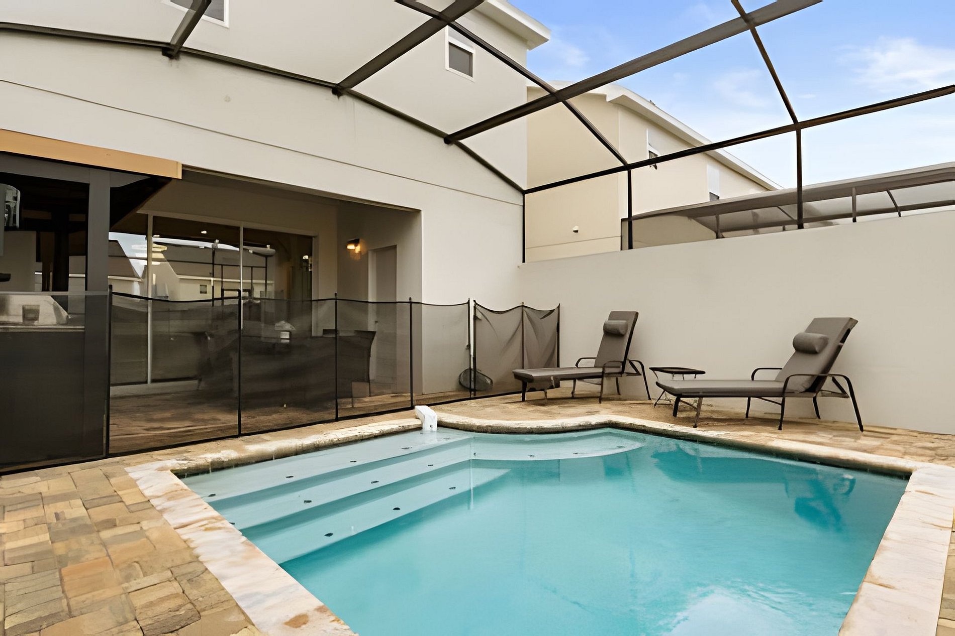 This stunning 6-bedroom retreat at Solara Resort offers a sleek, modern kitchen and dining area, plus magical themed bedrooms inspired by Lilo & Stitch (a hot trend), Minions, and Mickey & Minnie. Three beautifully decorated social bedrooms add extra comfort. Outside, enjoy a stylish Summer Kitchen perfect for unforgettable gatherings. Solara Resort boasts a prime location and a spectacular clubhouse with over $20 million in luxury amenities. THERE ARE ACTIVE BUILDING WORKS ON THE STREET.
