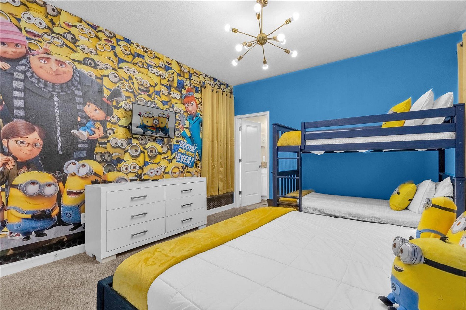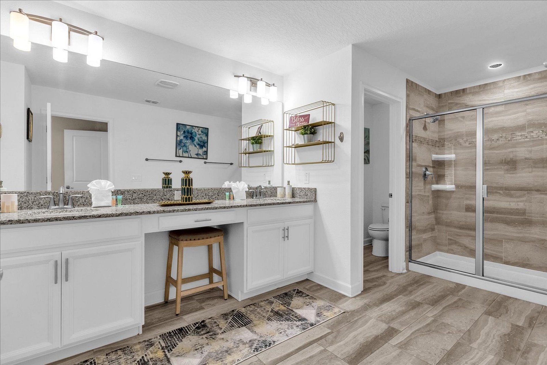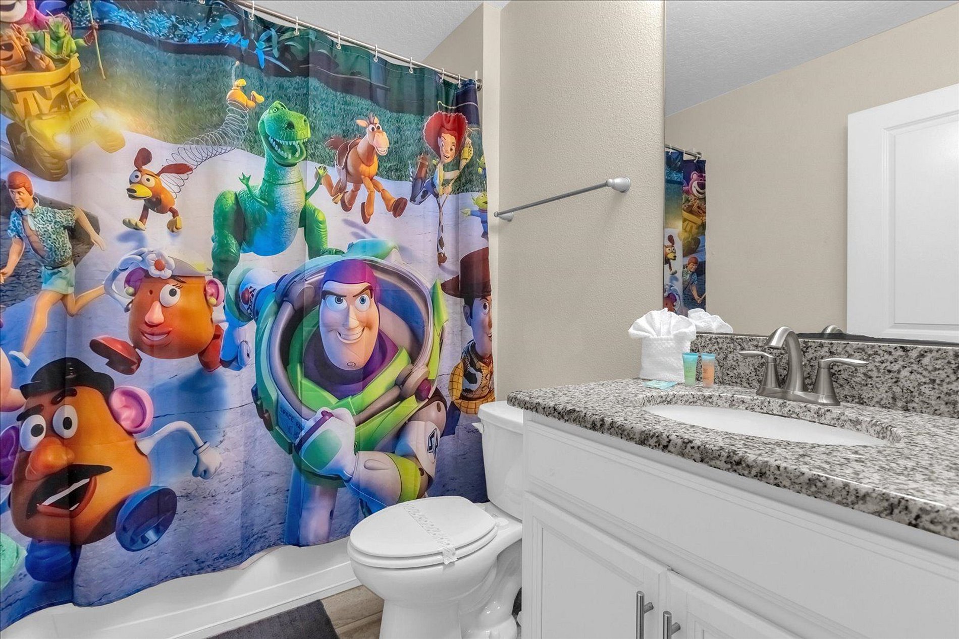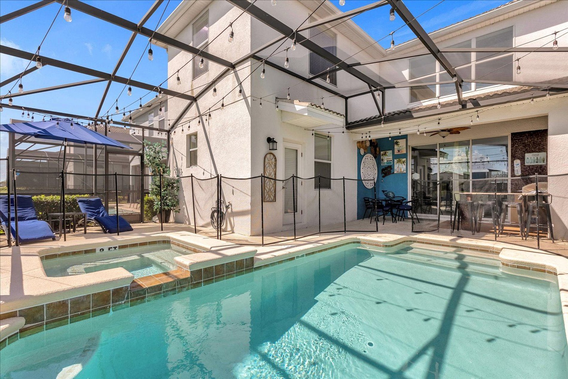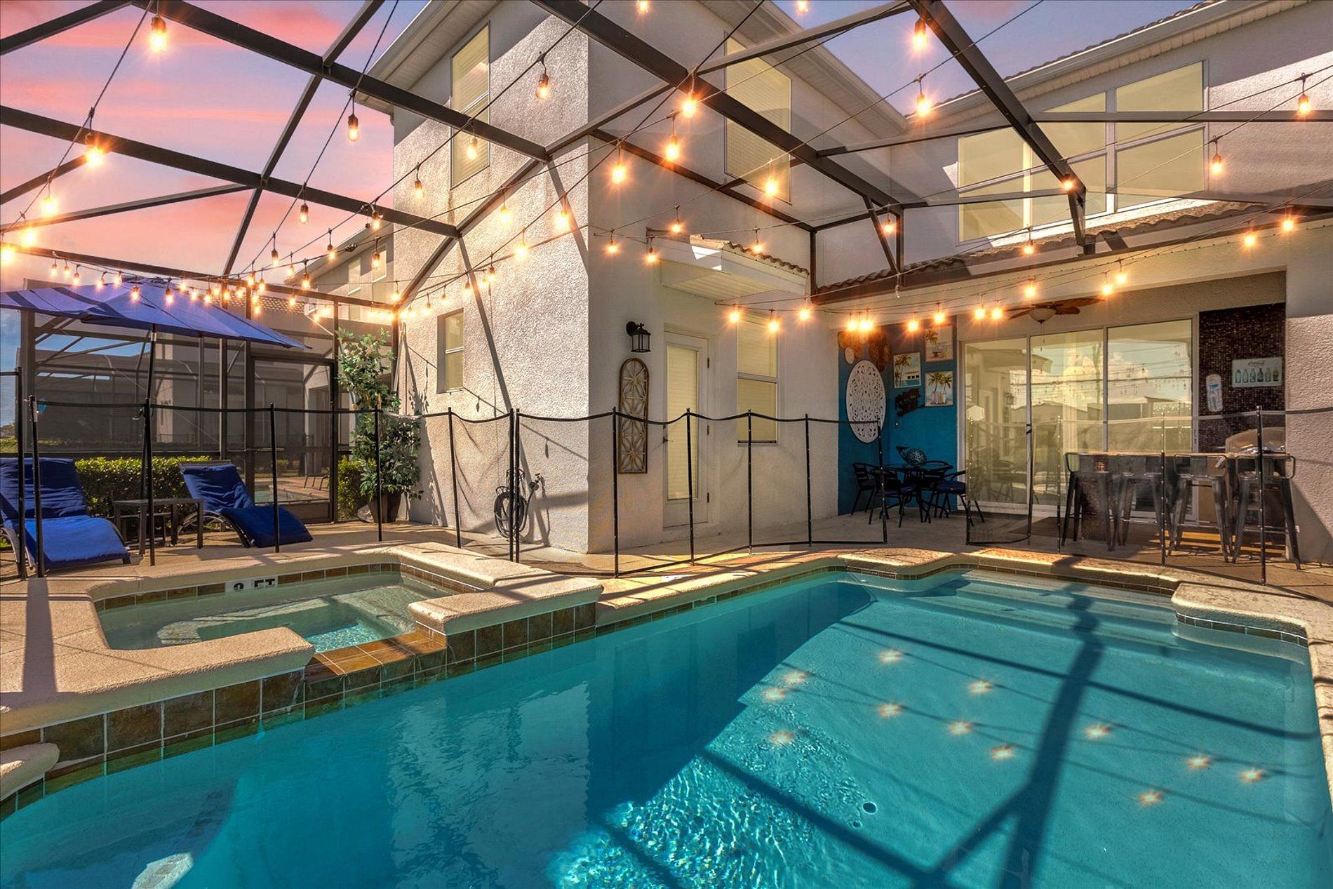 The house is Located in the Storey Lake Resort, 8 minutes to Disney World, and close to Universal Studios, SeaWorld, Orange County Convention Center, factory outlet malls, dining & entertainment options. This Unit is Steps away from the amazing clubhouse. Enjoy the lazy river, pools, slides, splash park, basketball, volleyball, kayak & much more ! Highest quality décor & design, with 6 bedrooms and 5 bathrooms, Internet Wi-Fi , Cable TV, Full kitchen and accommodate comfortable 17 guests.