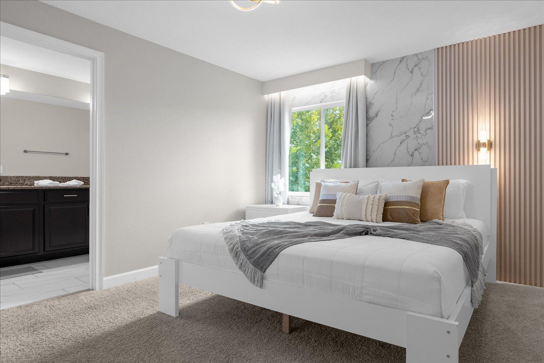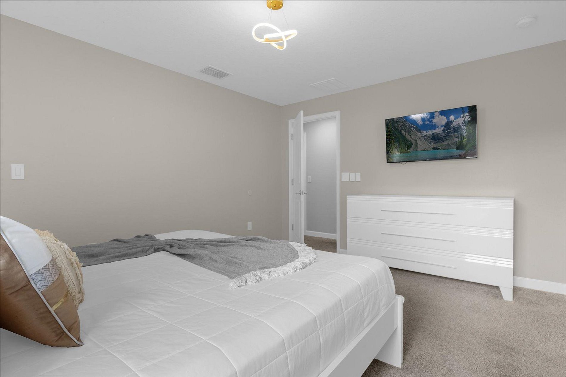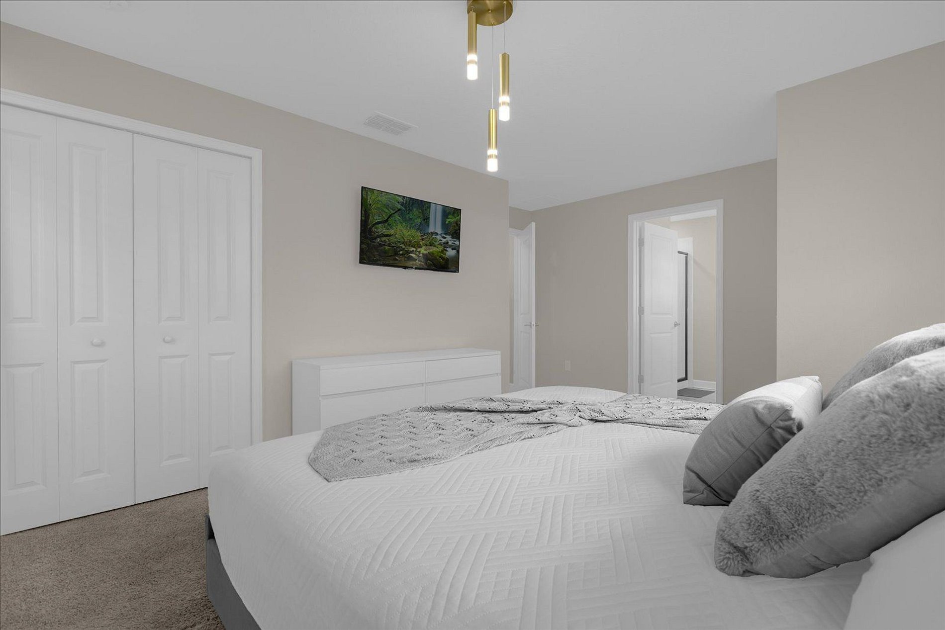 2ND FLOOR: Bedroom 3: 1 king bed (private bathroom) Bedroom 4: 1 bunk bed (twin over full) + 1 single folding bed Bedroom 5: 1 king bed (private bathroom) Full bathroom in front of this room THIS HAS 2 SUITES.