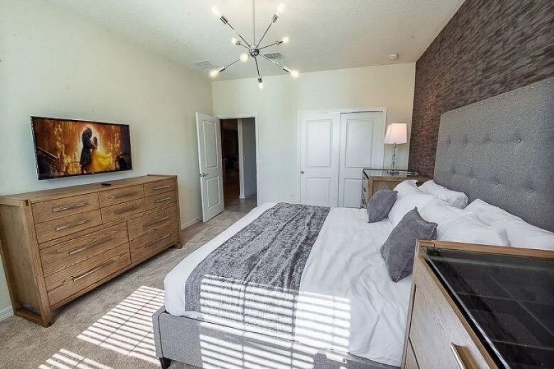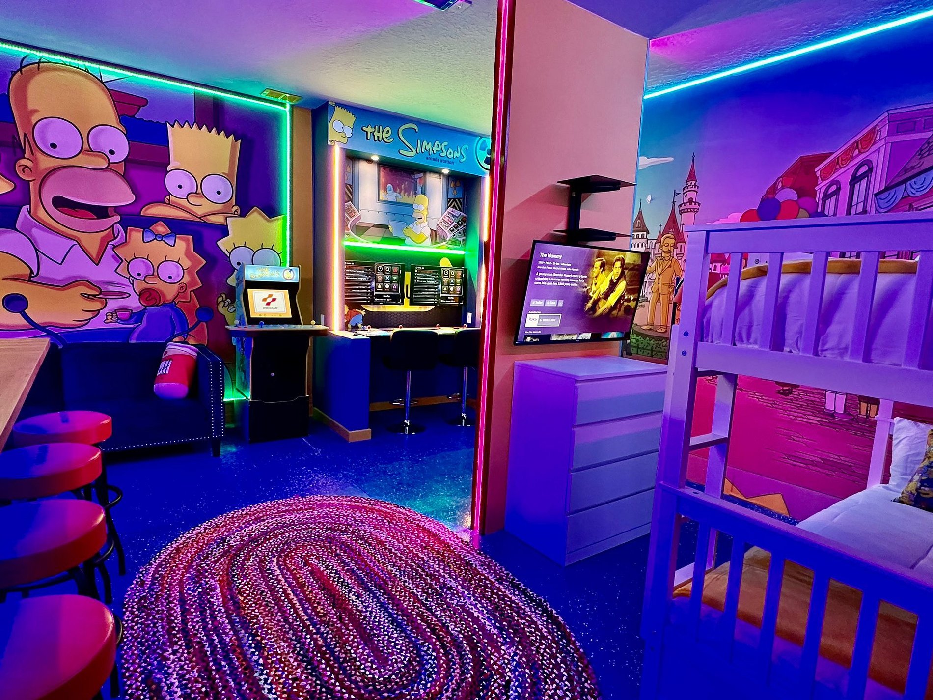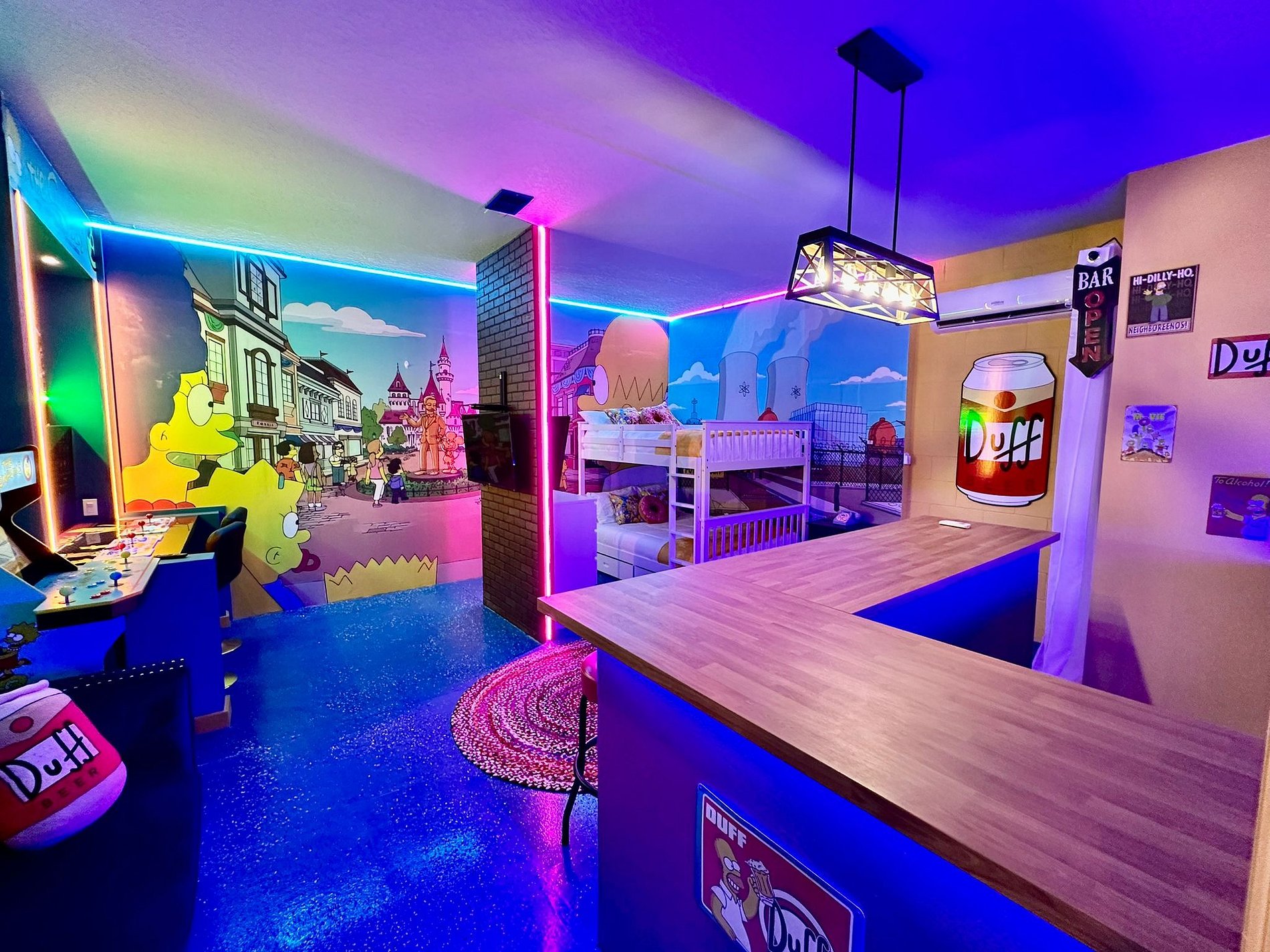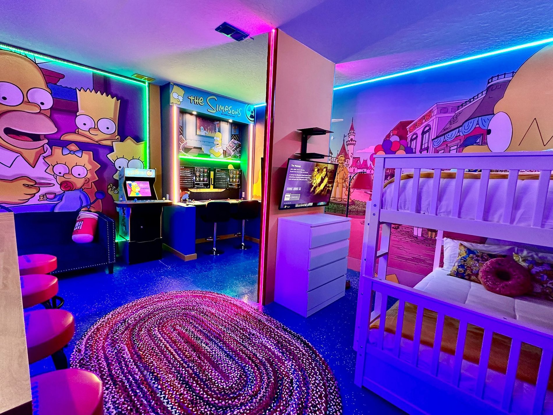 Beautiful home with 10 bedrooms, 8 bathrooms, accommodating 26 people. With a Simpsons themed game room, pool, whirlpool, Disney characters, avengers and princesses themed rooms, this beautiful home is located in the Windsor Island Resort condominium. On the west side of Walt Disney World, just 15 minutes from the main Disney parks and also within easy reach of Orlando's main attractions.