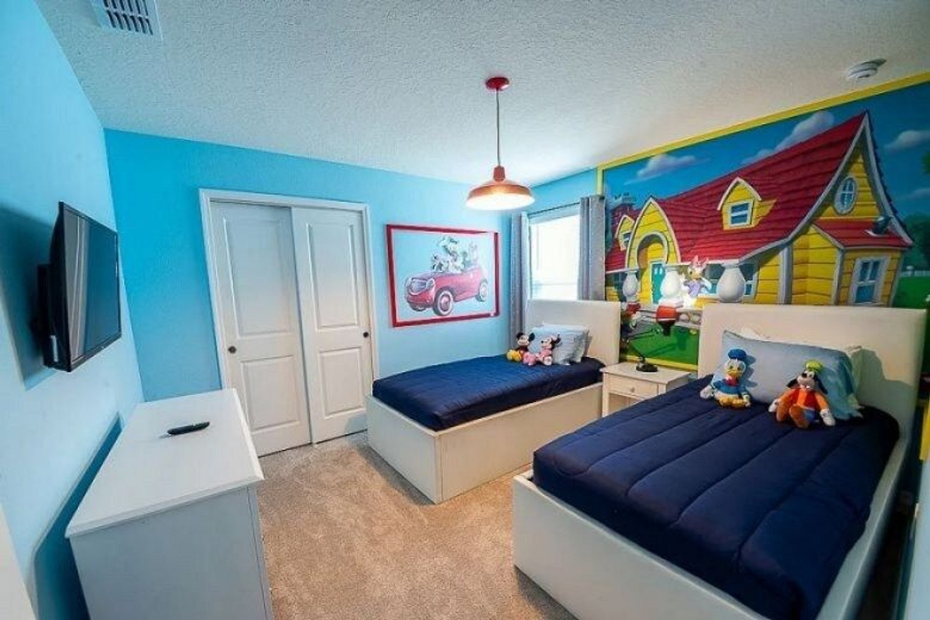 Bedroom 10: "Mickey" themed room with 2 twin beds, shared bathroom (sleeps 2).