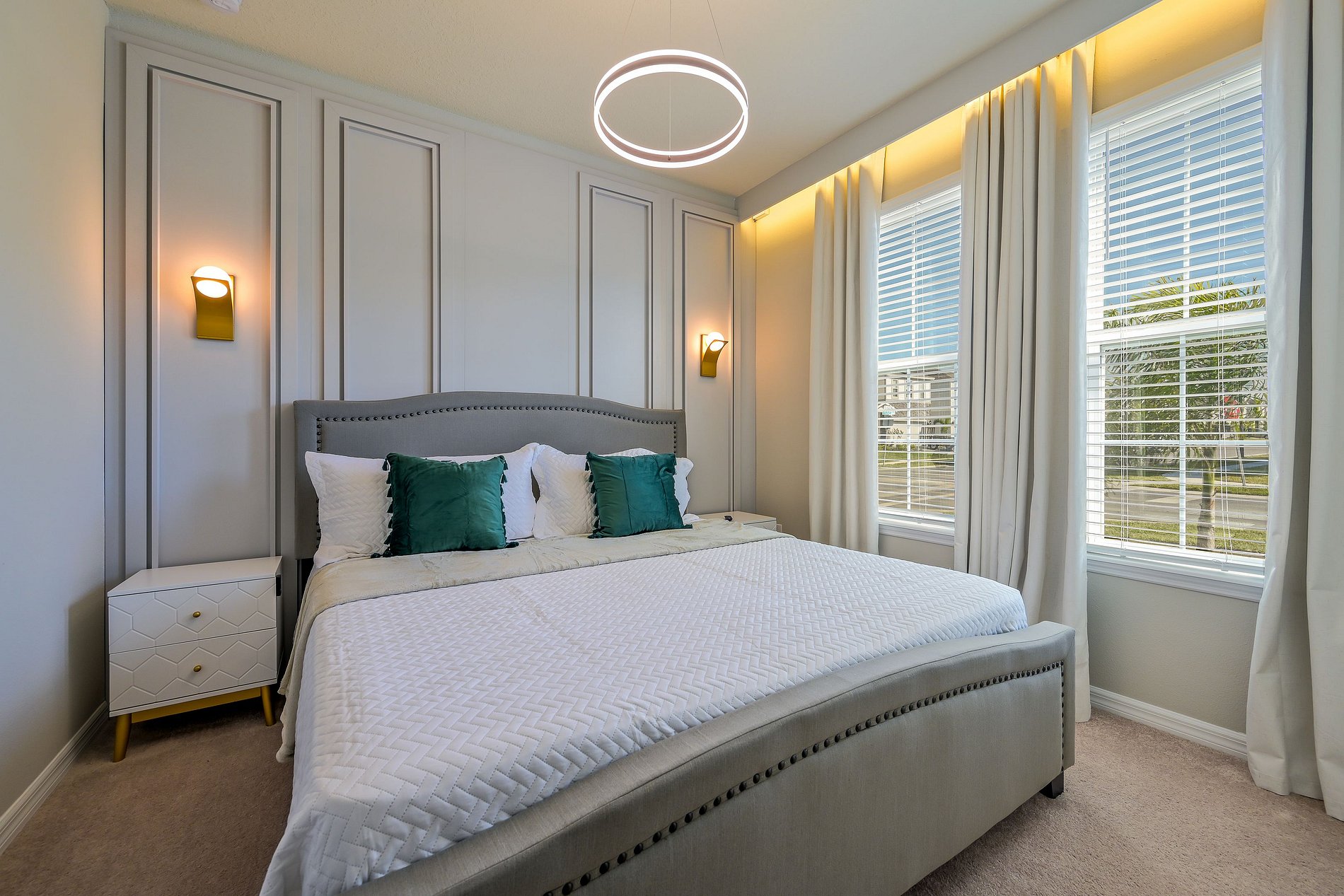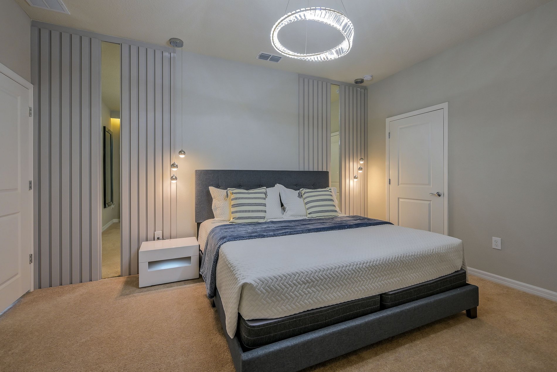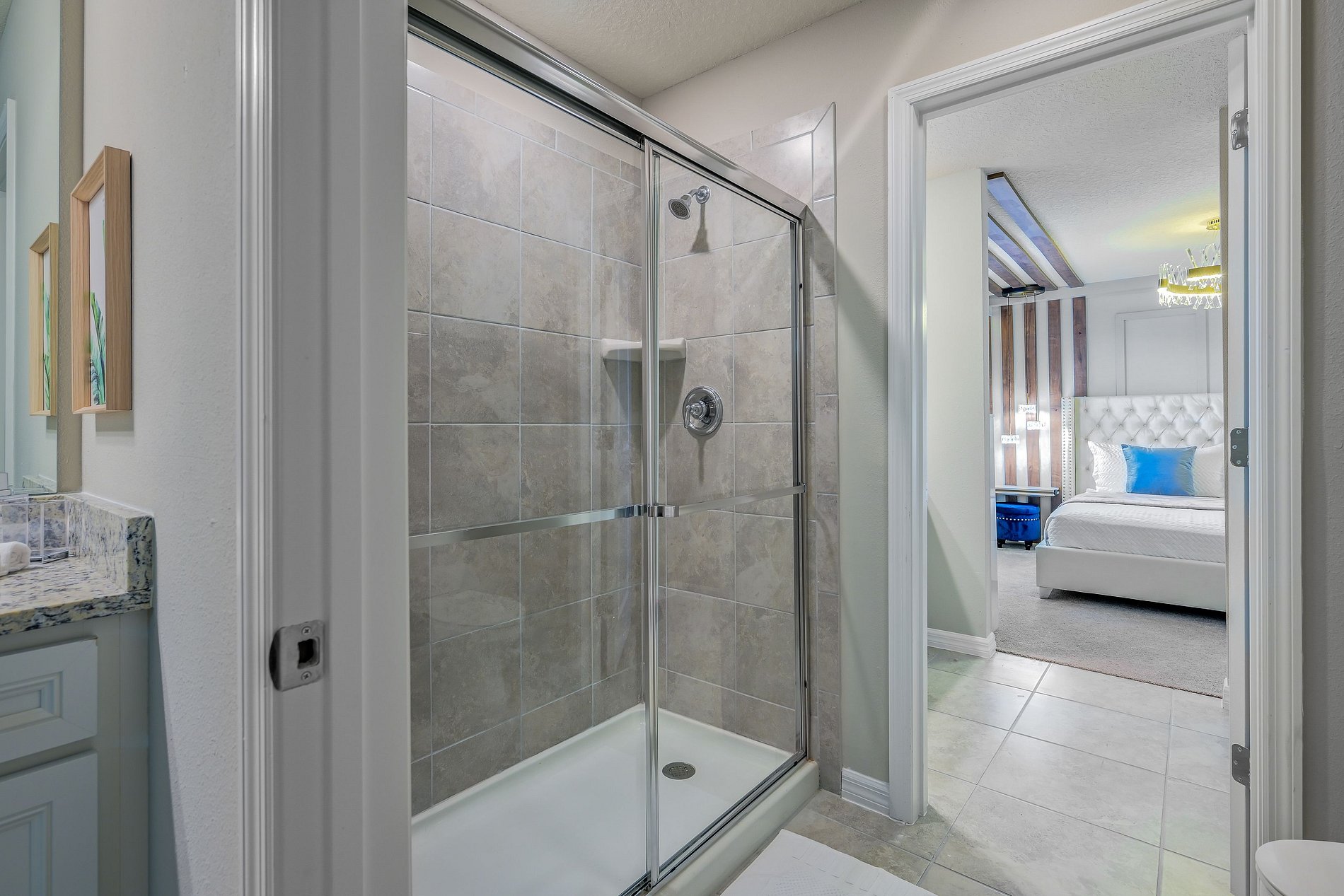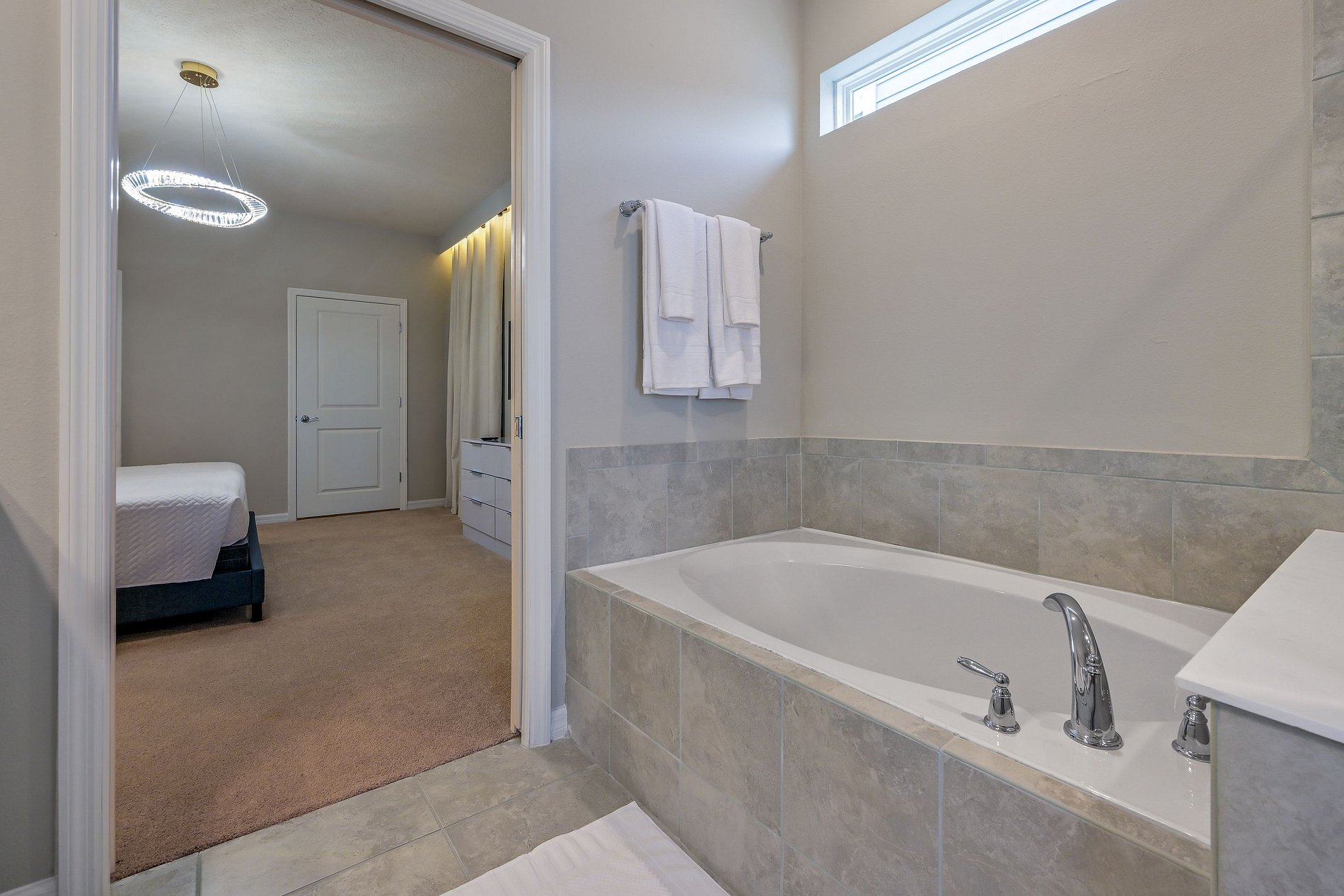 We stayed here because of the very large group (6 families) and the house had more than enough space. The rooms were large enough a few even had pack and plays for younger guests. The resort has a lazy river, pool, kids pool with slides, miniature golf, arcade, and gym. Overall the facilities were awesome and there weren't any issues. Working with the host was great and weren't any issues. Any questions I had he responded to quickly and the best he could to solve any issues. The only downside here is the entire community is a short term rental and parking as a whole is limited. I'd recommend having no more than 3-4 cars here so you don't have to park around the corner or somewhere else. You could fit four cars in the driveway if you get them close together. We had a suburban, minivan, and SUV. I'd recommend the place for other families or groups looking for a nice place, lots of space, and close to Disney/Sea World/Universal. Our drive was about 30-60 min to Disney.