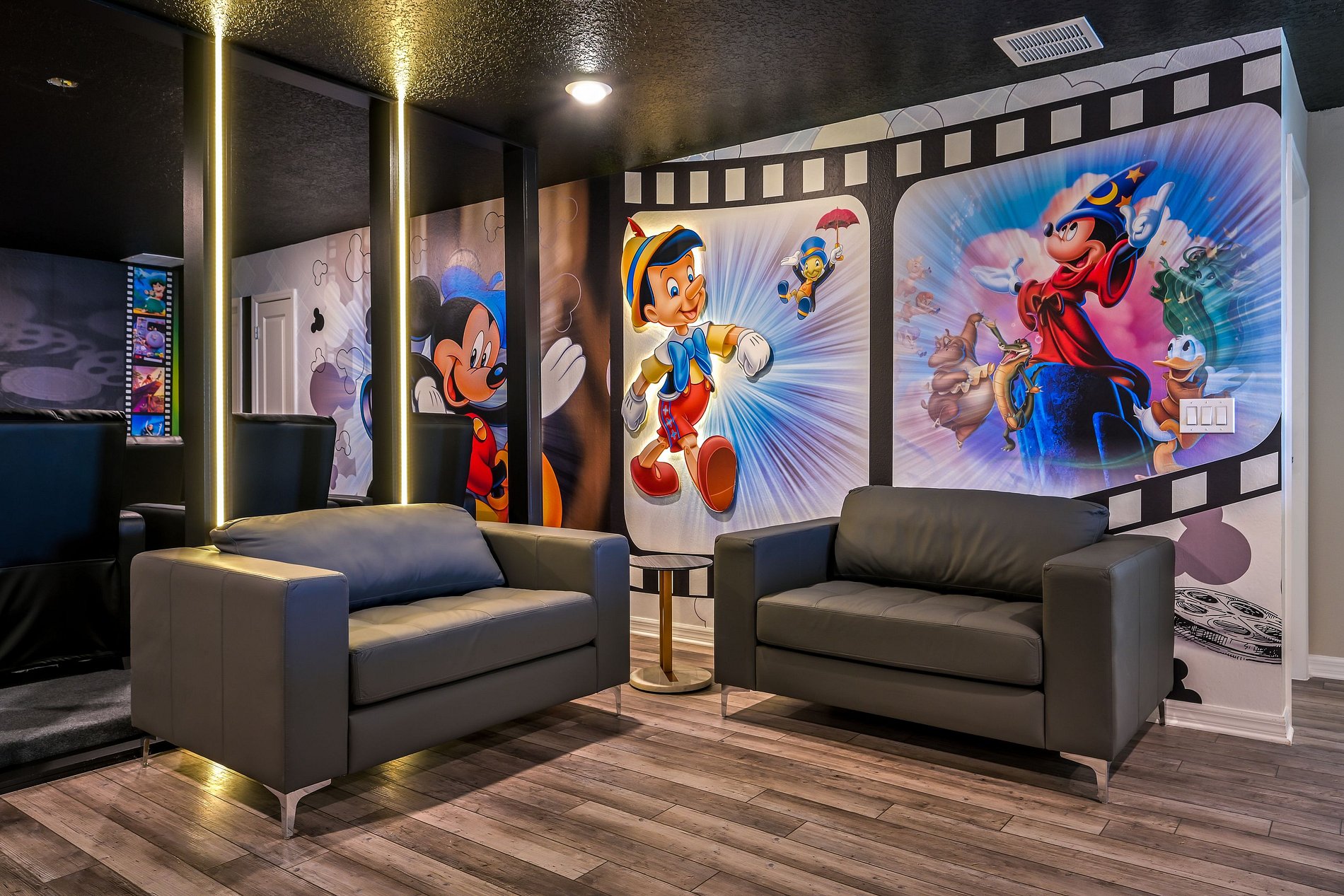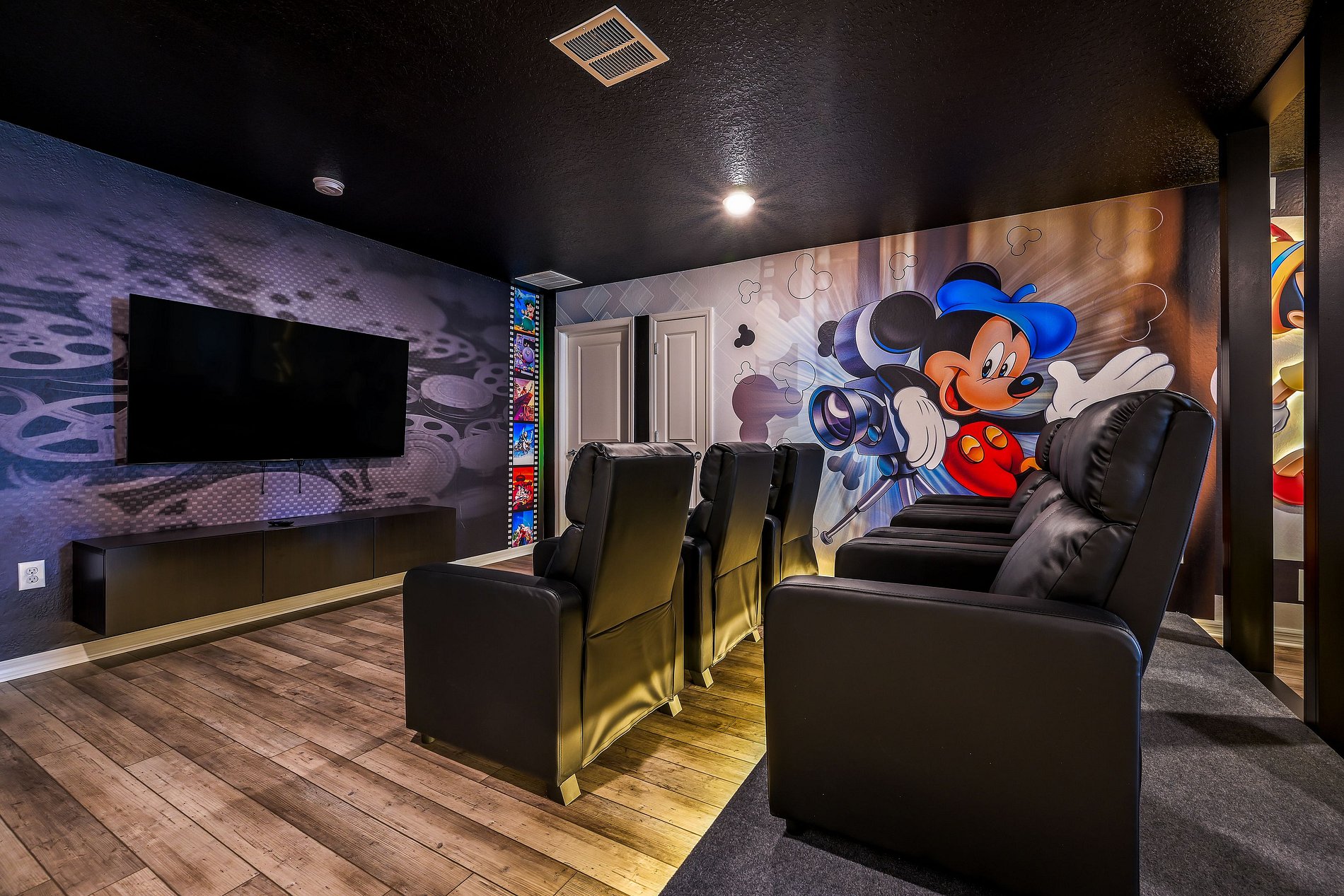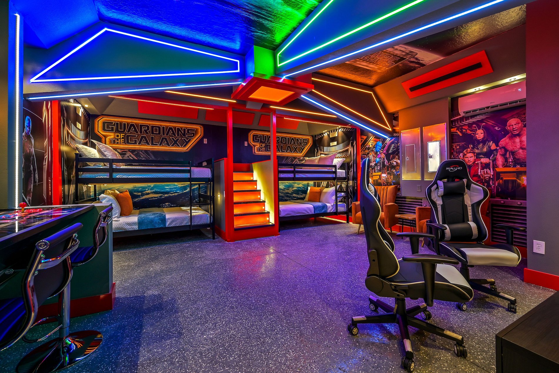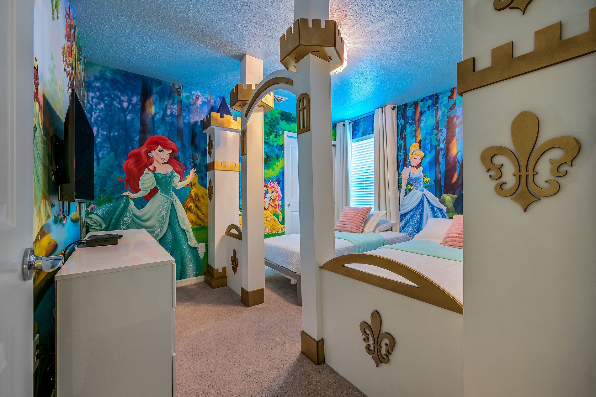 The house is located in the Windsor Island Resort, 19 minutes from Disney World. This unit is just steps away from the clubhouse. Enjoy the water park, basketball, sand volleyball, golf... Decoration and design of the highest quality. Wi-Fi Internet, cable TV, full kitchen and comfortably accommodates 28 guests. Room decorated with a princess theme, with a realistic castle and a Buzz Lightyear theme. And amazing game room, guardians of the galaxy and also a cinema room with disney characters.