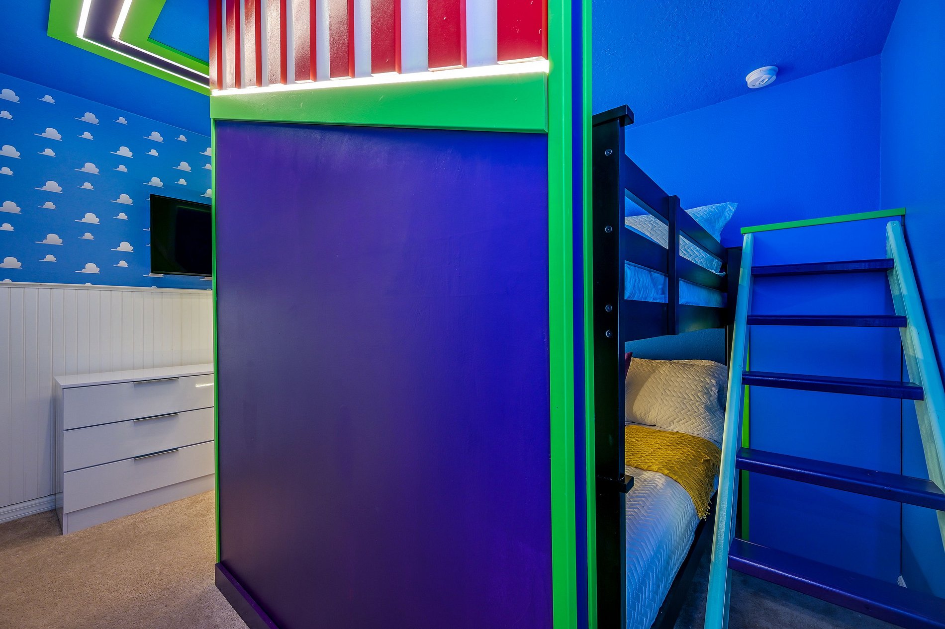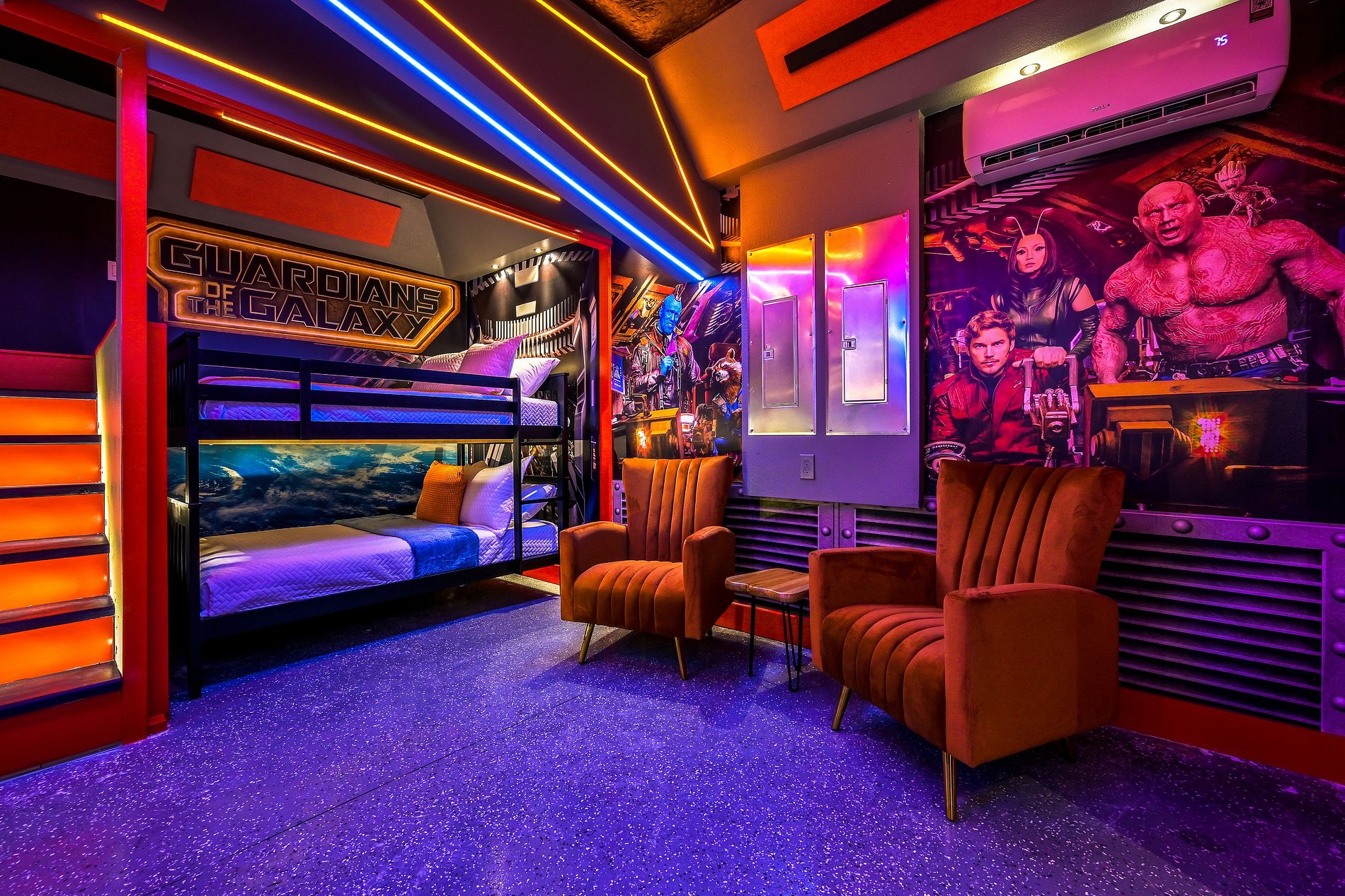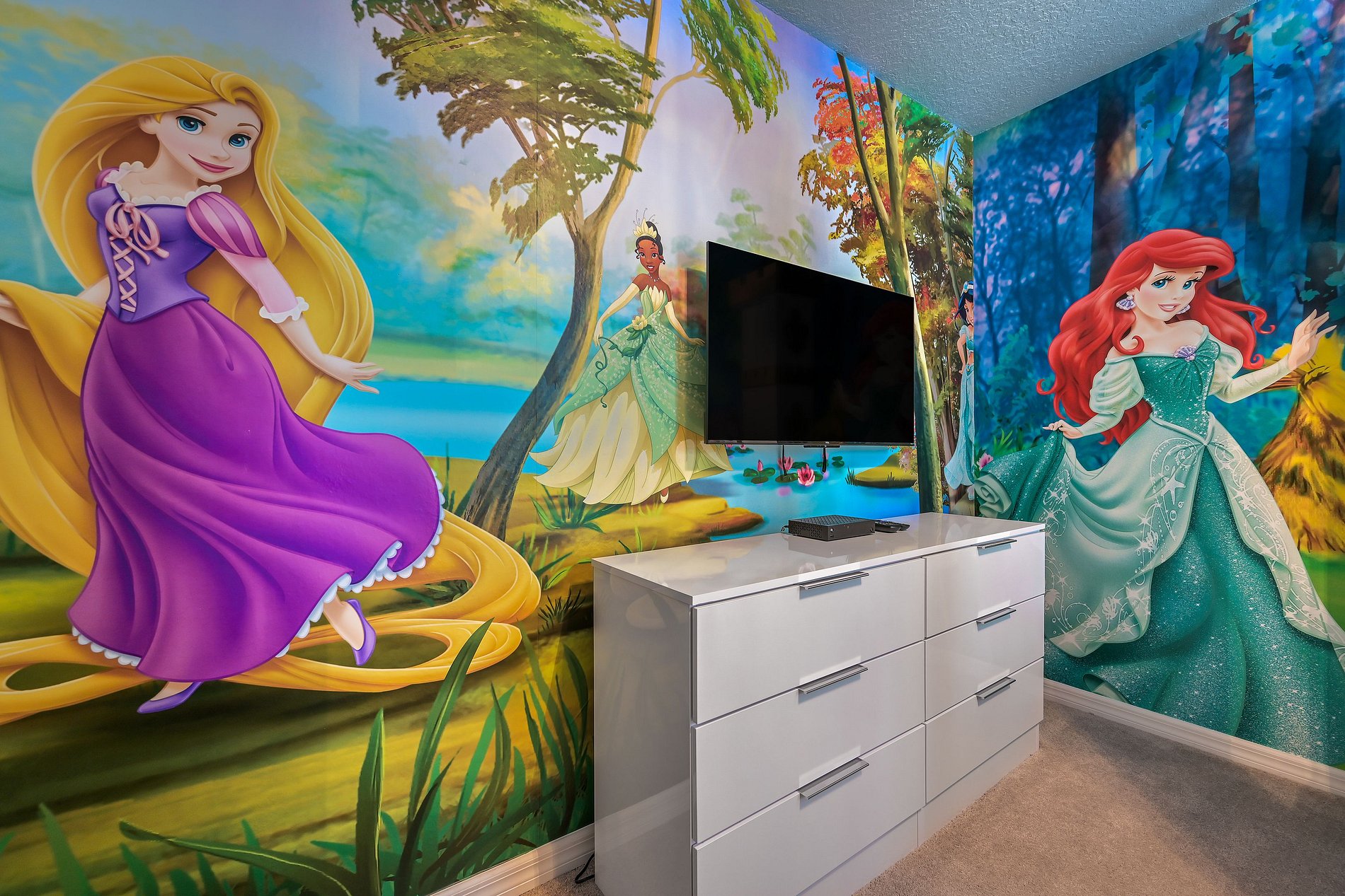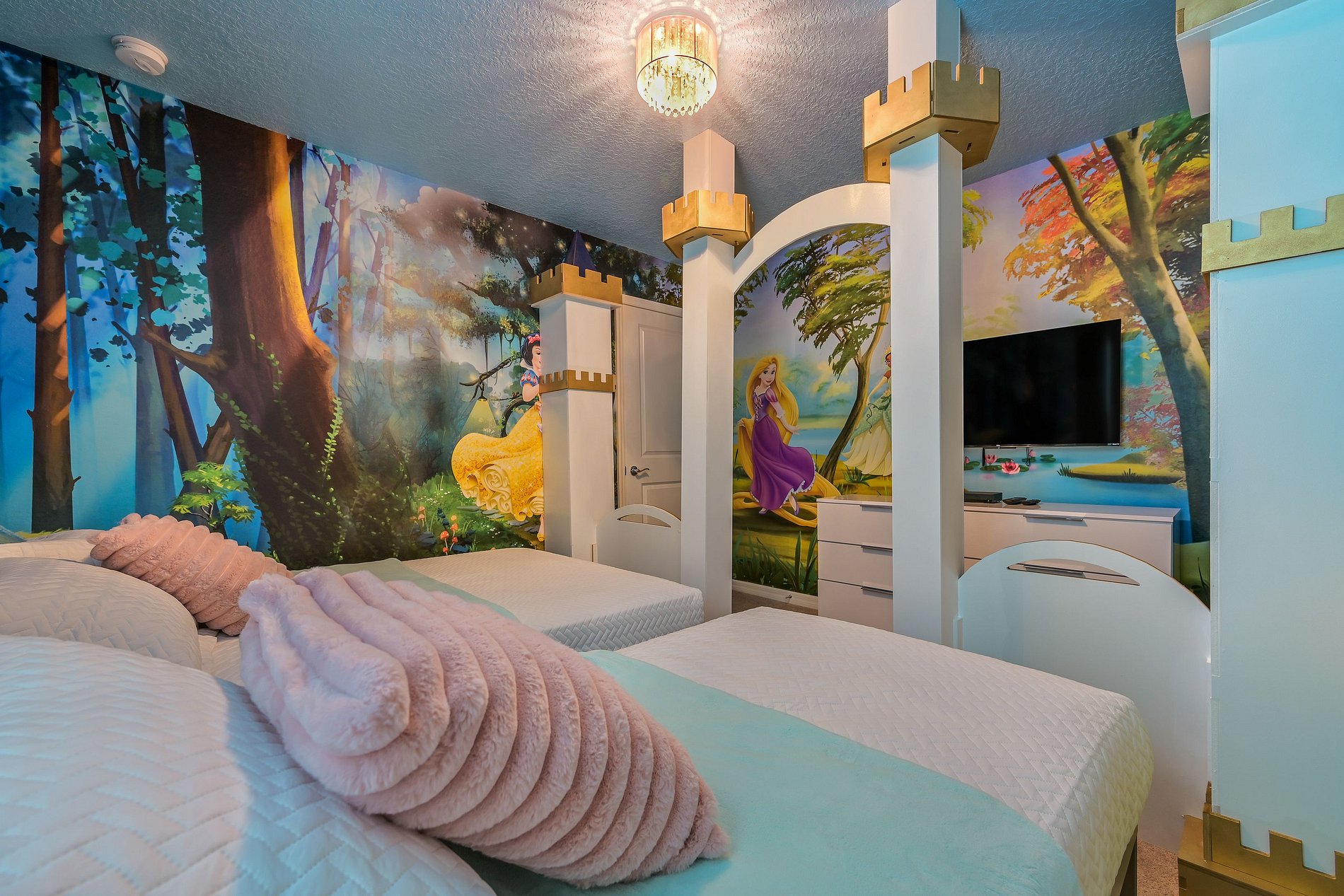 The house is located in the Windsor Island Resort, 19 minutes from Disney World. This unit is just steps away from the clubhouse. Enjoy the water park, basketball, sand volleyball, golf... Decoration and design of the highest quality. Wi-Fi Internet, cable TV, full kitchen and comfortably accommodates 28 guests. Room decorated with a princess theme, with a realistic castle and a Buzz Lightyear theme. And amazing game room, guardians of the galaxy and also a cinema room with disney characters.