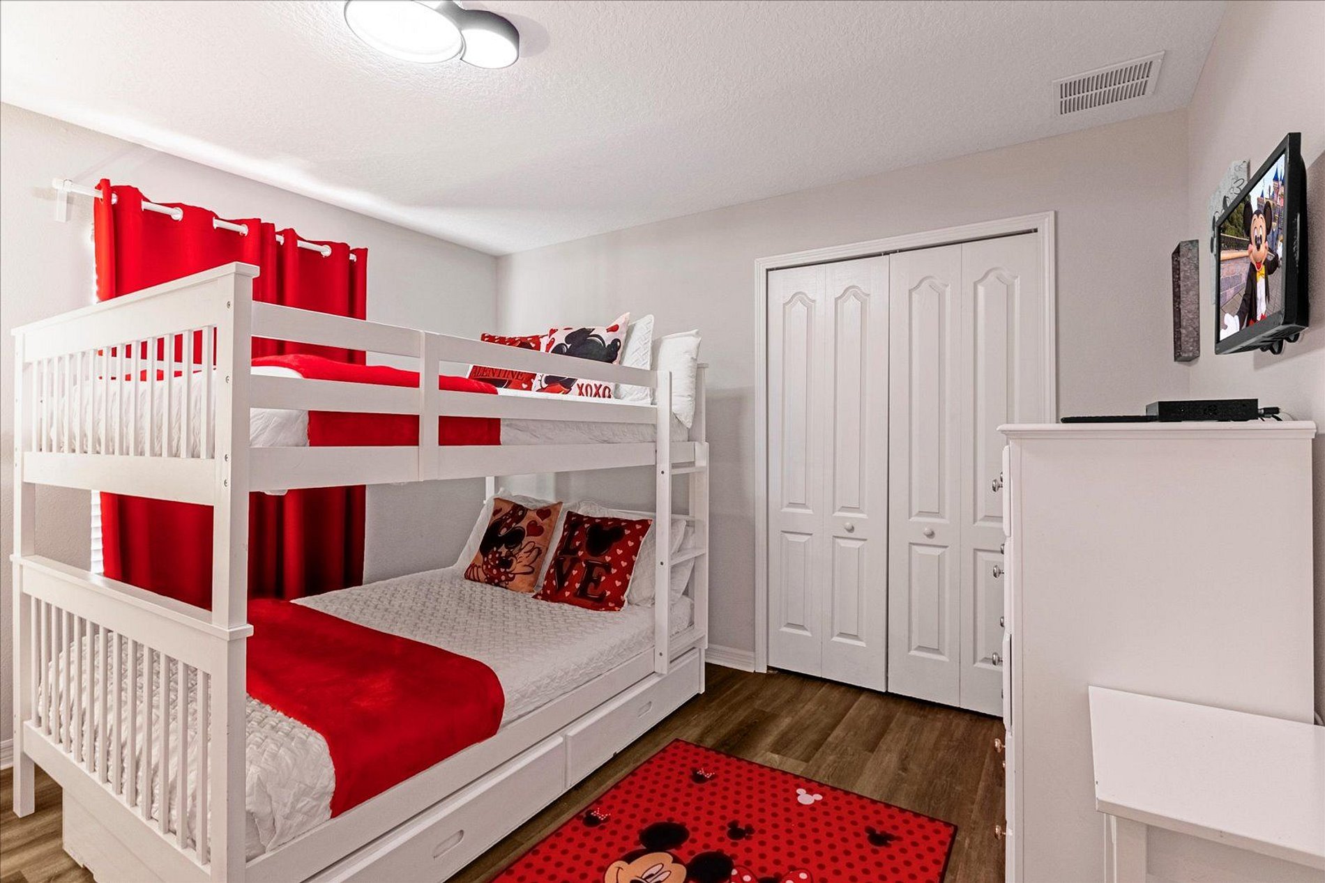 This beautiful home is located in the Paradise Palms Resort, 14 minutes from Disney World. This unit is opposite the clubhouse. Enjoy the pools, games room, cinema, sports courts, fitness center, poolside restaurant and much more! With modern decor and design. Wi-Fi Internet, cable TV, full kitchen, private pool, comfortably accommodates 14 guests. With 2 decorated rooms, with a minnie and minions theme. This house is ideal for you and your family to enjoy your vacation.