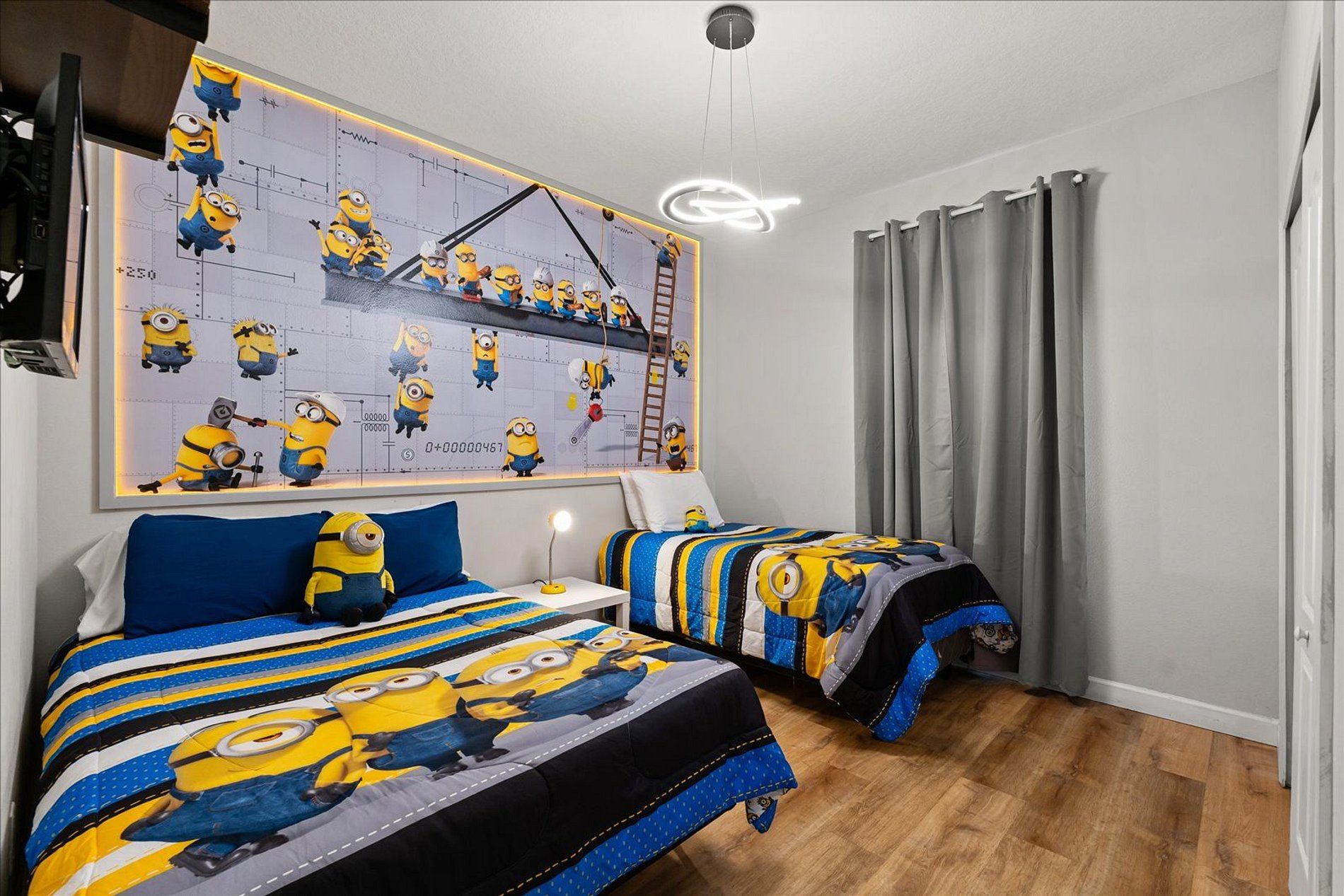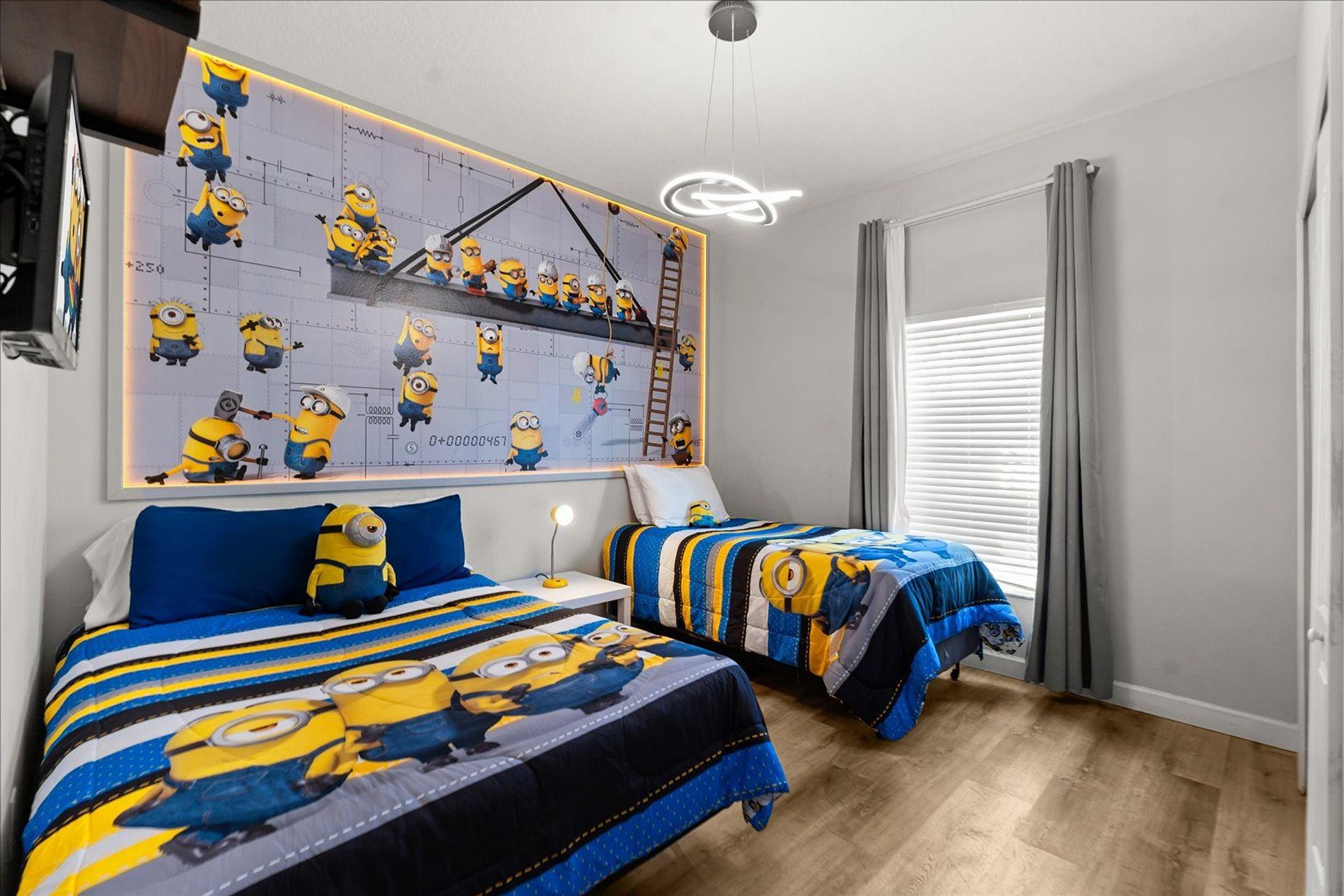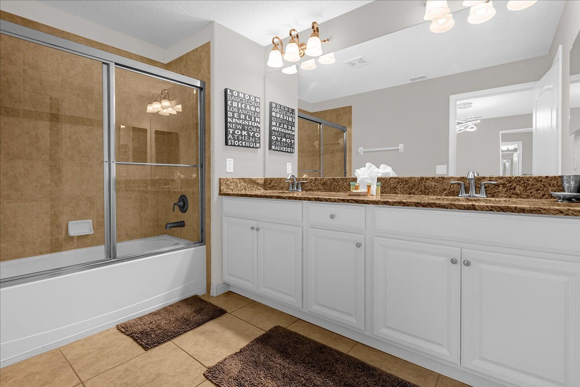 This beautiful home is located in the Paradise Palms Resort, 14 minutes from Disney World. This unit is opposite the clubhouse. Enjoy the pools, games room, cinema, sports courts, fitness center, poolside restaurant and much more! With modern decor and design. Wi-Fi Internet, cable TV, full kitchen, private pool, comfortably accommodates 14 guests. With 2 decorated rooms, with a minnie and minions theme. This house is ideal for you and your family to enjoy your vacation.