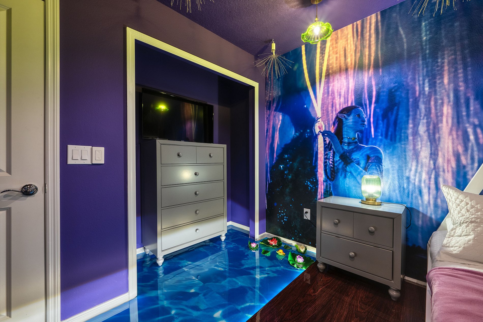 -1 bedroom with bunk bed, 1 full bed and 1 double bed; Avatar theme.